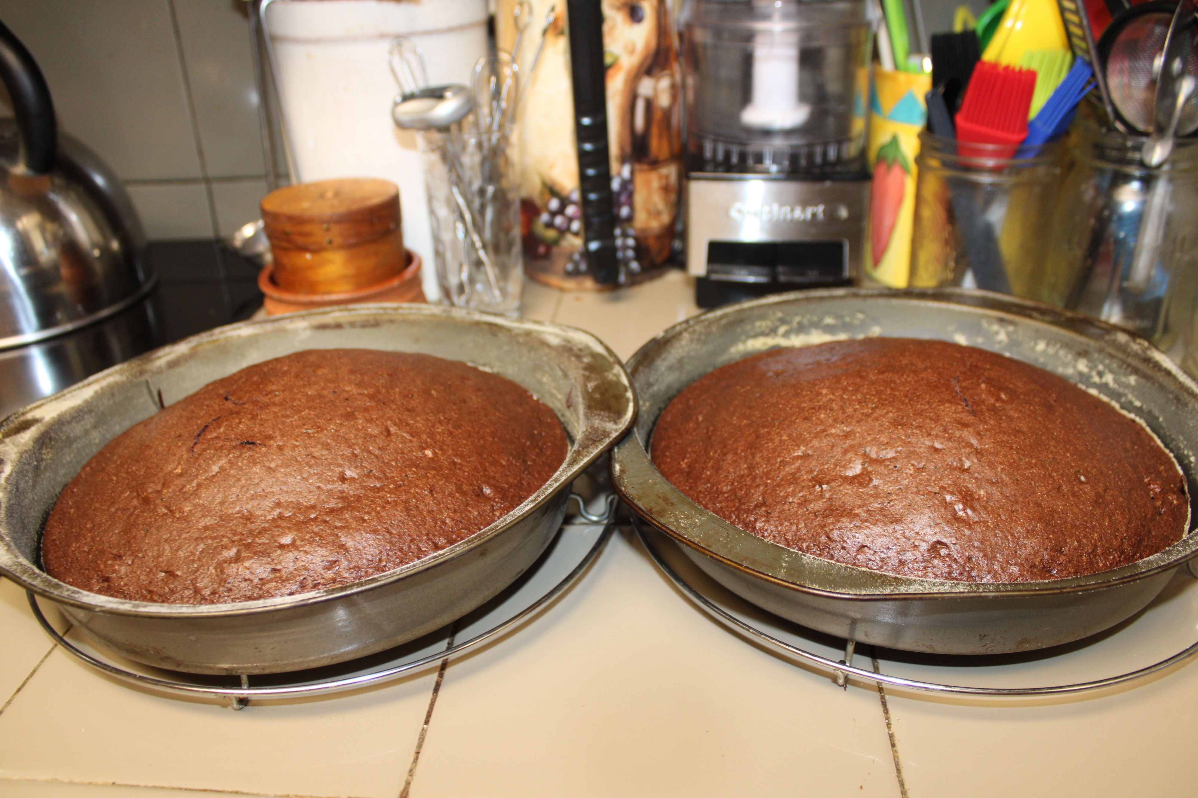 Let cakes cool in the pans on a cooling rack for 10 minutes. Remove from pans, cool completely.