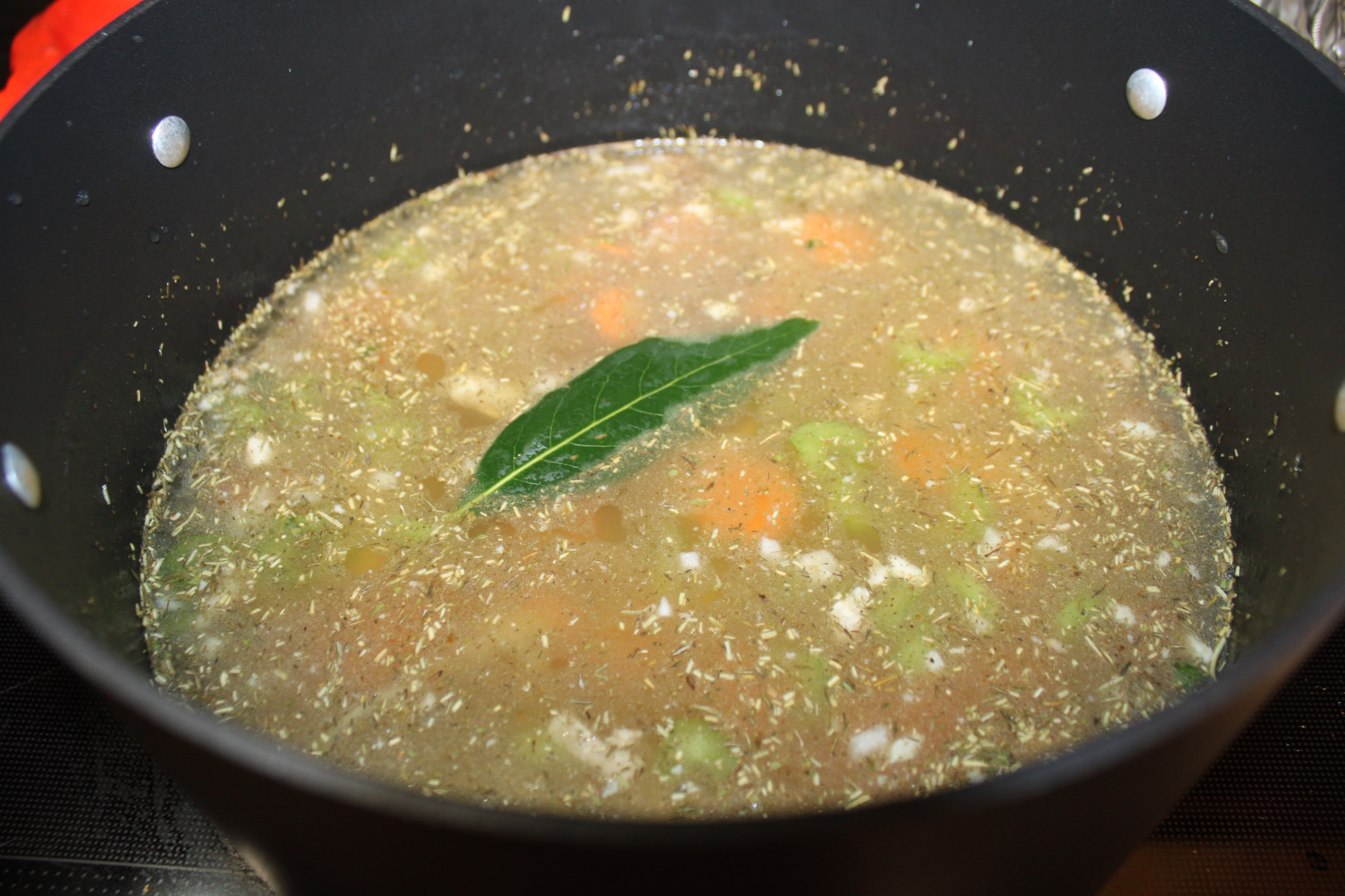 Reduce heat to low. Cover and simmer for 45 minutes, until carrots are tender. Remove cover, discard bay leave. Bring soup to a boil. Add pasta, let cook at a rolling boil for about 12 minutes, until noodles are tender.