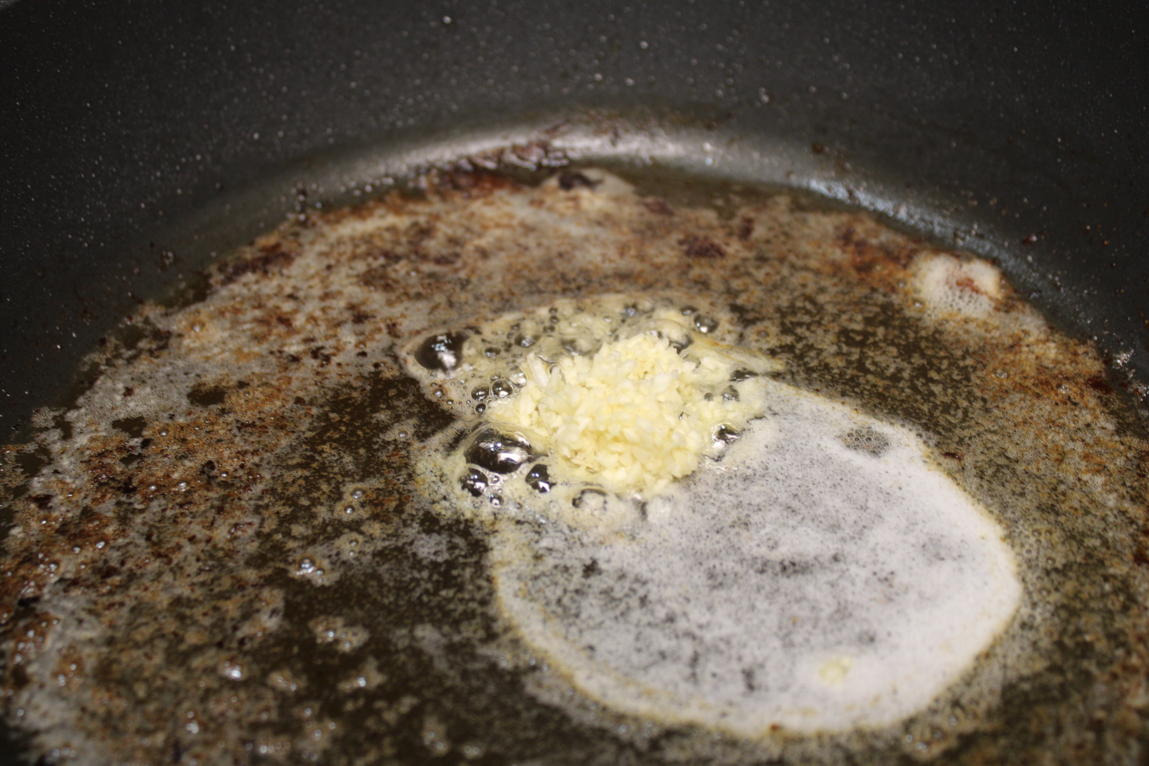Melt butter in the now empty sauté pan and sauté the garlic until fragrant, about 30 seconds. Add stock milk, half-n-half and salt to taste to the pan. Scrape up any browned bits from the bottom of the pan to incorporate into the sauce.