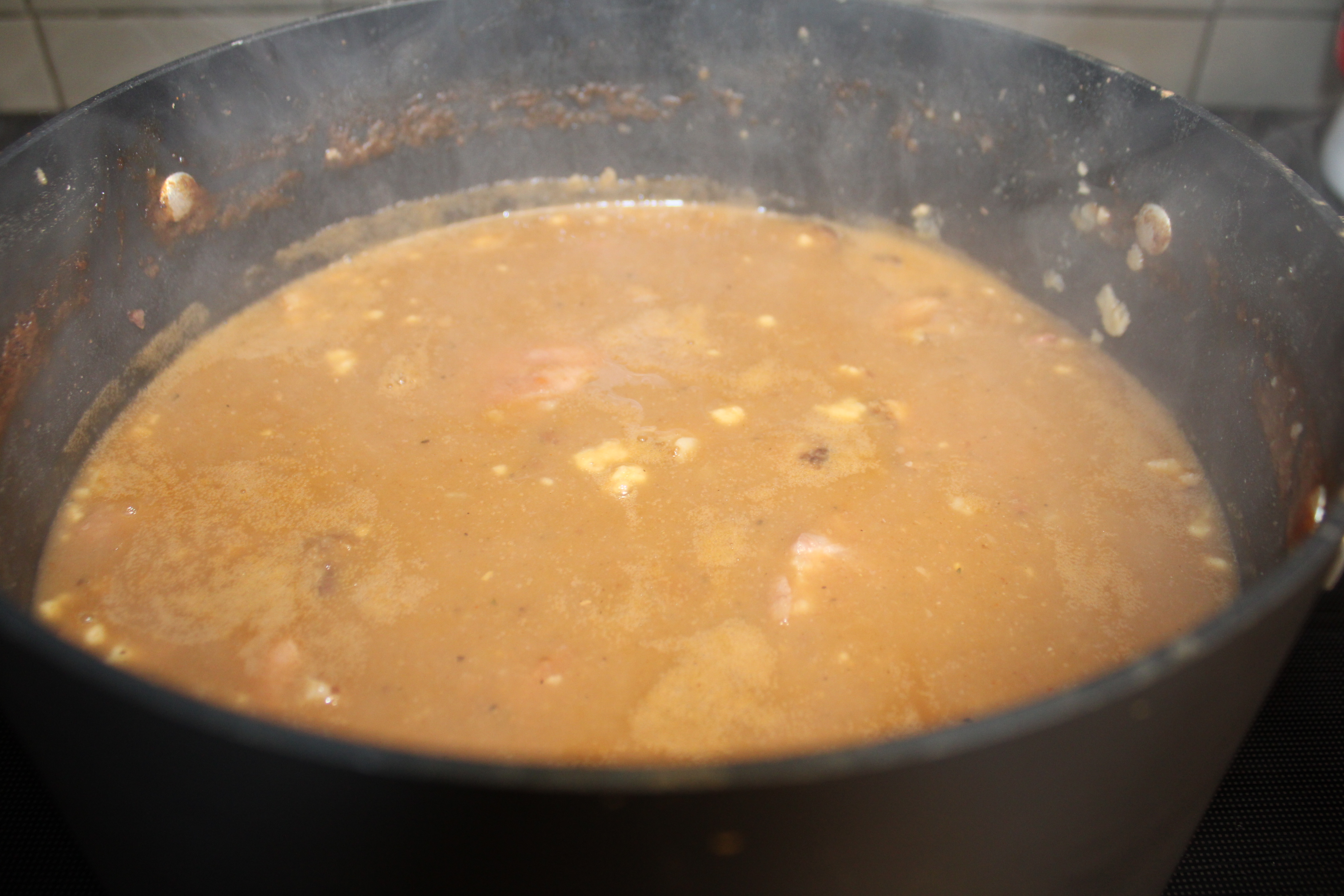 In a glass measuring cup ladle about 1/2 cup of the cooking liquid. Add bouillon powder and masa flour to the liquid. Whisk to blend. Pour into the pot. Stir to blend and let liquid thicken slightly. Taste, adjust seasonings as desired. Ladle into bowls, serve with sweet corn bread.