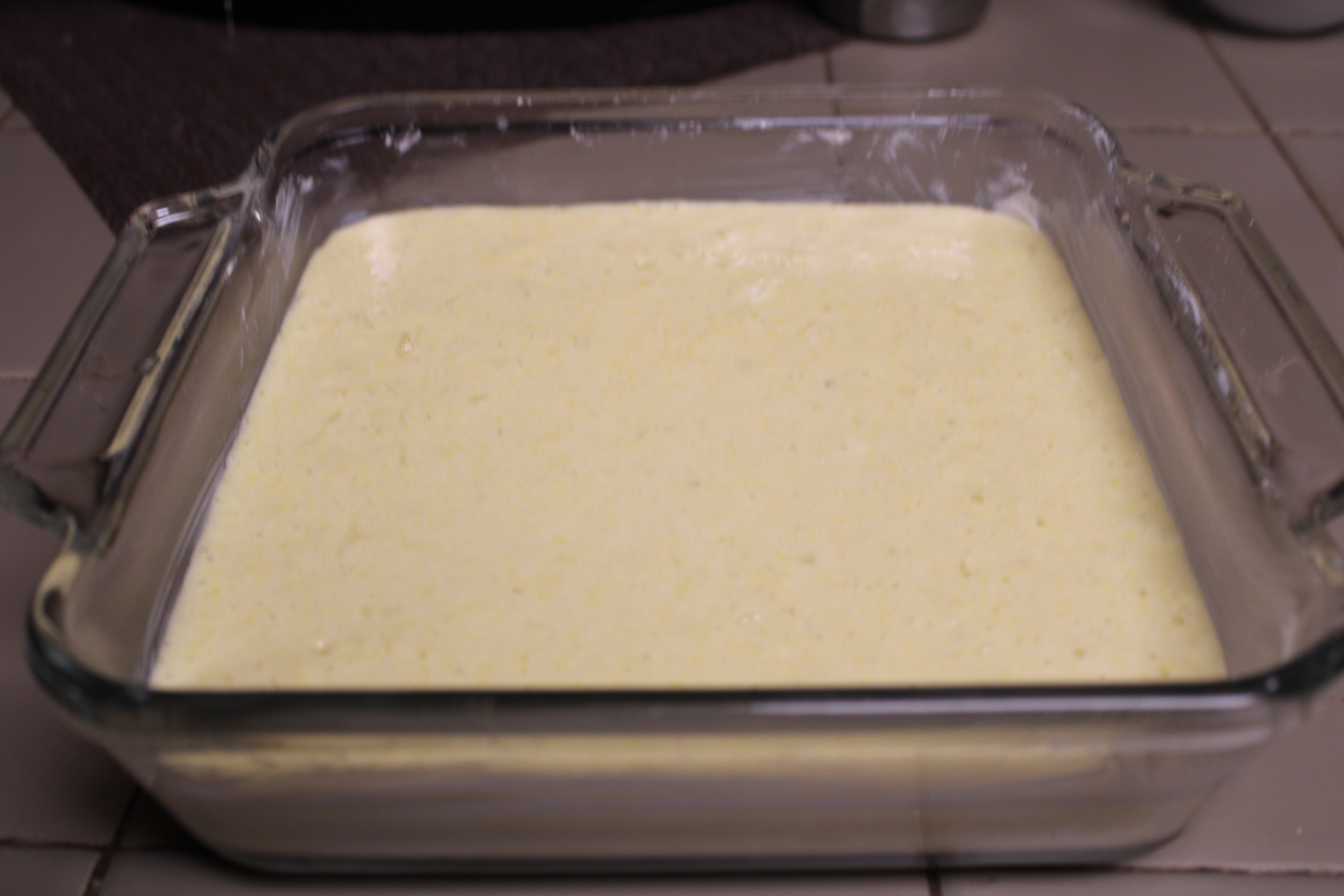 Heat oven to 350-degrees. Lightly grease an 8-inch square baking pan. Set aside until ready to use.