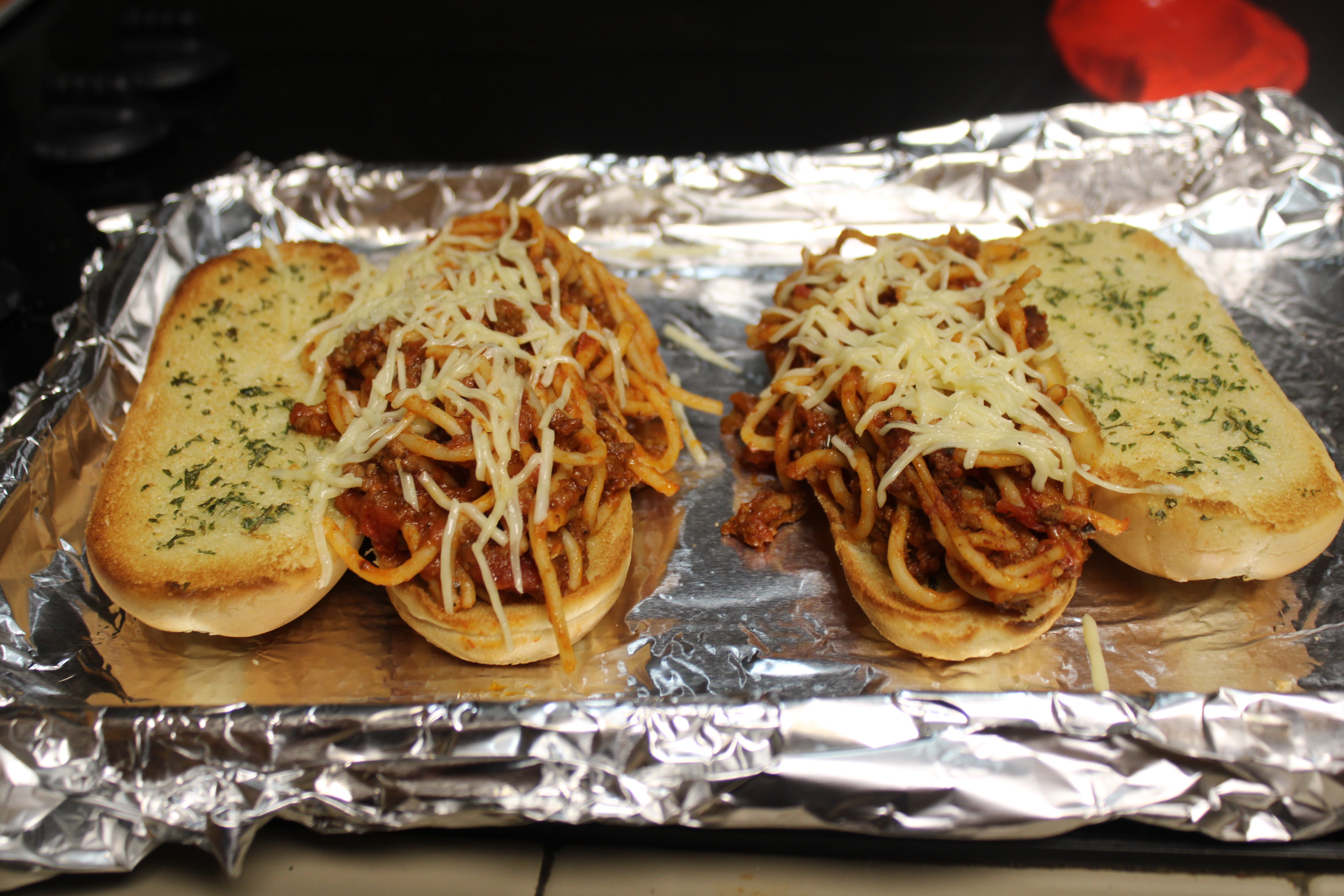 But every now and again I like to make up a big pot of spaghetti just for the leftovers and the Spaghetti Sub Sandwiches. I’ve gotten 2 complete suppers plus a few warm lunches from 1 dish. Now that’s what I call stretching the food buget while taken my family down memory lane. What could be better?