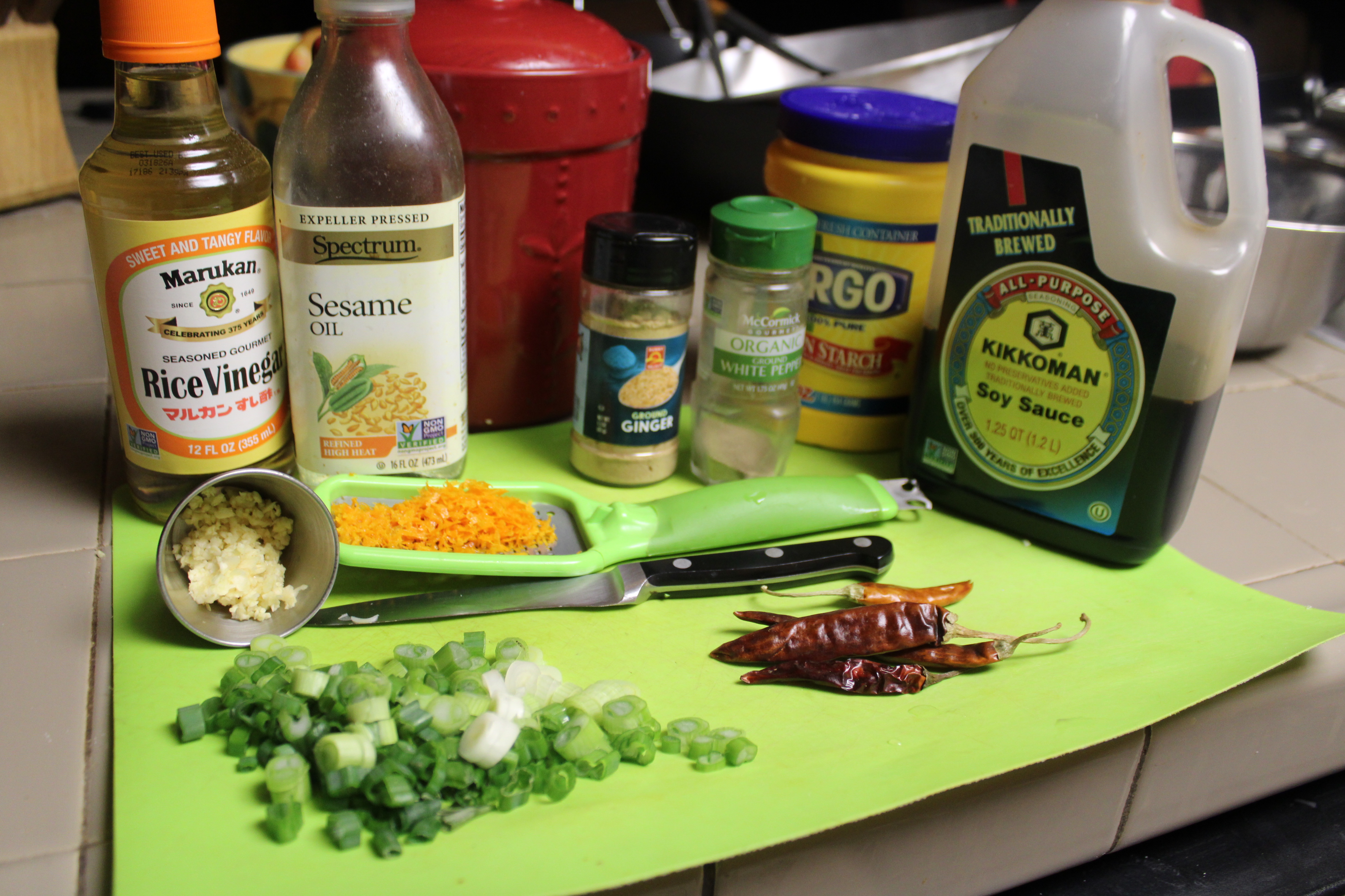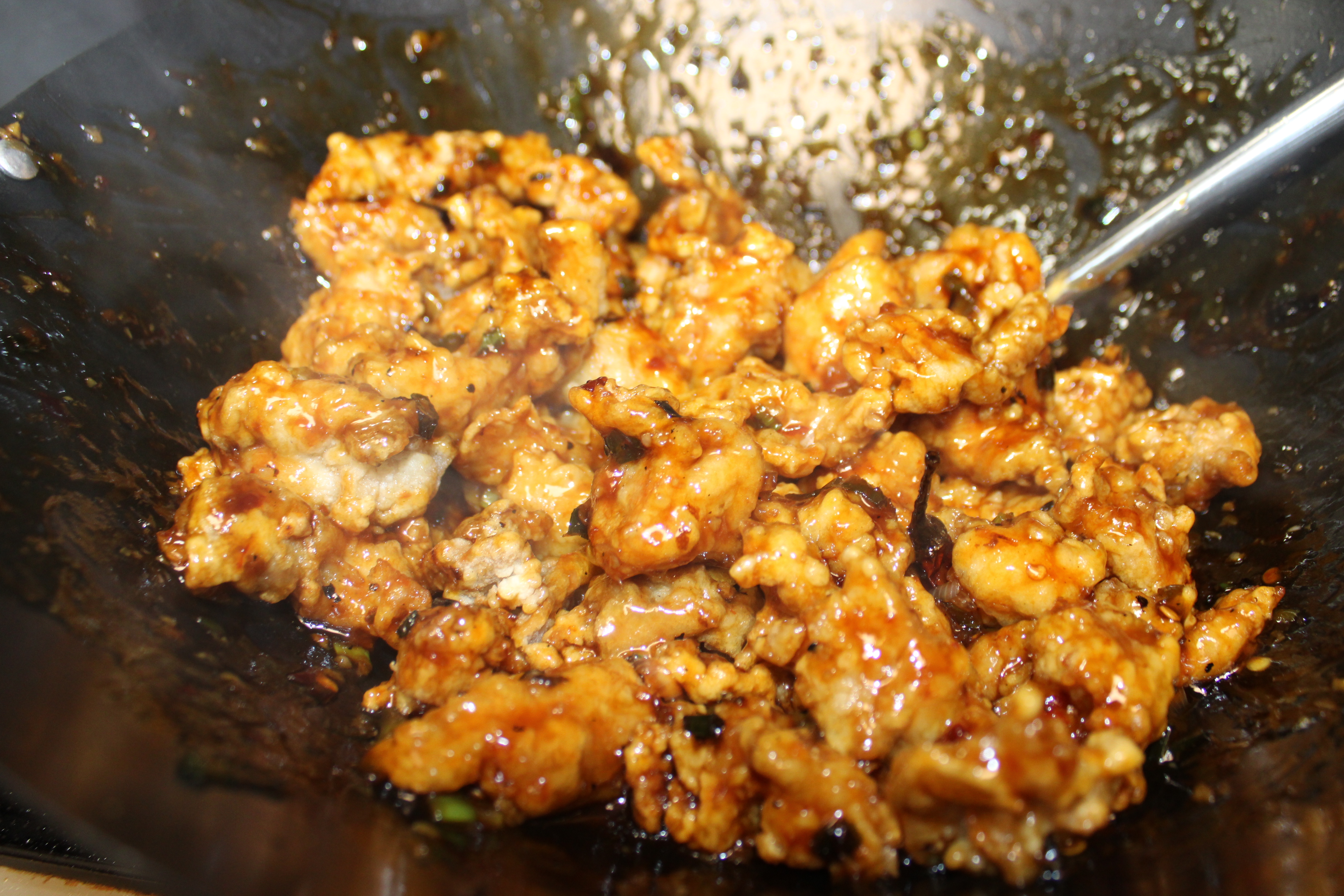 When we have Mexican dishes at home, I hear the same comment from my guys – that what I make at home is as good, and often better than anything we’ve had in a restaurant. The only reason to eat at our favorite Cantina is that someone else does the dishes. I enjoy cooking. Often my Italian dishes (although be it more American-Italian than truly Italian) are equally satisfying. When I cooked up this Chicken Dish for the family, Hubby gave me the best compliment possible – no sense in going out for Chinese, this was better than anything he had ever had. Kiddo is the real Asian fan, and he was looking for more. I’ll let you in on a little secret – the deep-fried battered chicken pieces can be used for Orange Chicken, Lemon Chicken or any number of other Asian dishes that rely on the sauce to make the dish. You could do three or four batches of the chicken, keep it warm and whip up a selection of sauces for a Chinese Buffet. This recipe is definitely a keeper in my book. So whip out those chop sticks and let’s get to cooking!