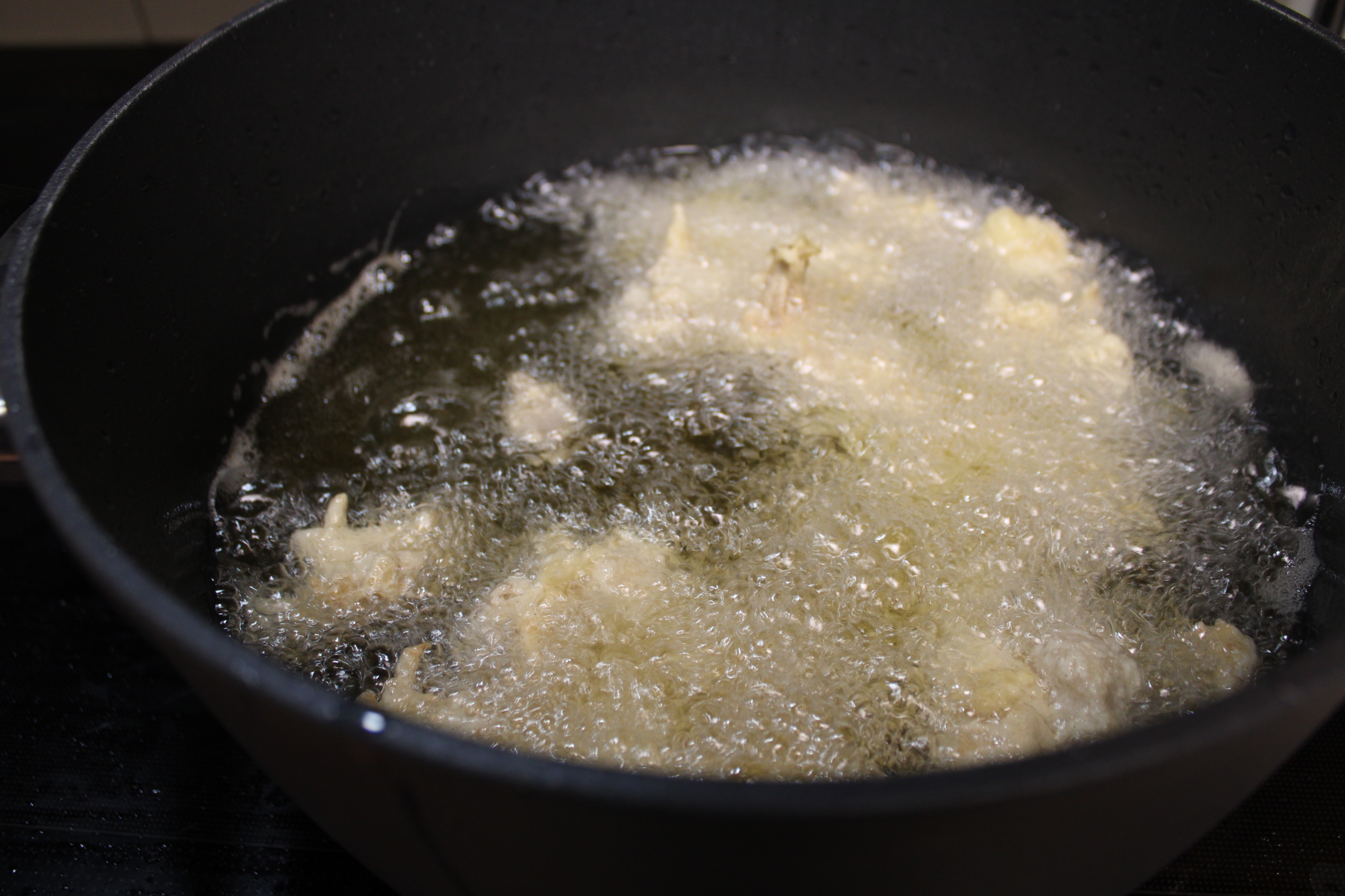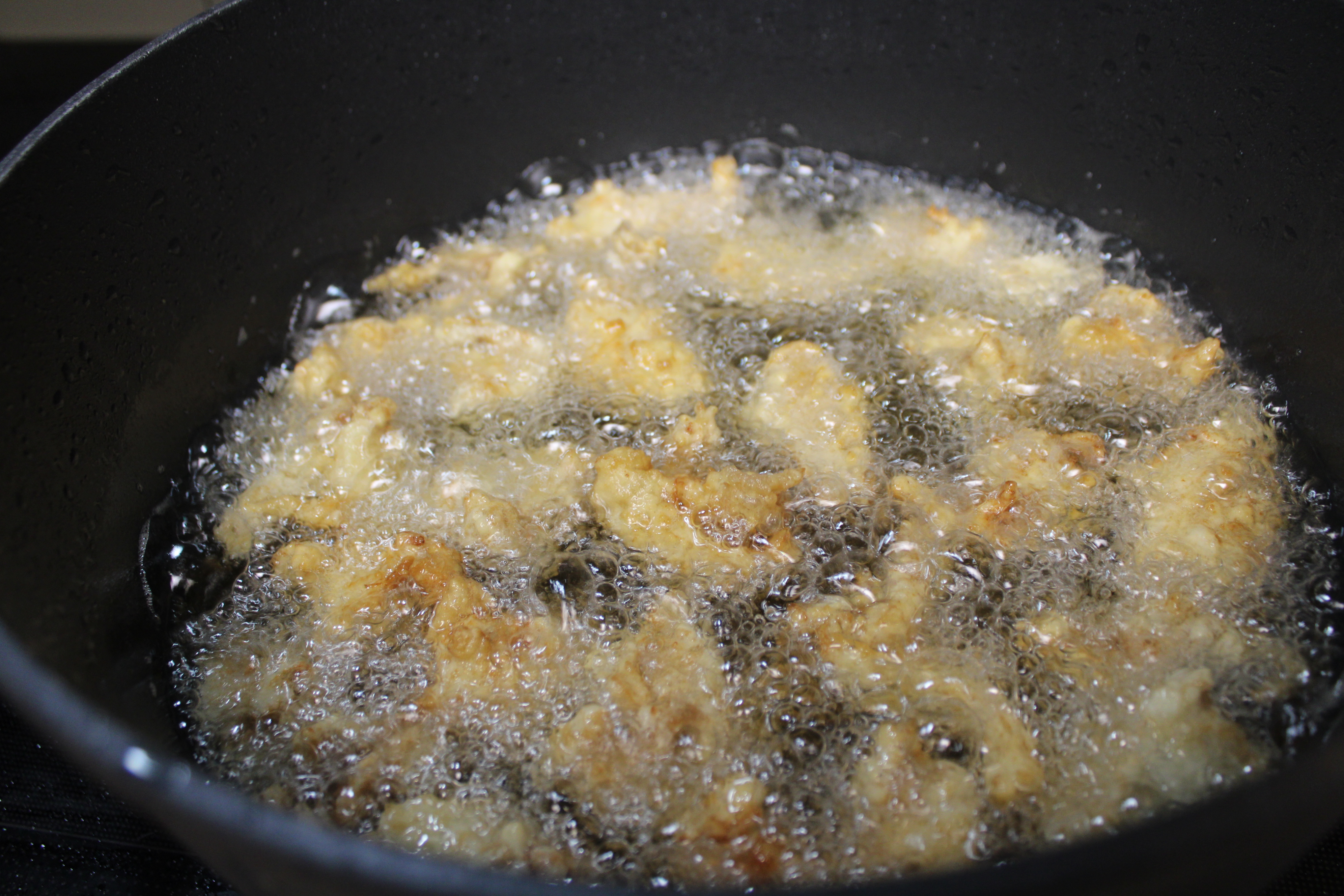 Heat vegetable oil in a deep fryer or large, heavy skillet to 375-degrees.