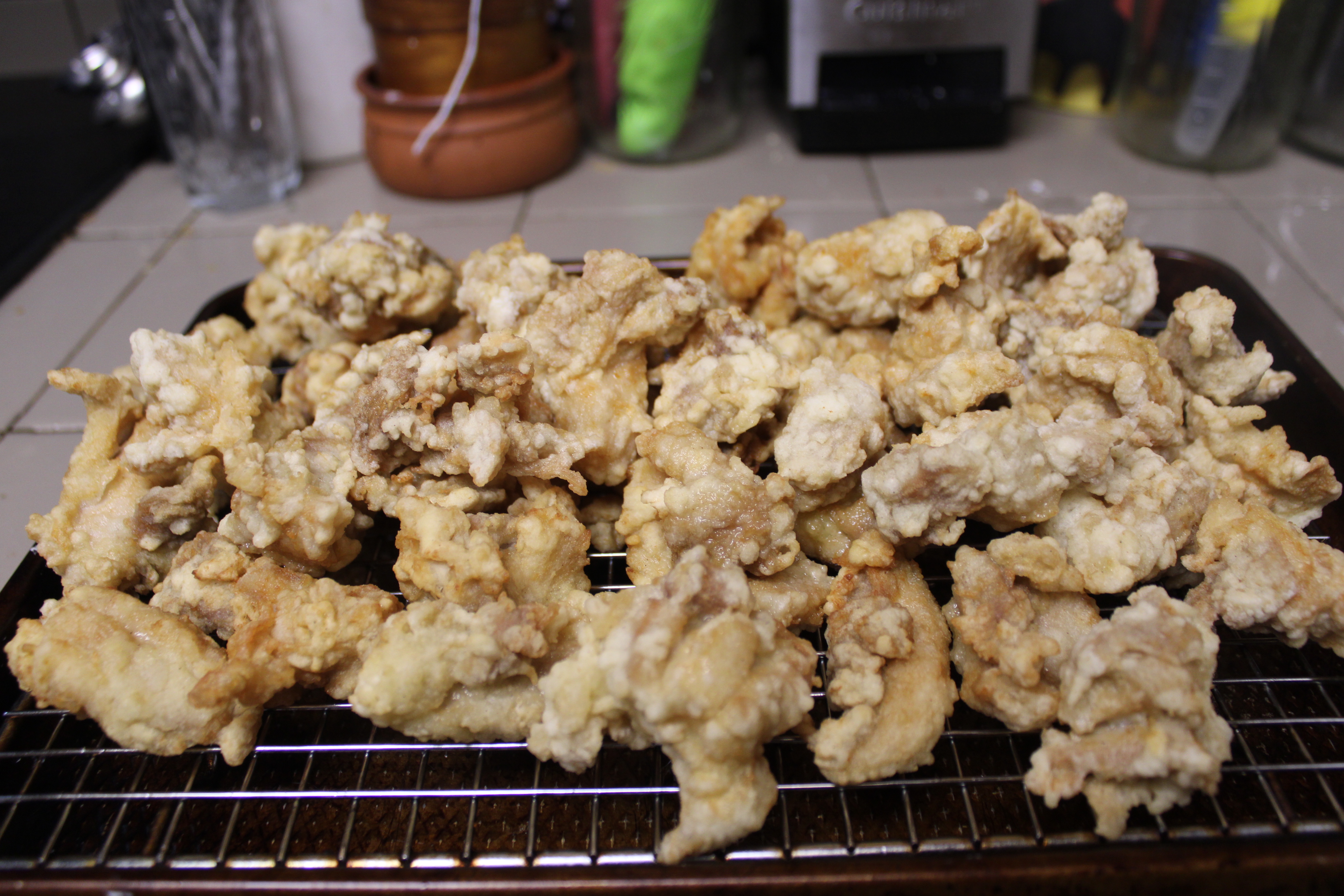 Once all the chicken has been fried, refry again, starting with the batch that was cooked first. Fry each batch until chicken is a deeper golden brown, about 2 minutes more. Drain on a paper towel-lined platter.
