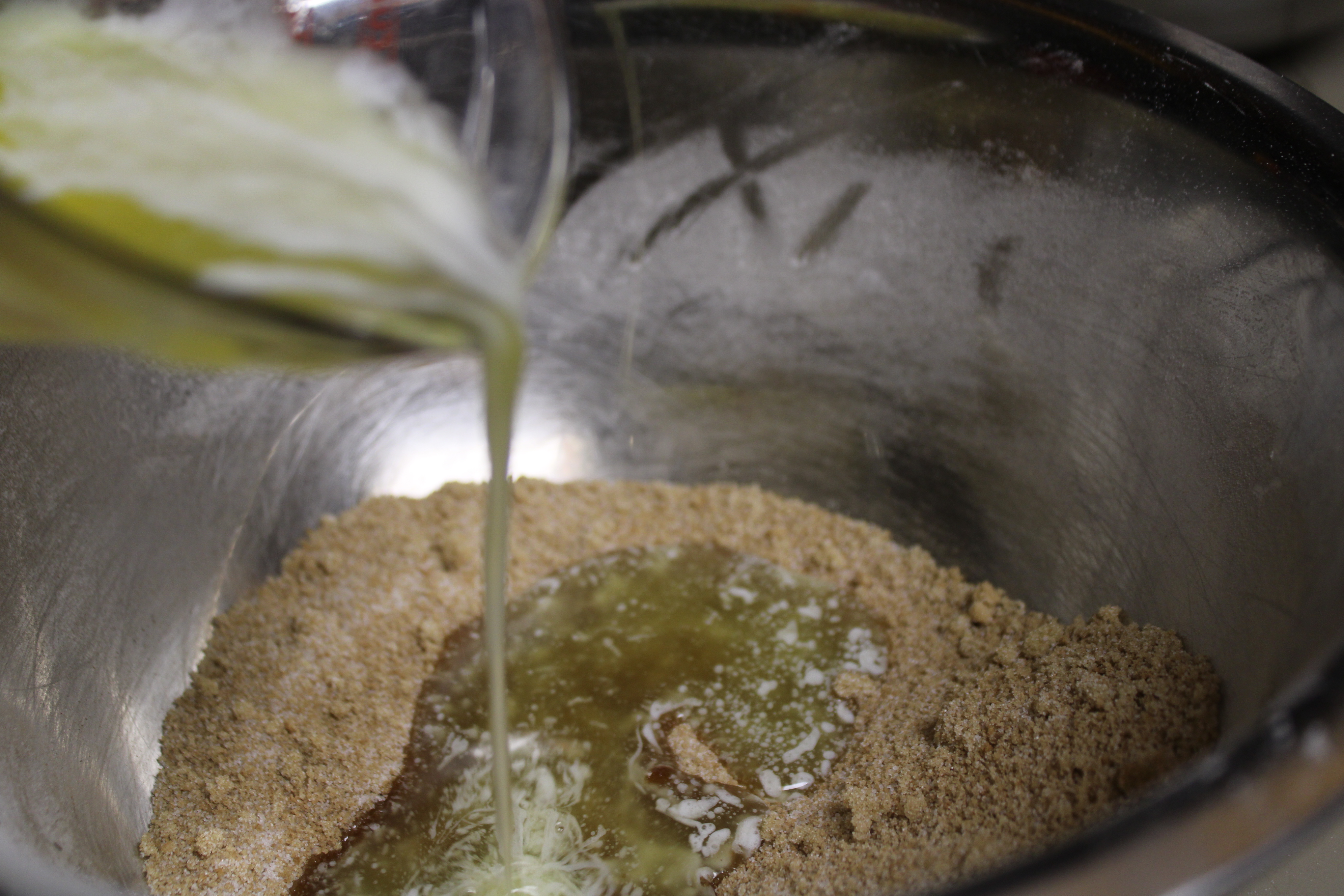 Melt butter, let cool. Pack brown sugar into a quarter cup measuring cup.