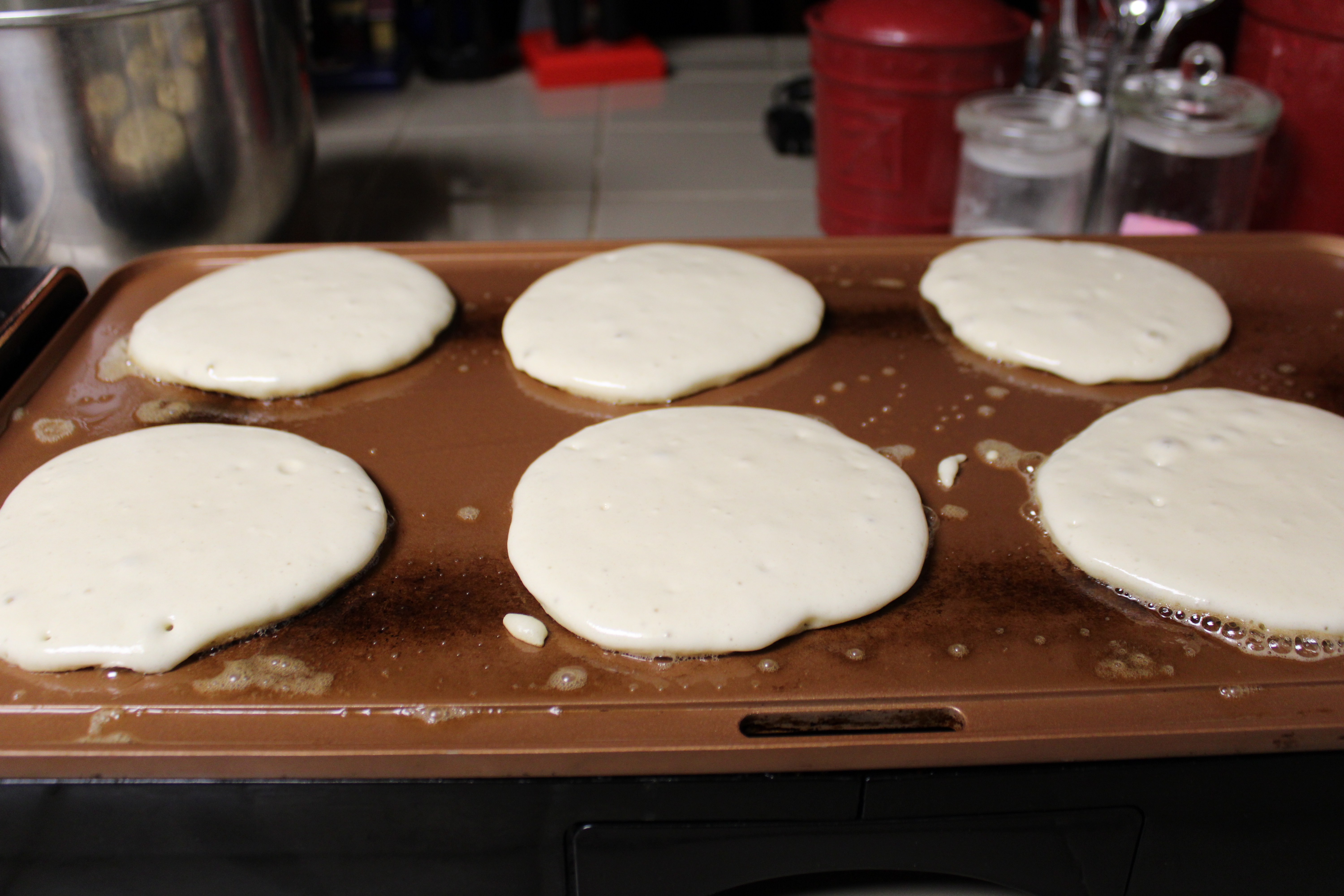 Heat griddle to medium-low heat. Lightly brush griddle with a little butter.