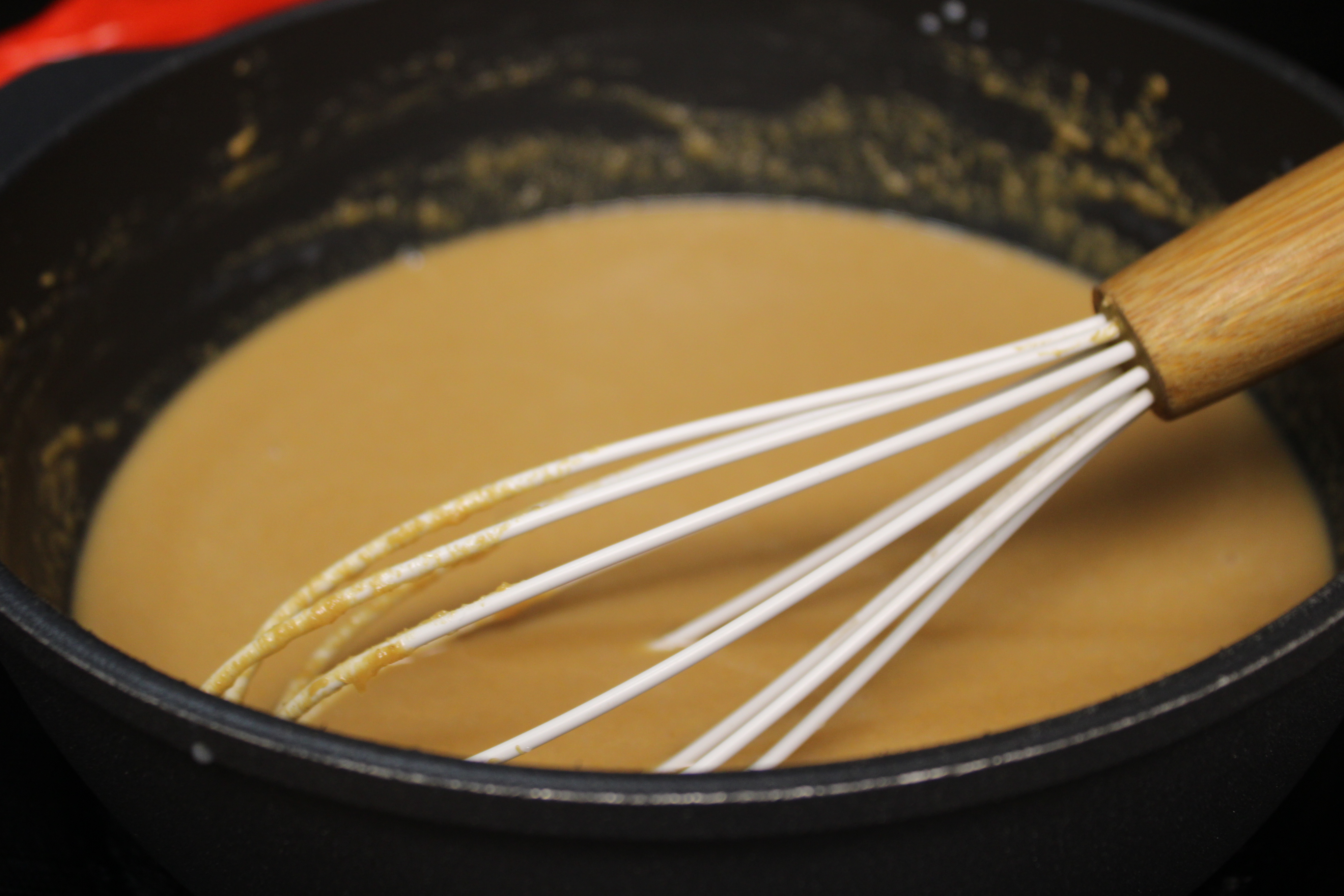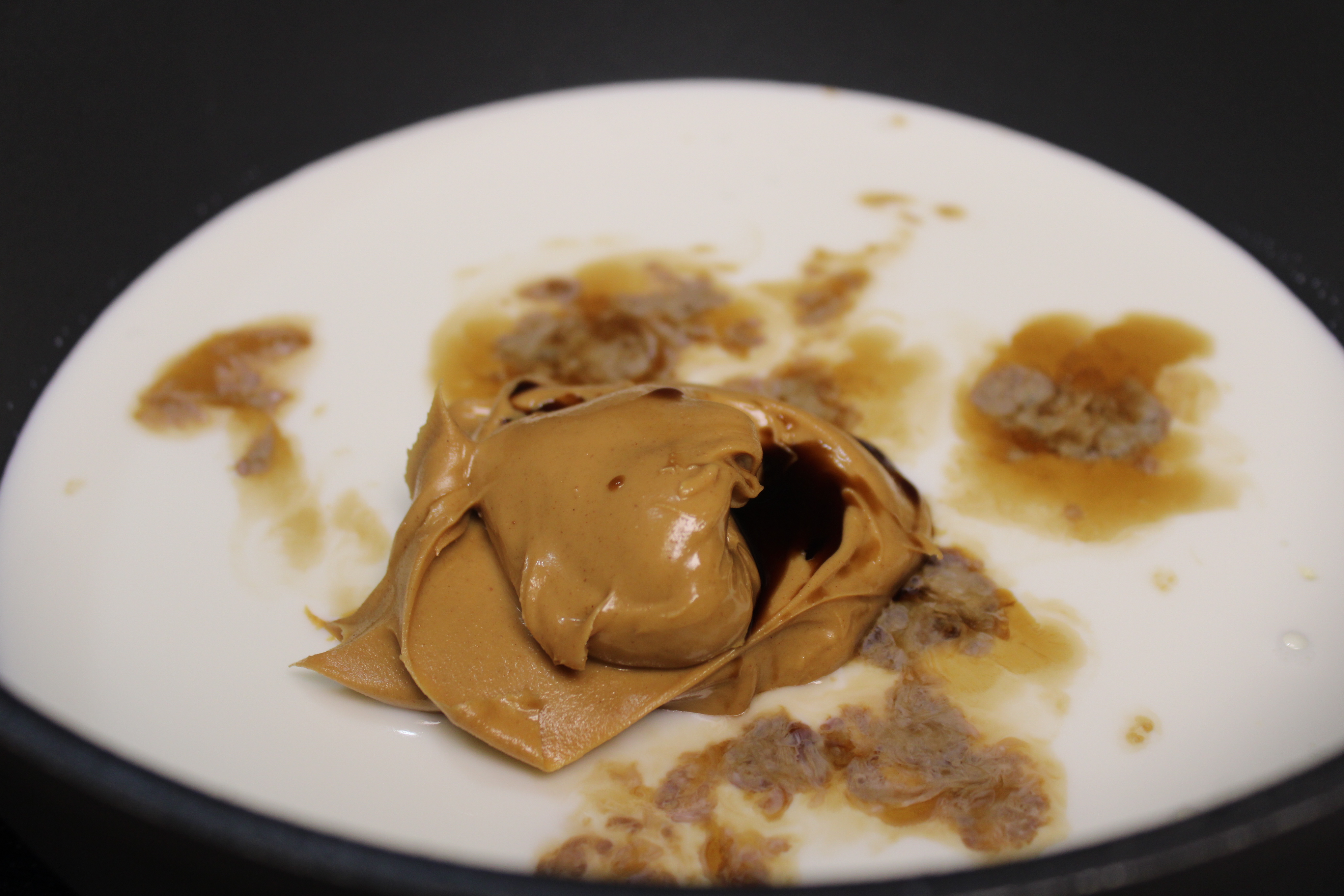 Stir milk, sugar peanut butter and vanilla extract together in a saucepan over medium heat; bring to a boil while whisking constantly. Let syrup cook at a boil for 3 minutes.
