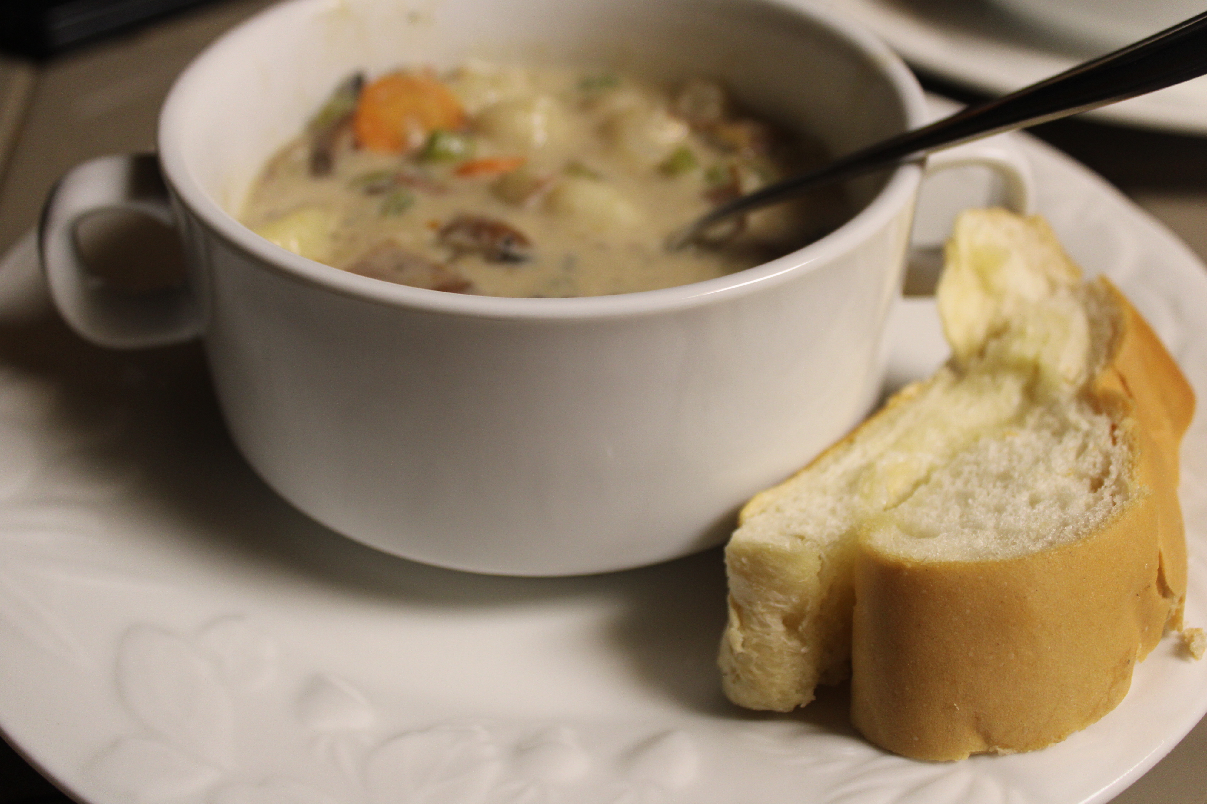 Ladle Cajun Scallop Chowder into bowl. Serve with warm French Bread.