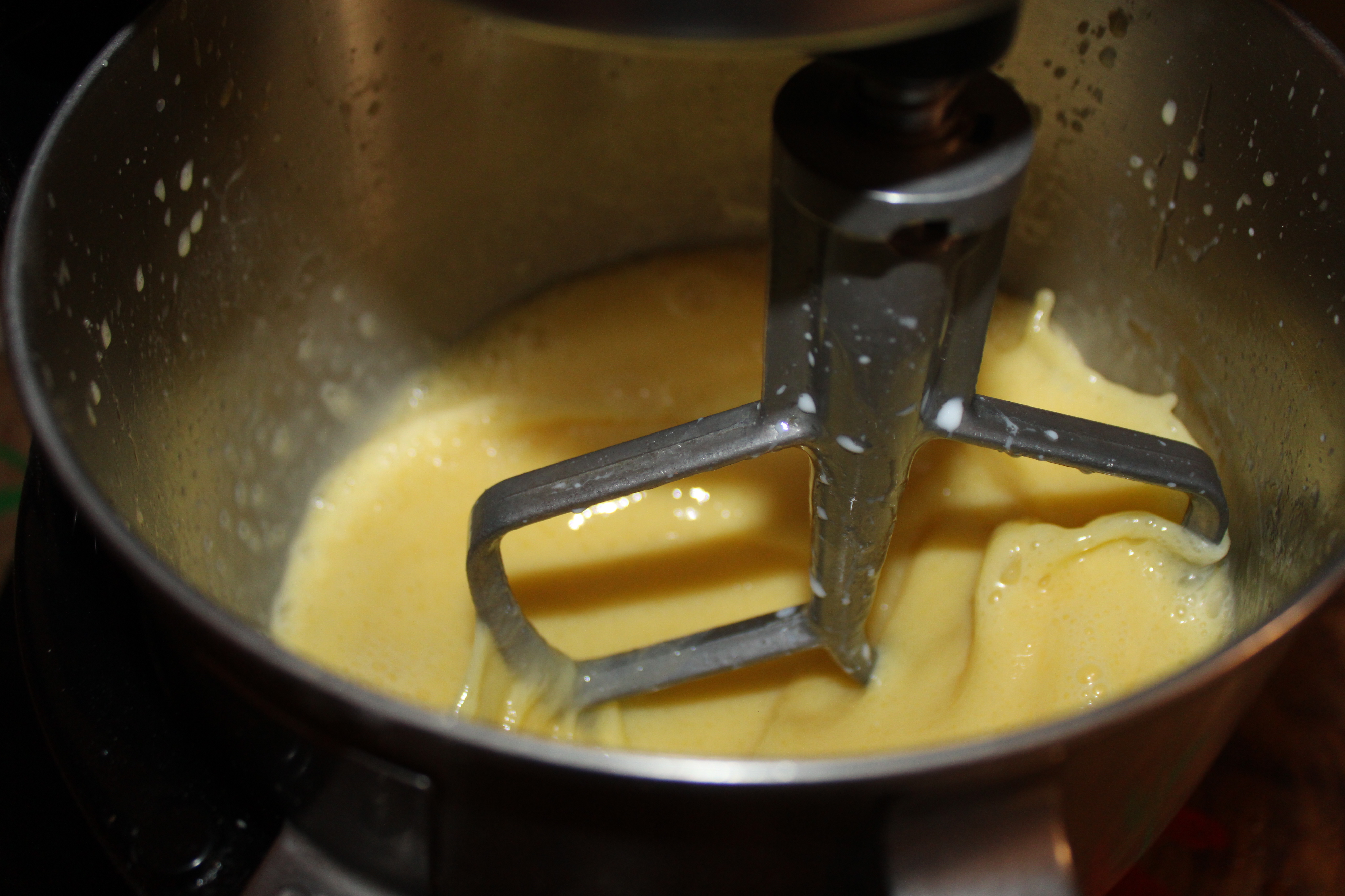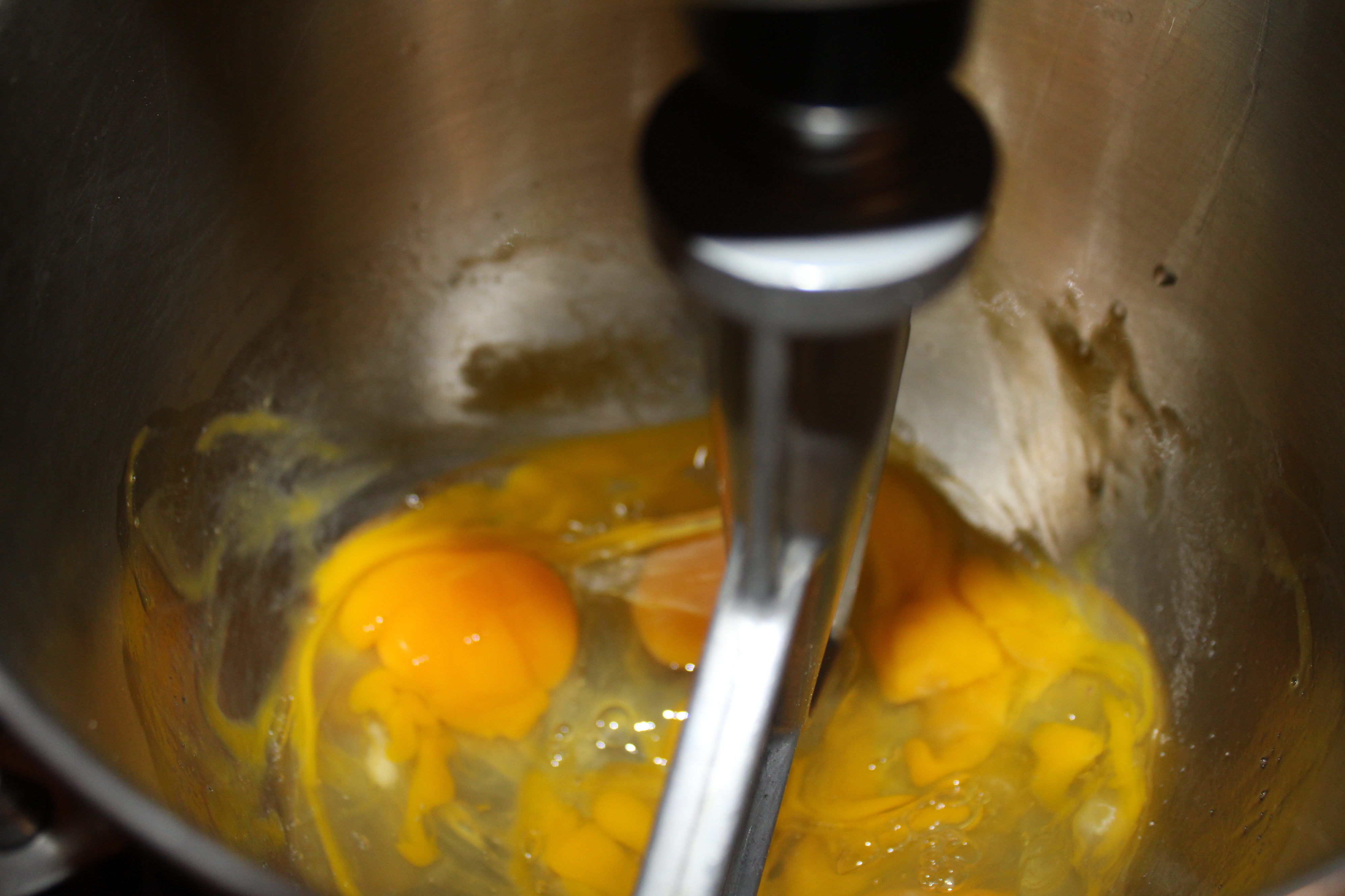 Allow eggs to come to room temperature, Dice butter, place in a bowl and microwave to melt. Allow the butter to cool to room temperature.