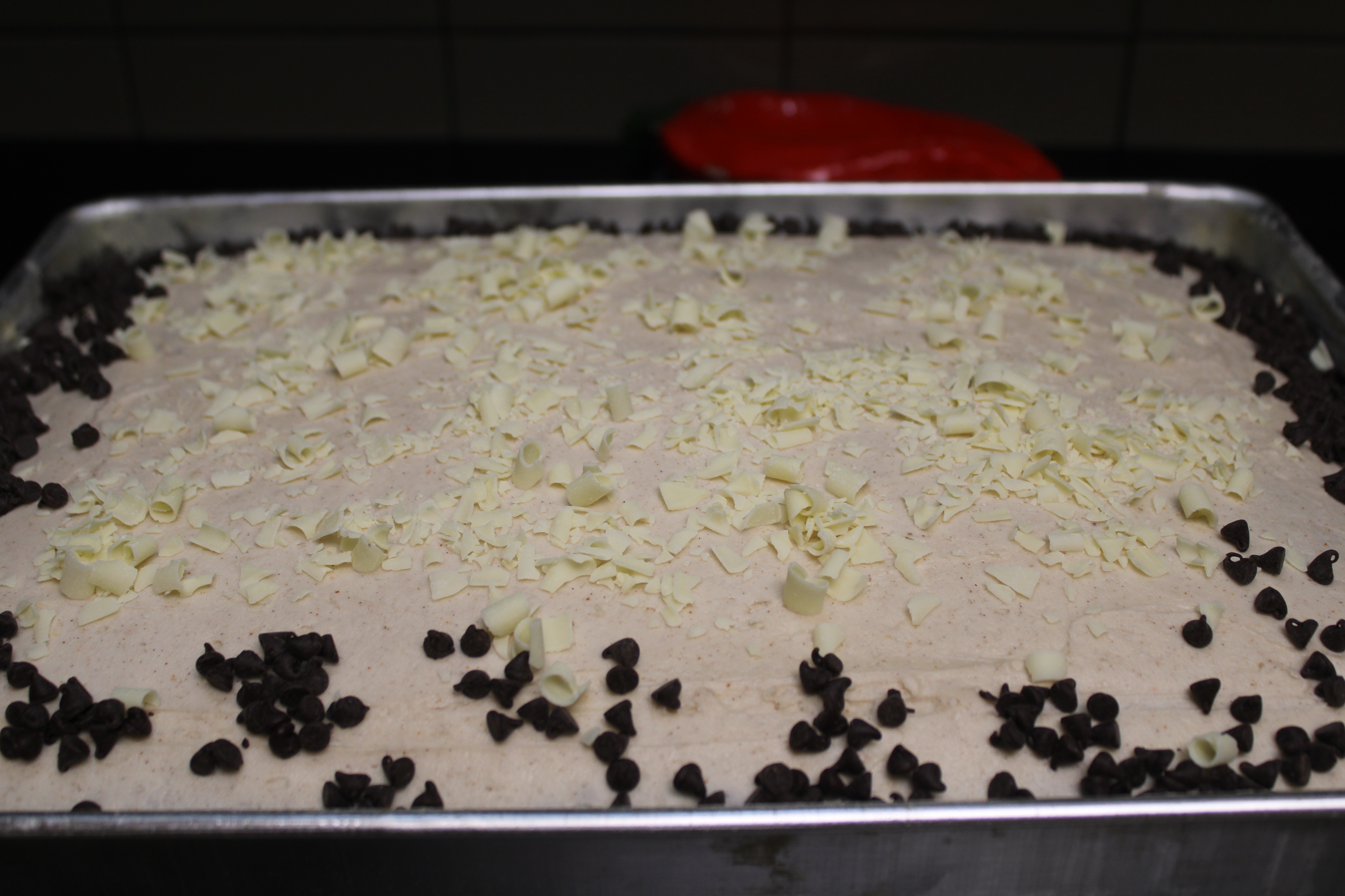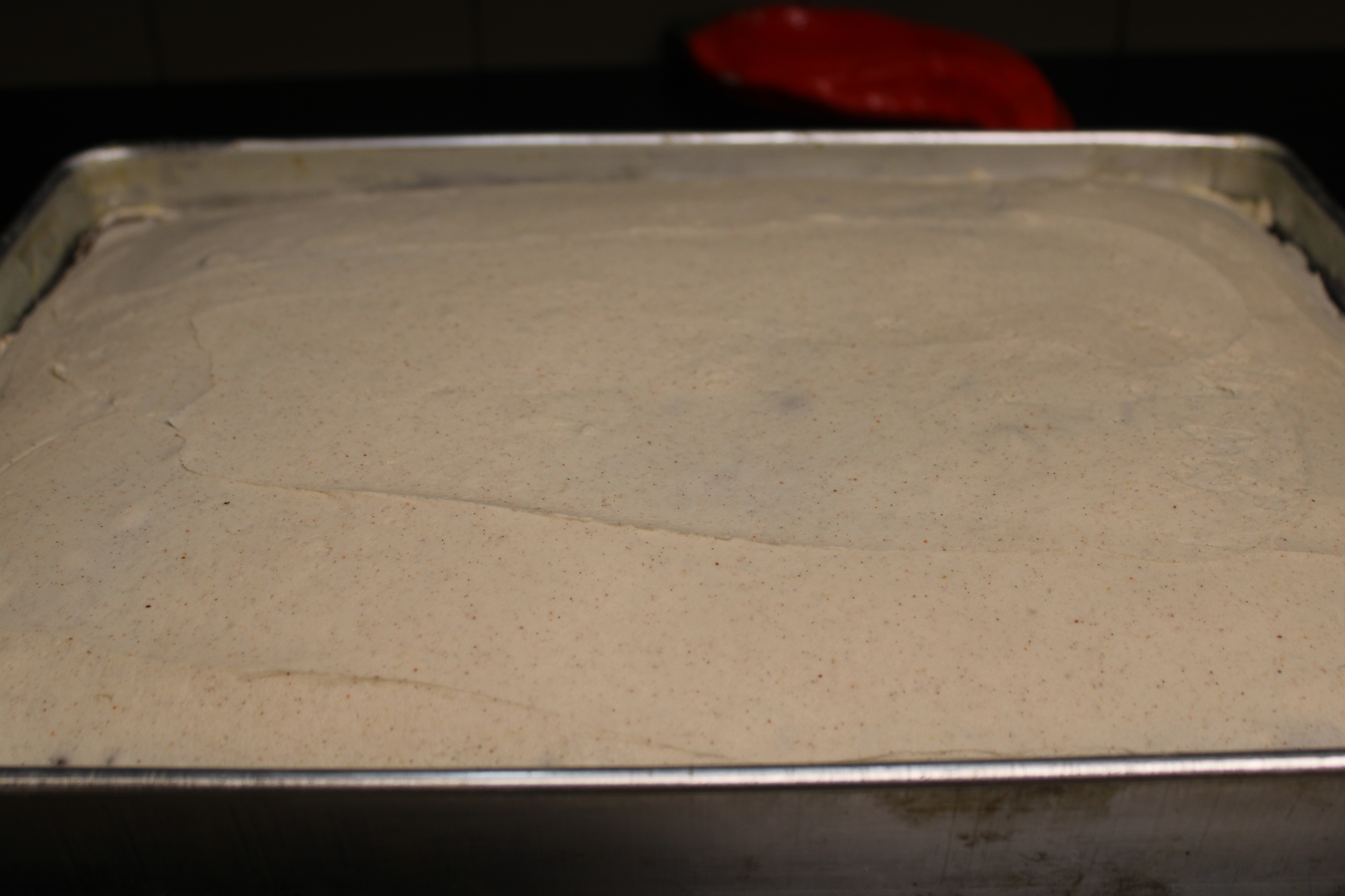 Heat oven to 325-degrees. Grease and flour a half-sheet cake pan. Set aside.