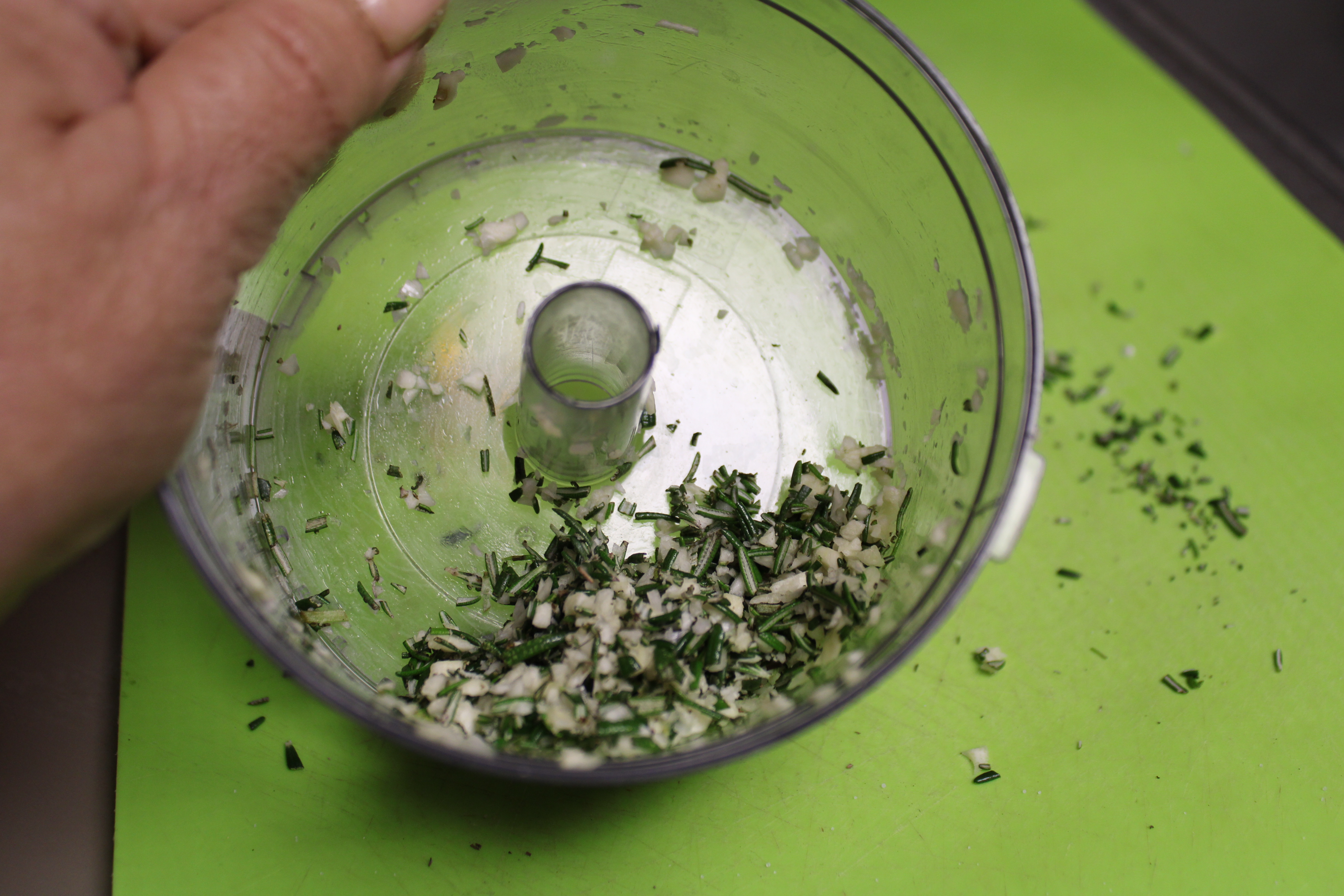 Strip rosemary needles from sprigs. Mince and set aside. Peel and mince garlic, add rosemary to the garlic. Stir to combine; set aside.