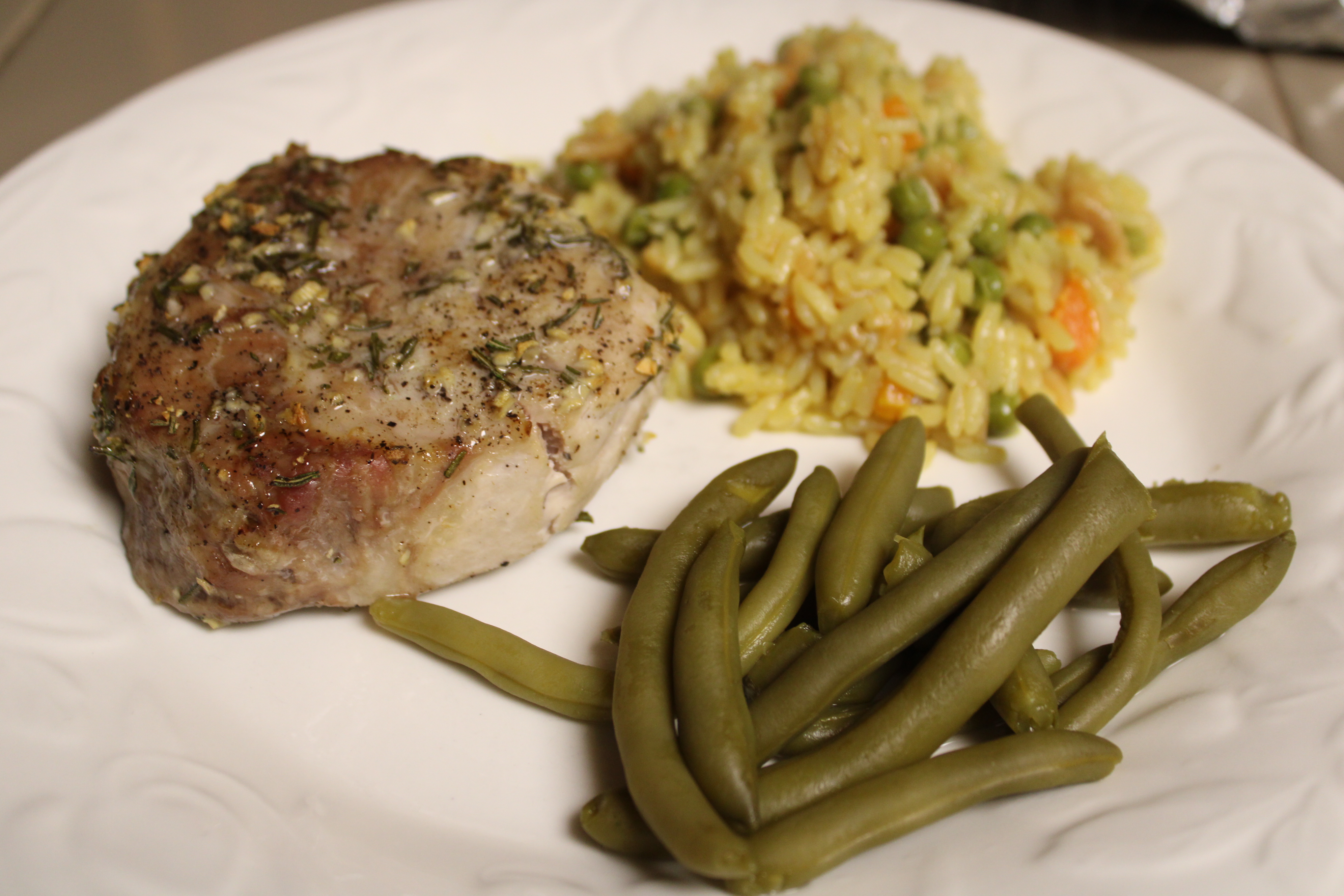 Serve these delicious pork chops with Rice Pilaf and Green Beans. Now that’s a nice Sunday Supper.