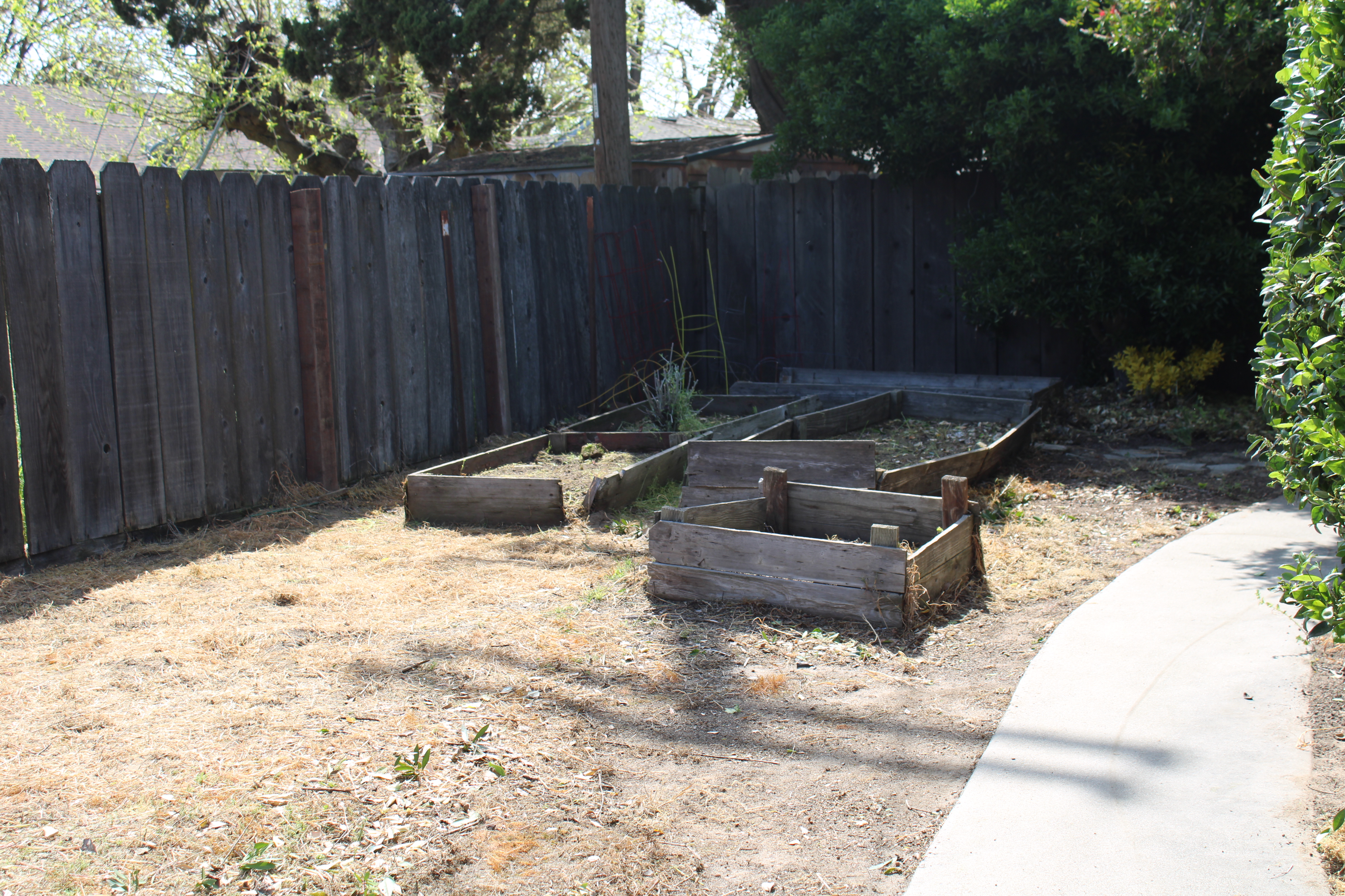 Last year we skipped the whole garden thing. When we moved into our house, the prior tenants (actually several tenants back) had built raised garden beds in the side yard. Over the years, the beds began to rot and fall apart.
