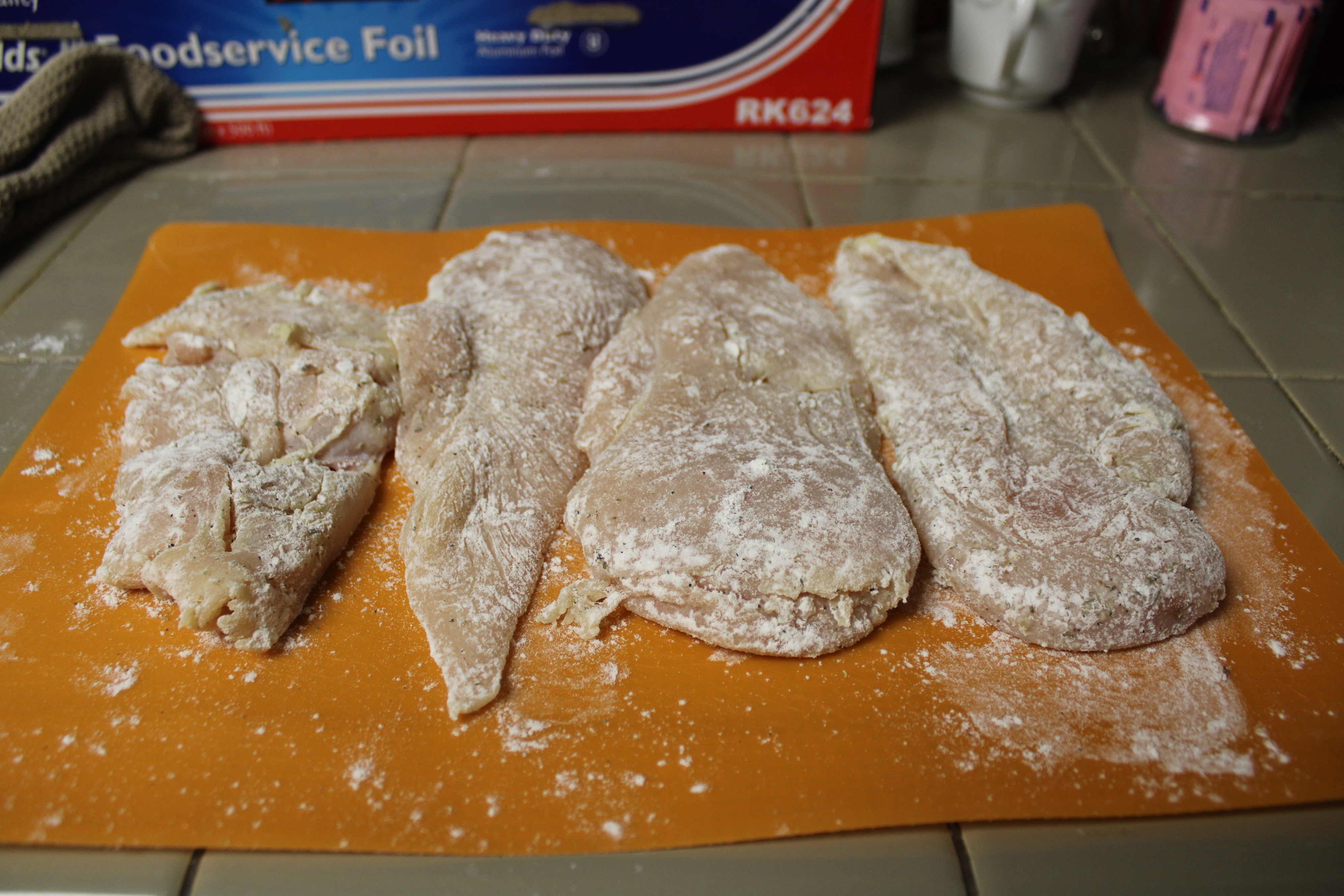 In a shallow bowl or pie tin combine flour, Italian Seasoning, salt and pepper to taste. Whisk to combine. Dredge chicken in the seasoned flour to coat, shaking off any excess.