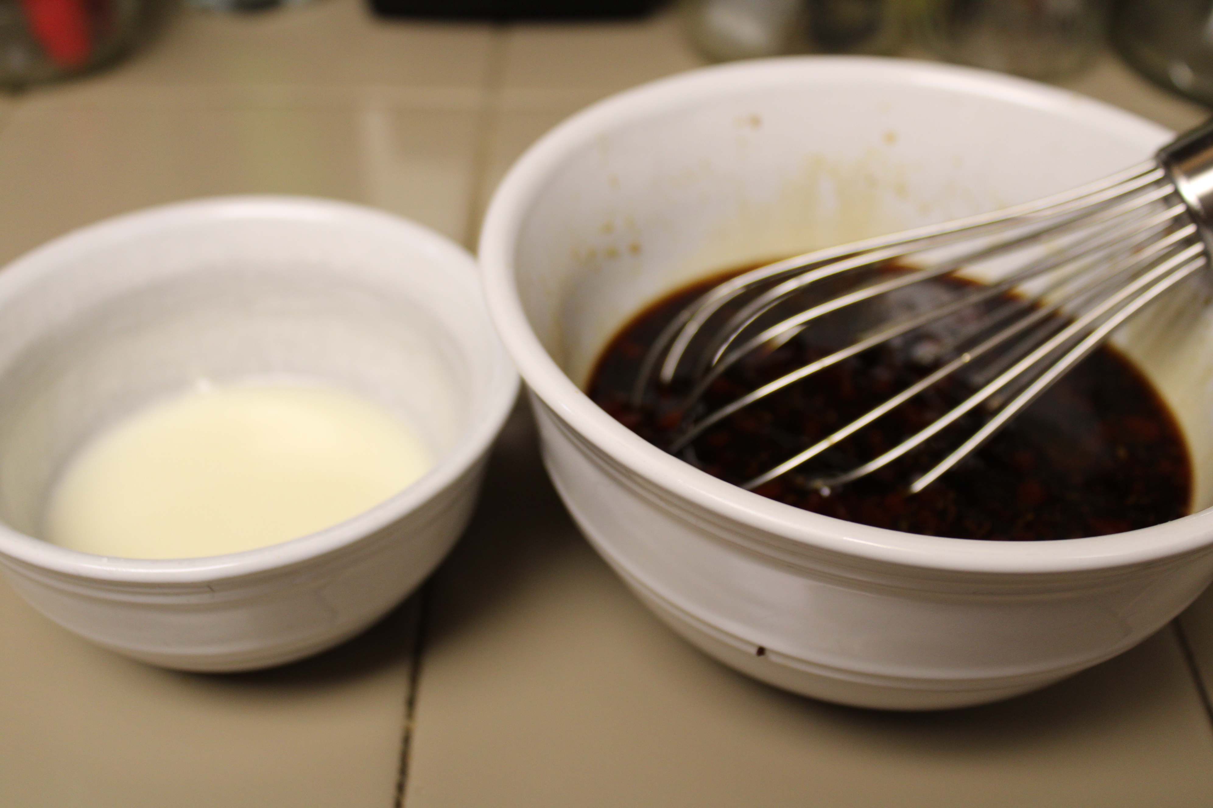 In a small bowl whisk cornstarch with rice wine to create a slurry. Add slurry to the sauce. Set aside.