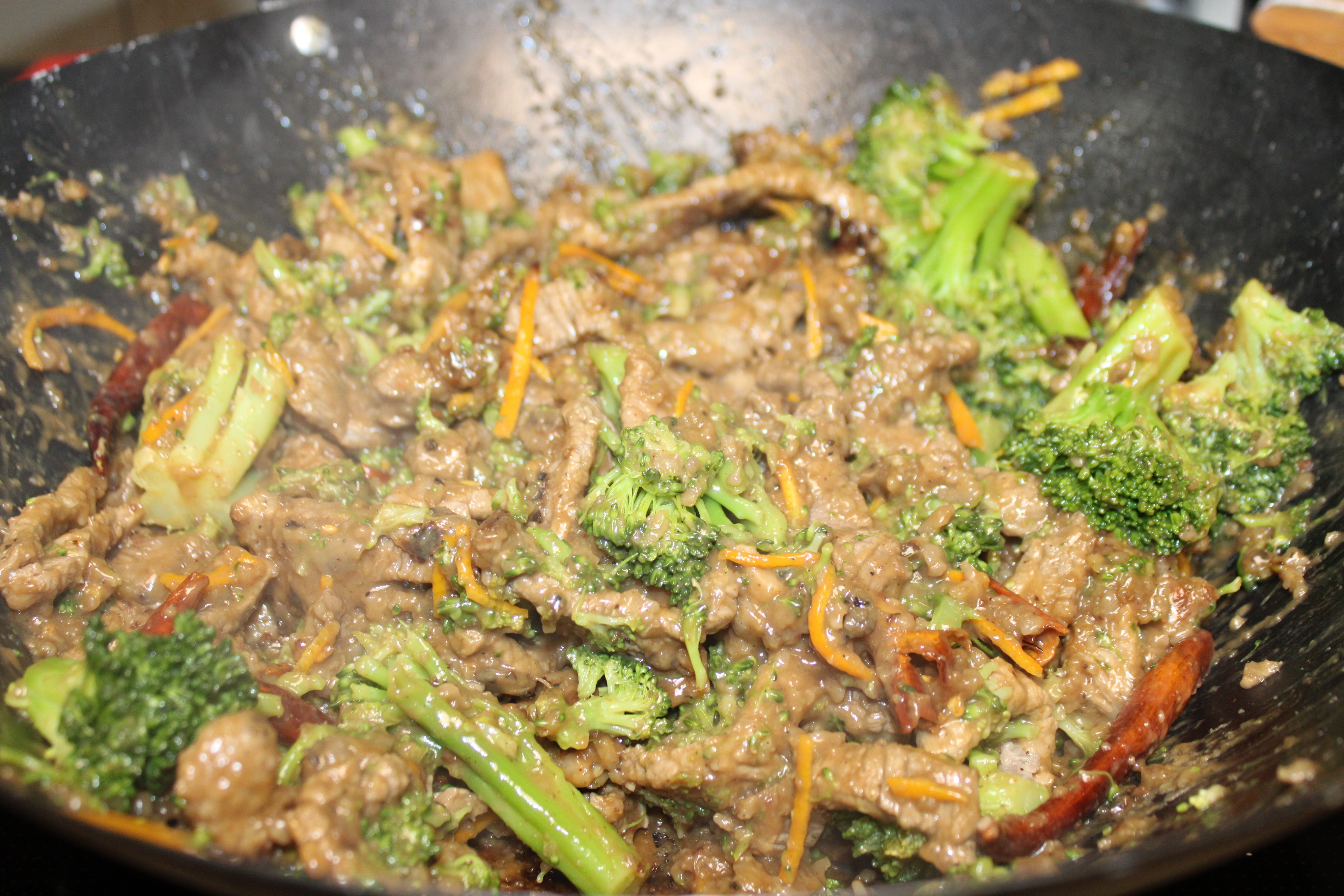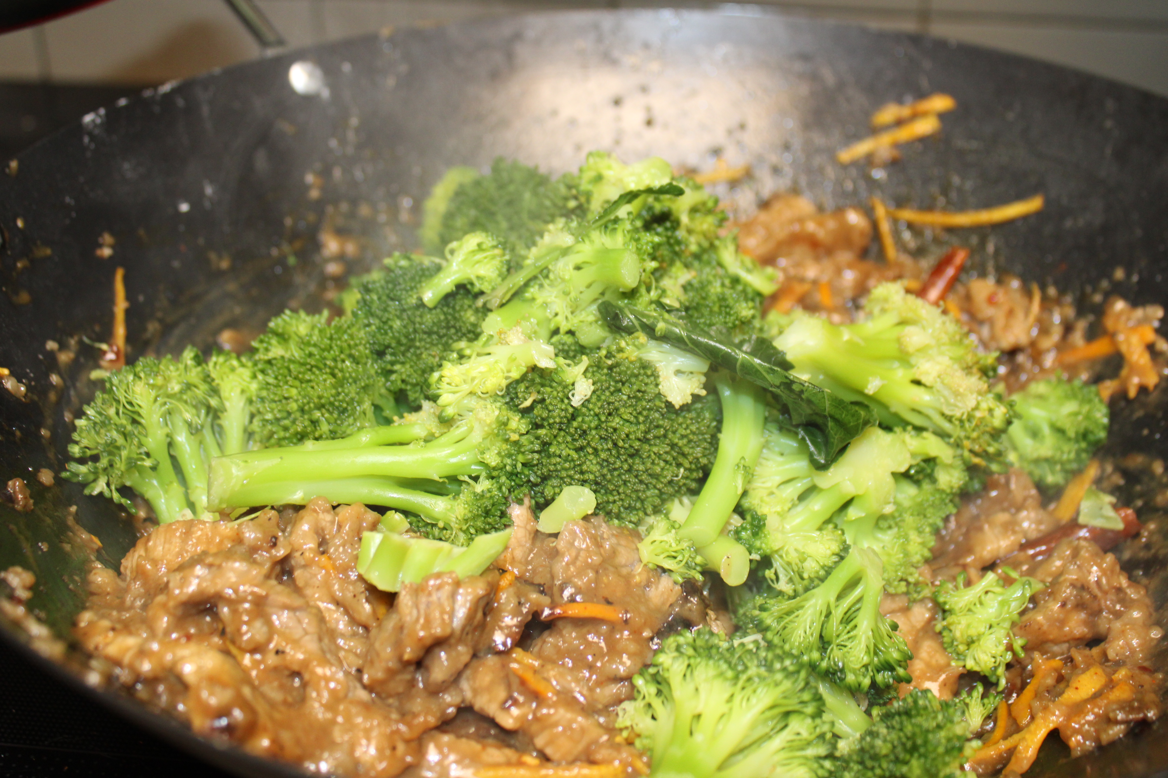 Add the sauce to the wok. As the sauce thickens at fried beef a few at a time to coat well. Add steamed broccoli, stir-fry until everything is coated in the sauce and heated through.