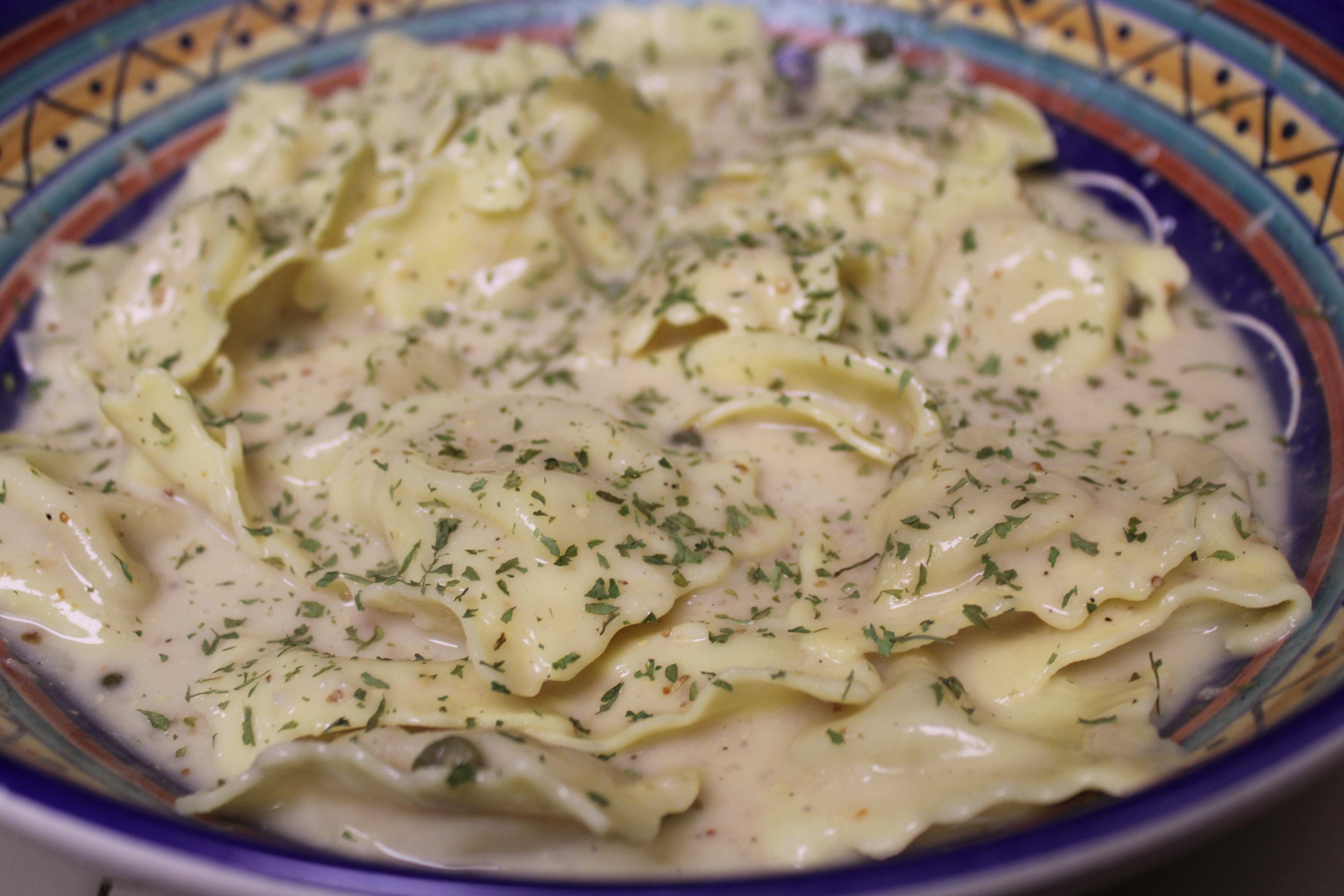 The Chicken Ravioli Piccata should cheer us up.