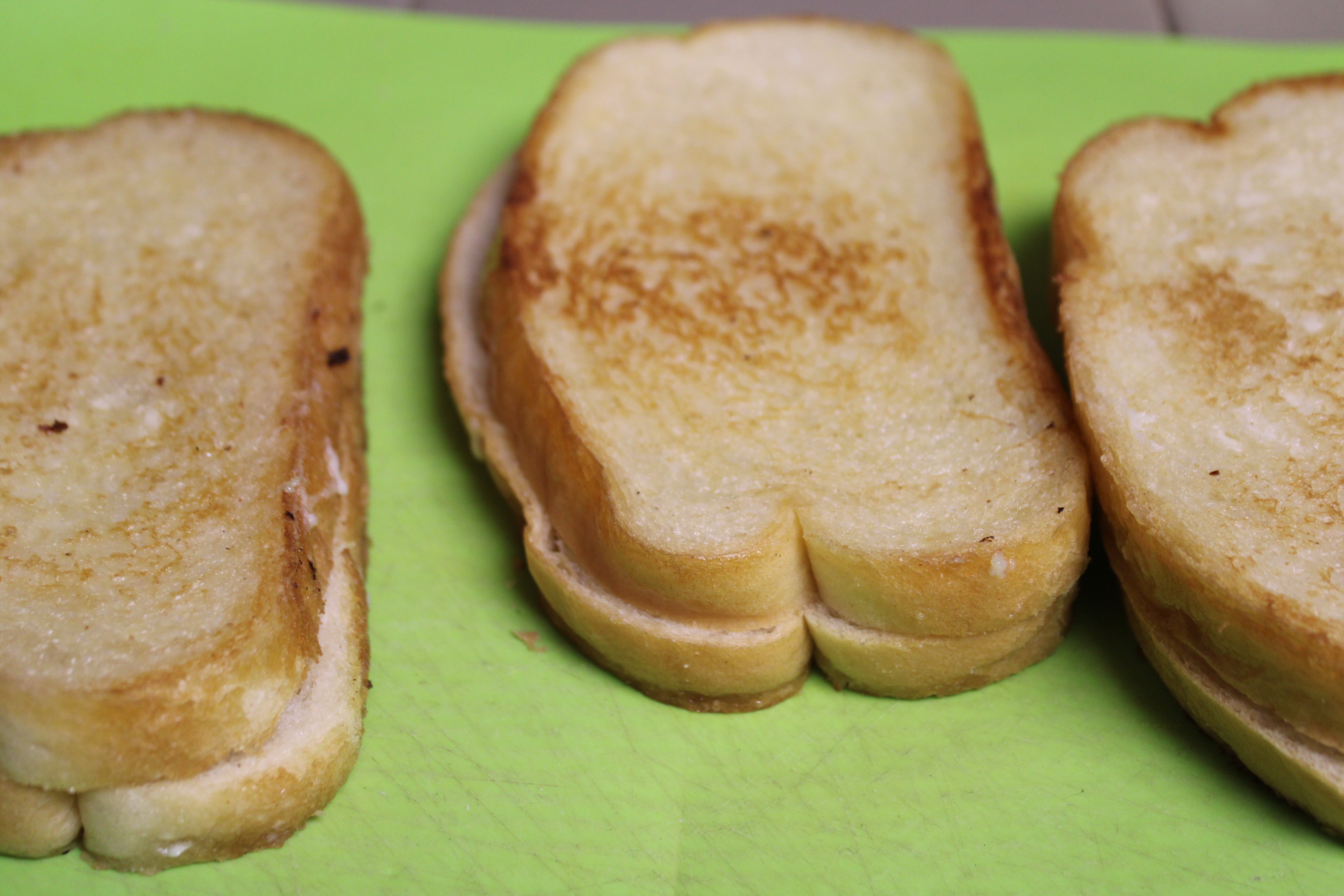 Spread about a tablespoon of mayonnaise on each slice of sourdough bread. Once the skillet is ready, place the bread, mayonnaise side down, and grill until nicely golden.