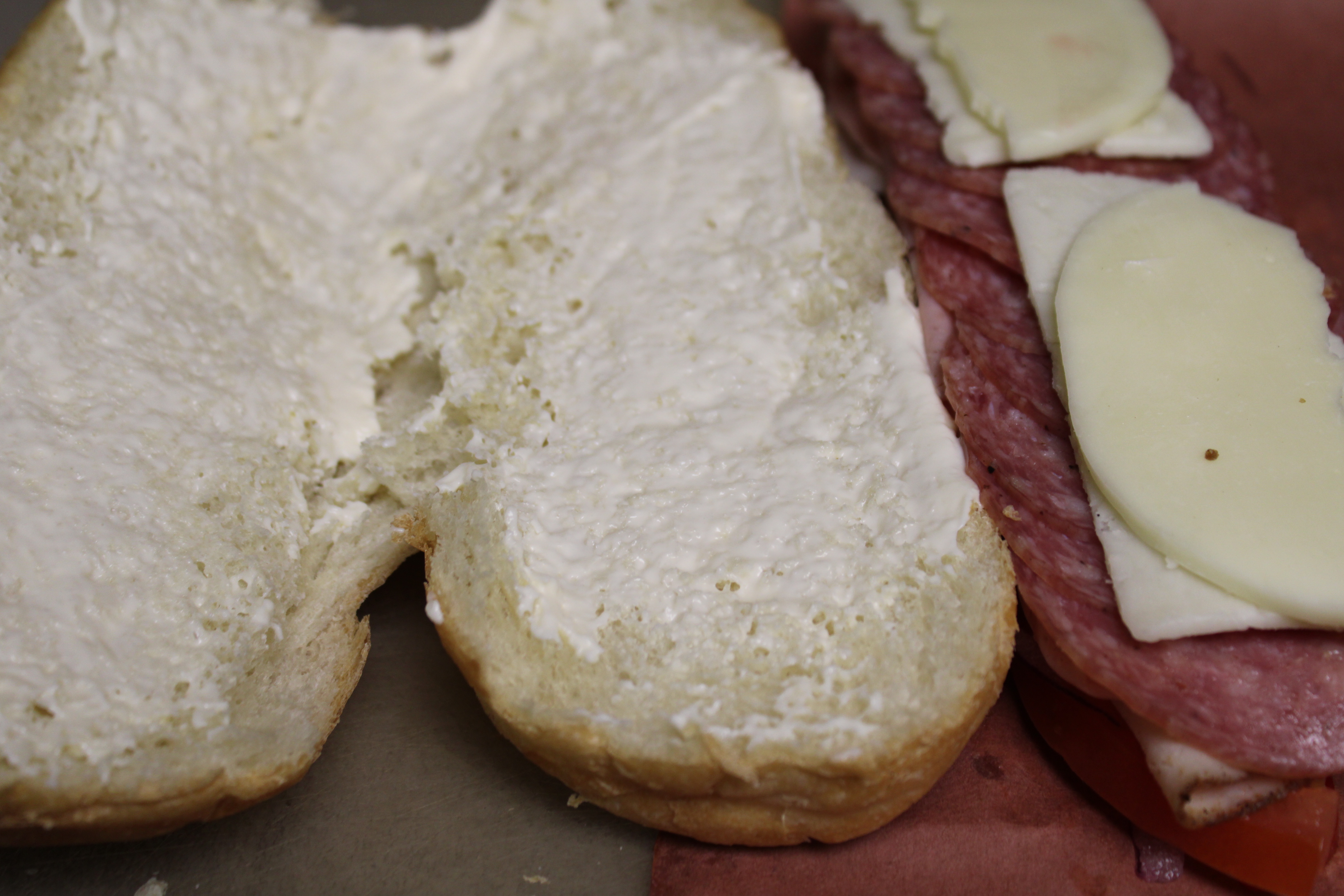 Spread mayonnaise inside each sub roll. Roll filling into the sub, veggies now on top. Shake dressing vigorously to emulsify. Scatter shredded lettuce over the top of the sandwiches, drizzle with dressing then season with salt and pepper to taste. Serve with pickle spears or stuffed olives and your choice of deli salads such as Macaroni or Pasta Salad. Enjoy!