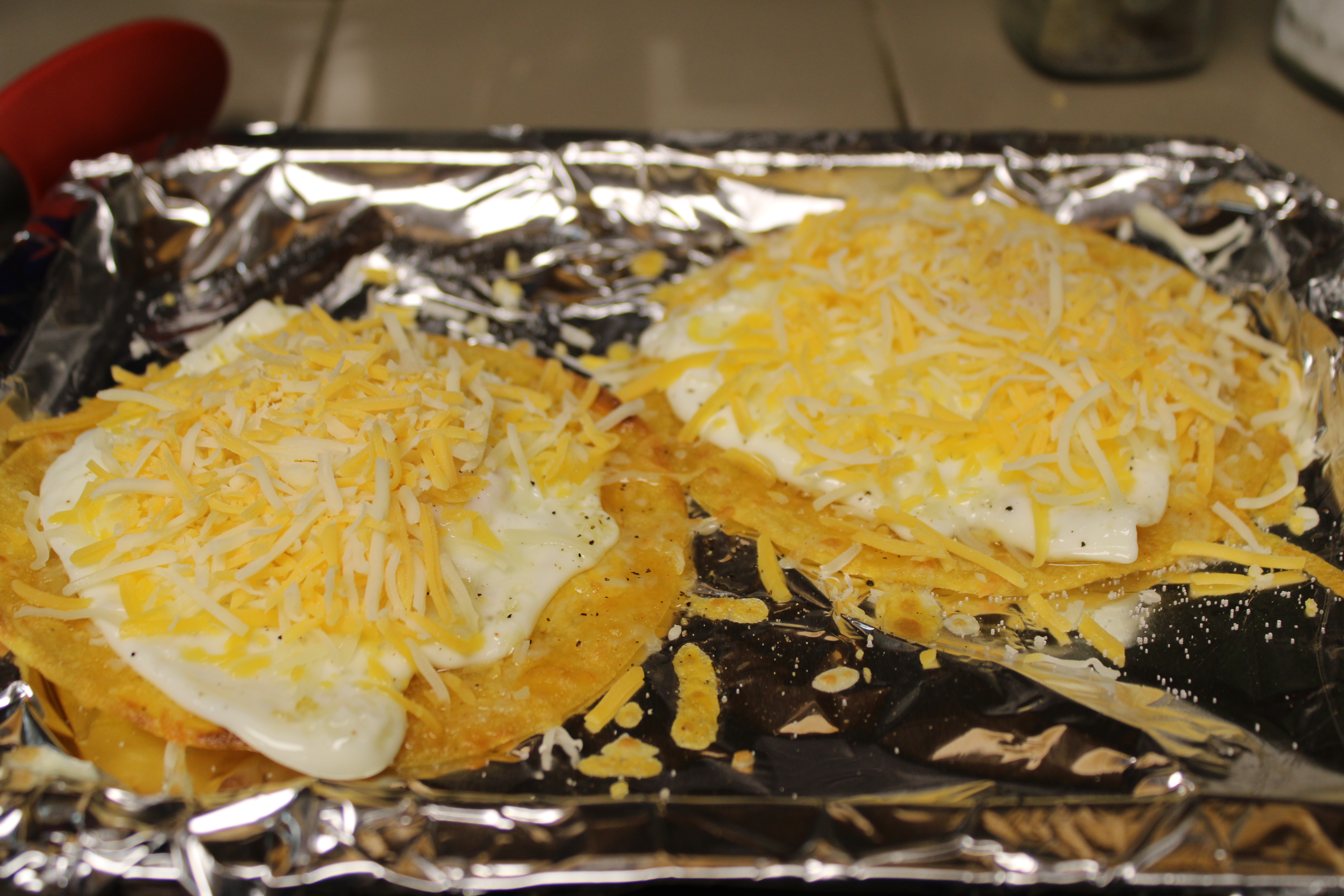 Place tortillas under the broiler for just a minute or two, long enough for the cheese to melt. Remove from oven, set aside, leaving heat element on.