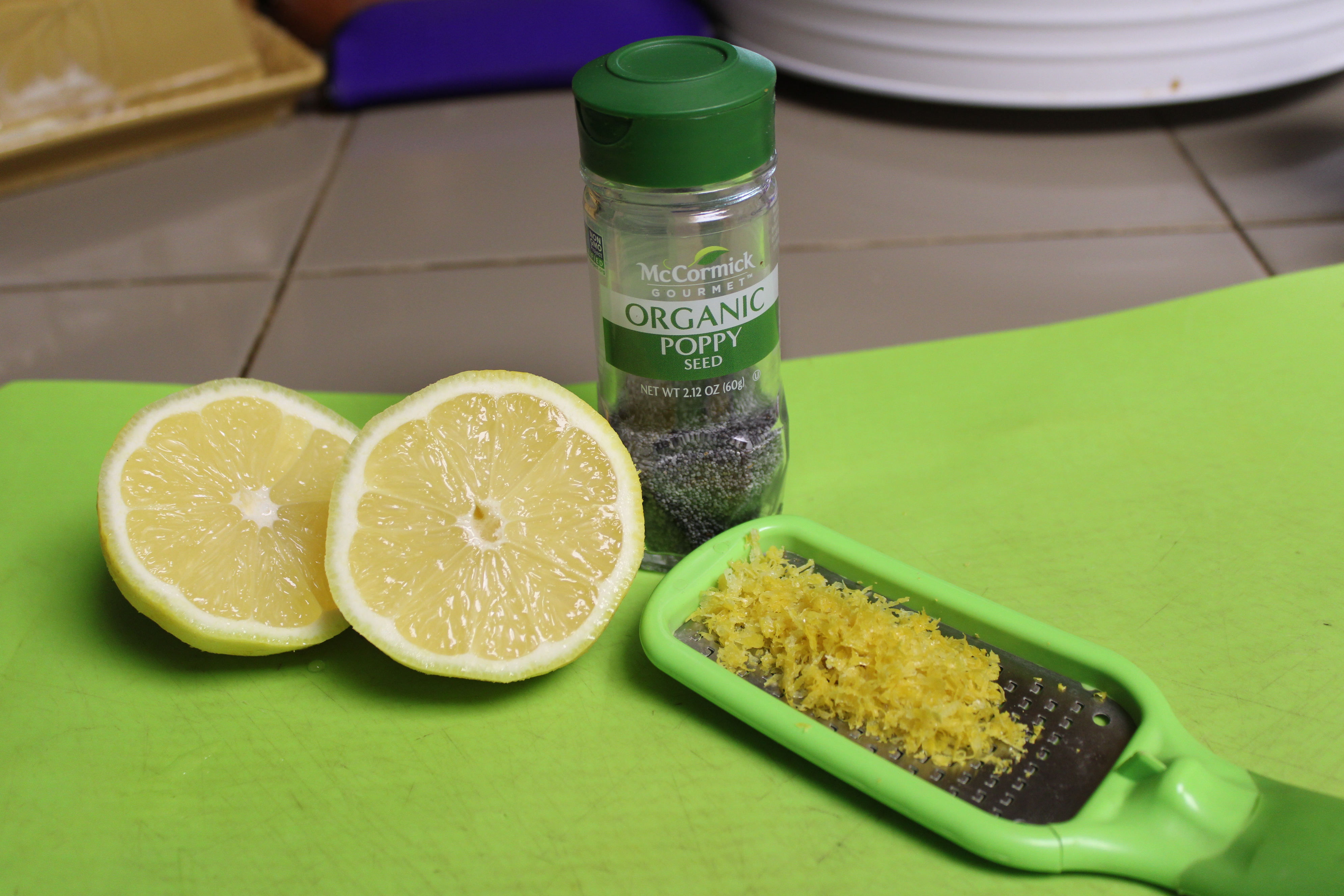 Mix flour, sugar, poppy seeds, baking powder, lemon zest and salt in a food processor. Add butter and cut in in quick pulses until the mixture resembles coarse meal.
