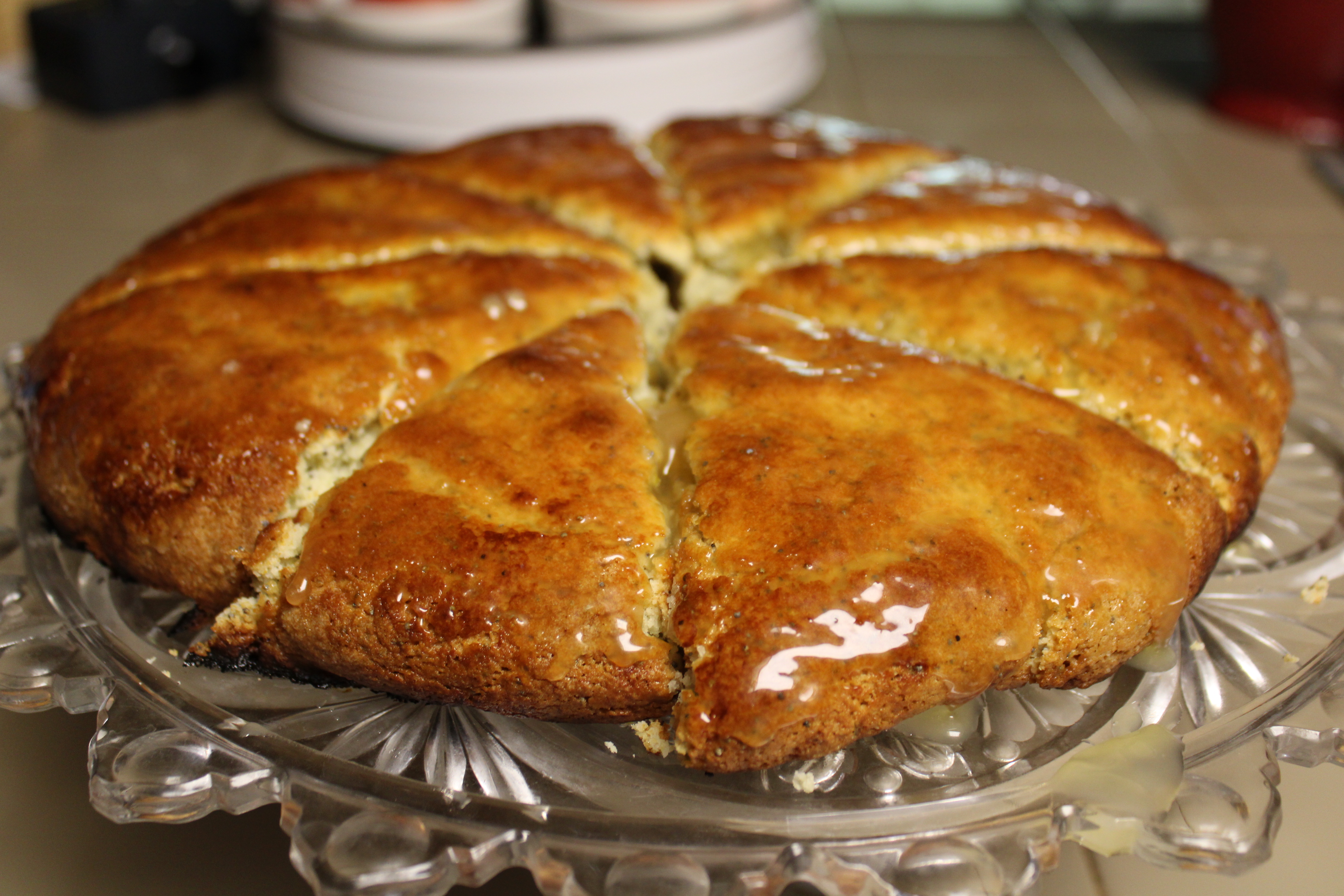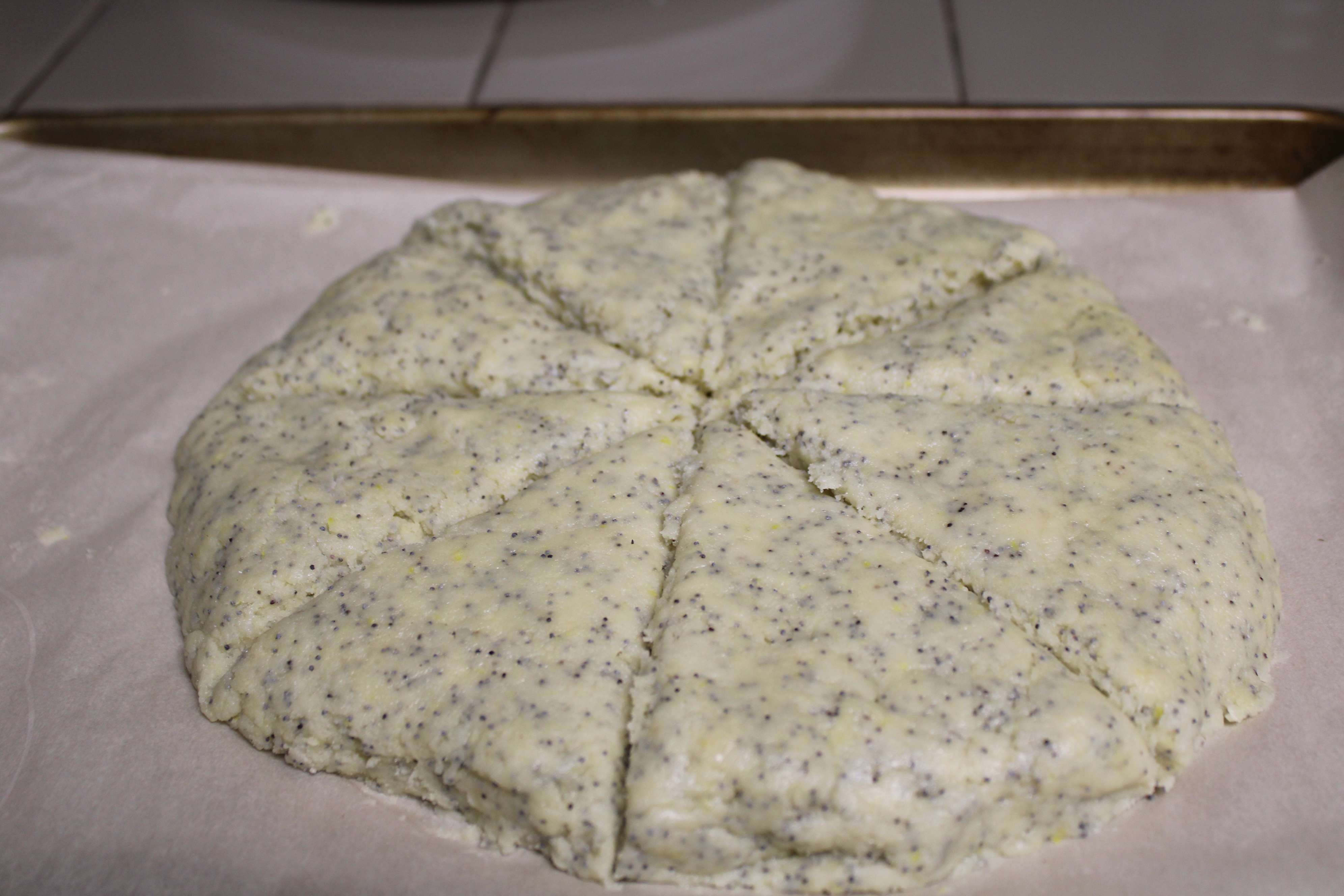 Remove from oven, let cool for just a few minutes. While still warm brush scones with Lemon Curd, serving additional curd on the side to use as desired.