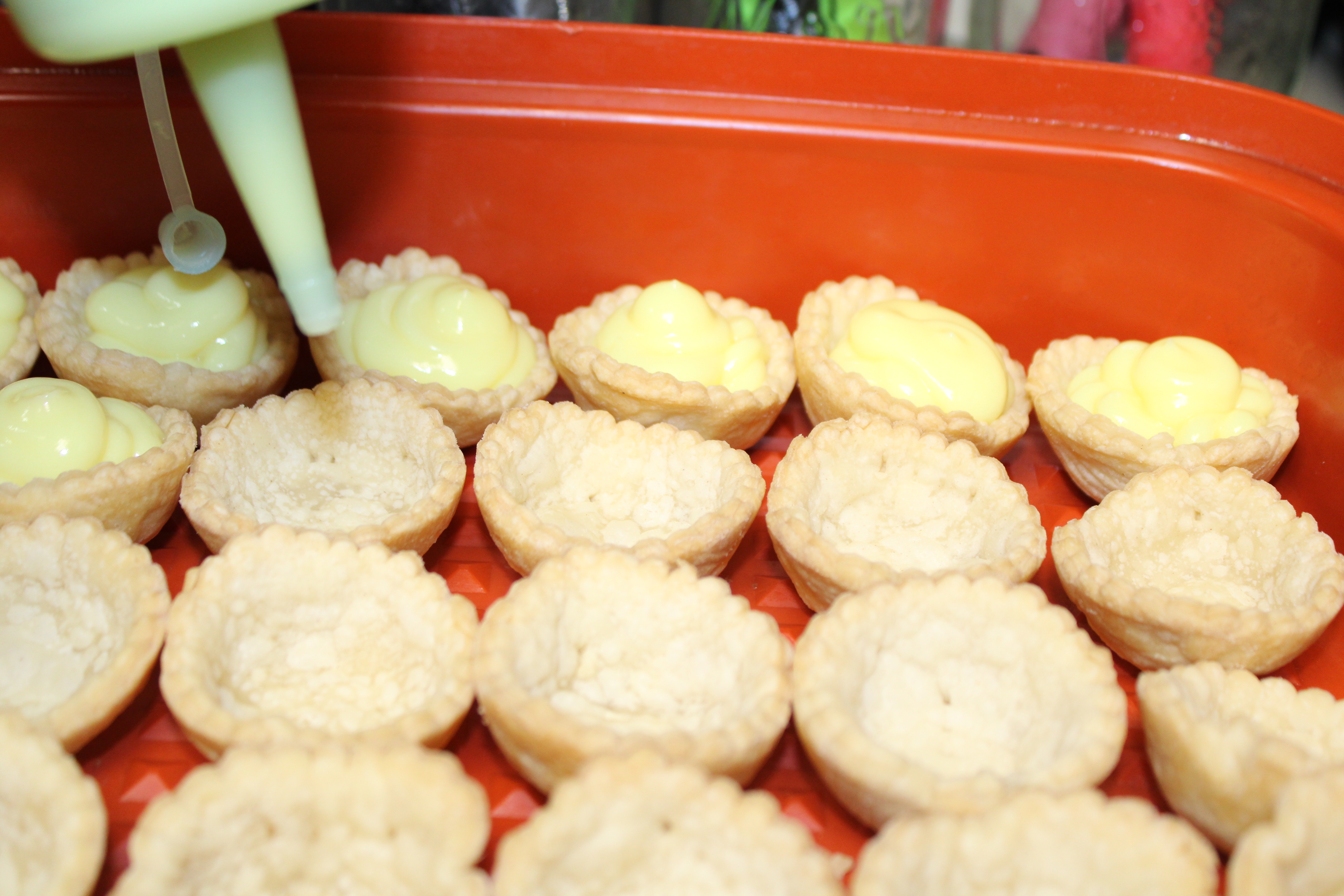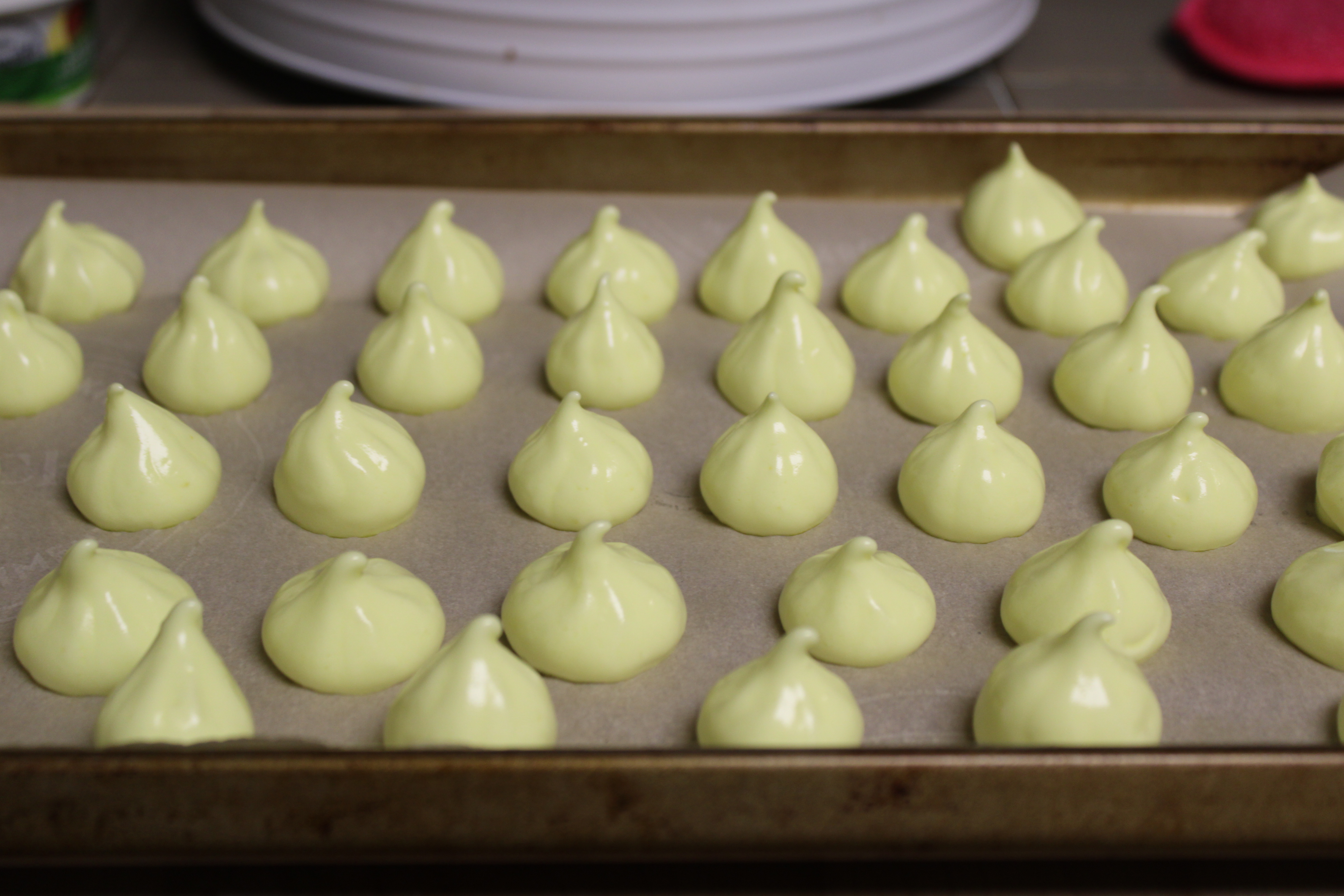 Place Meringue in a pastry bag or cookie press fitted with a star tip. Pipe enough “kissed” to top each lemon tartlets. Just to be safe, pipe a few extras.