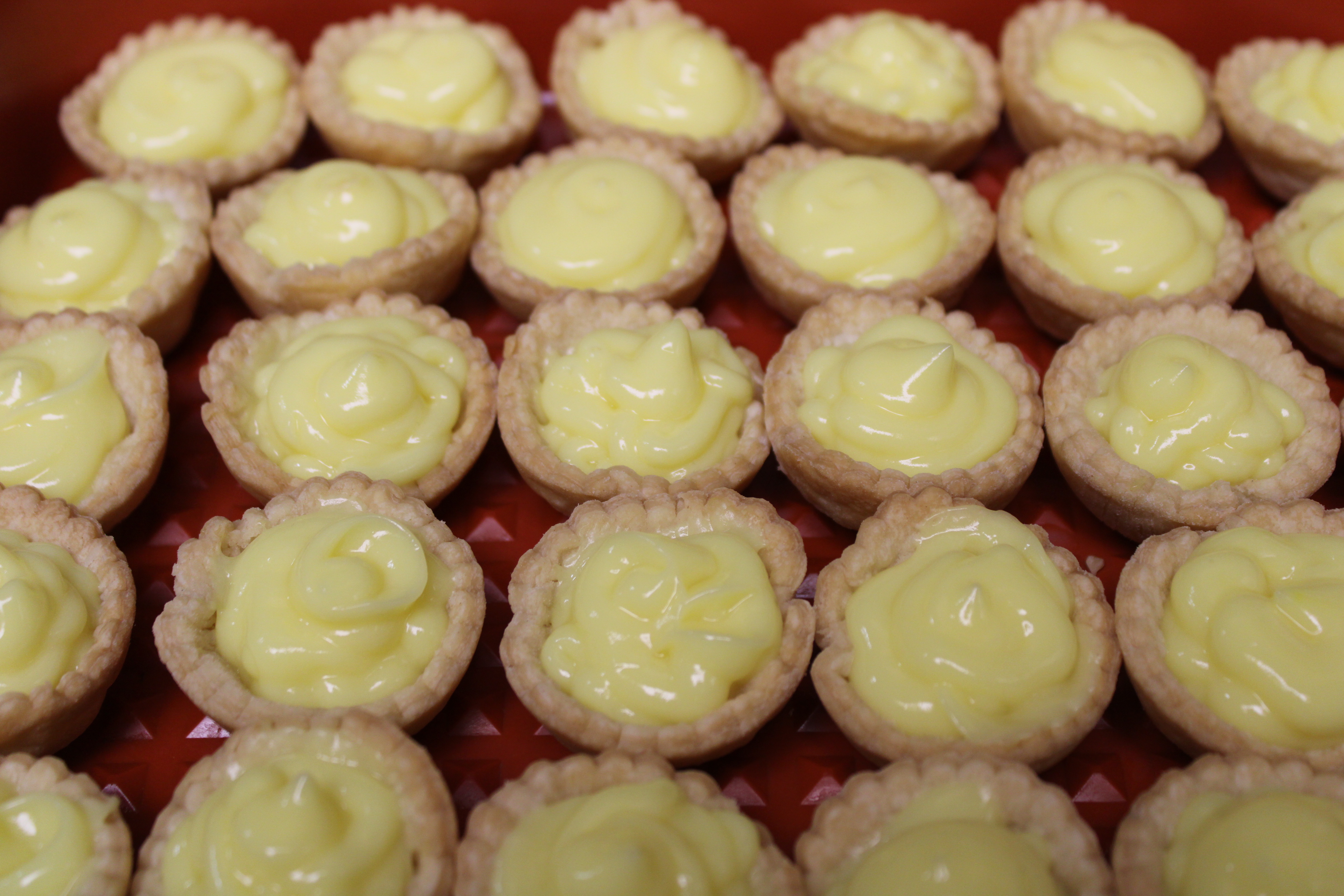 Fill pastry shells with the lemon pudding. Top with a kiss. Arrange on a serving platter or tier cupcake platter. Garnish with tiny flowers if desired.