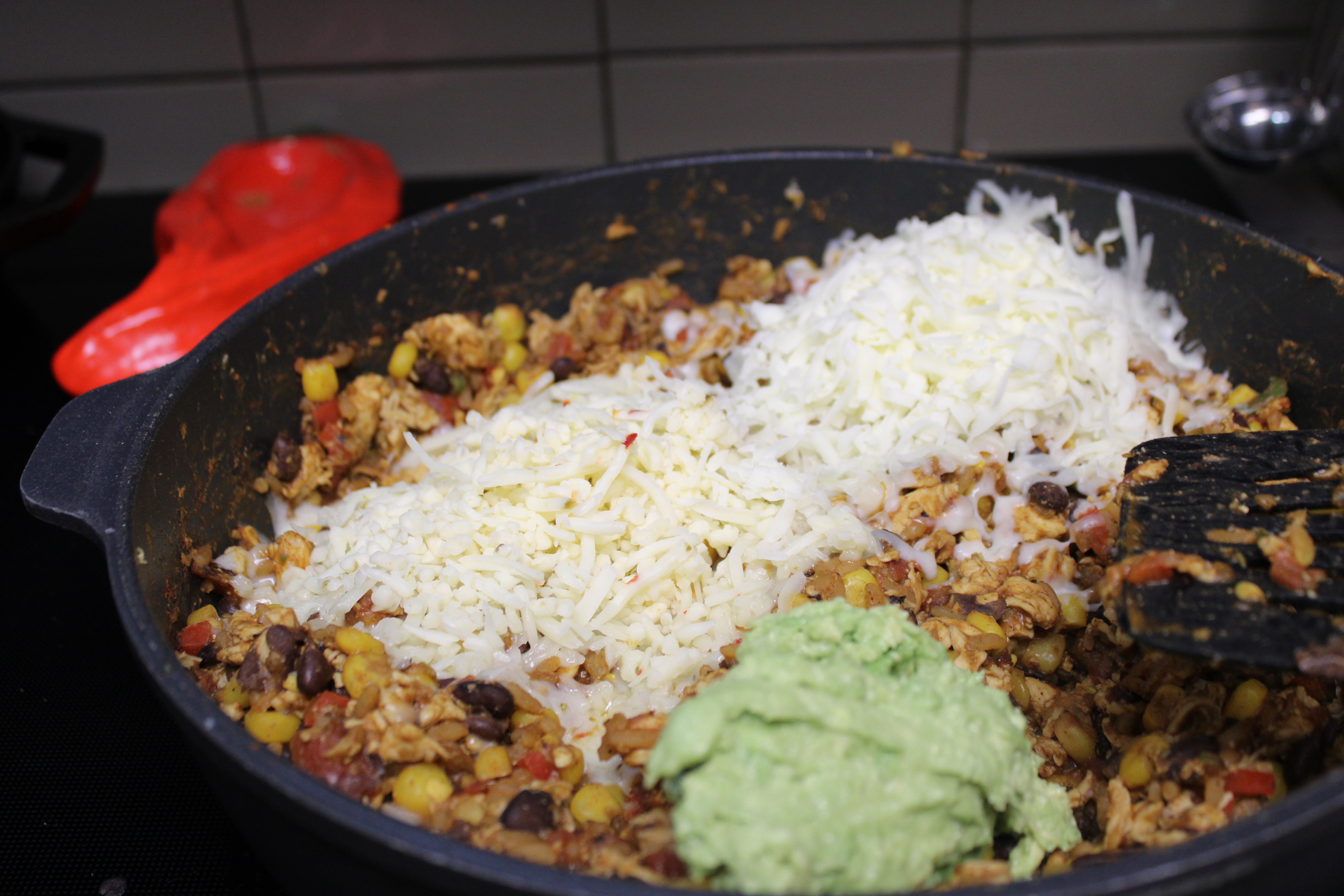 Stir in the cheeses. Peel and mash avocado, stir into the mixture until blended and the cheese has melted from the residual heat.