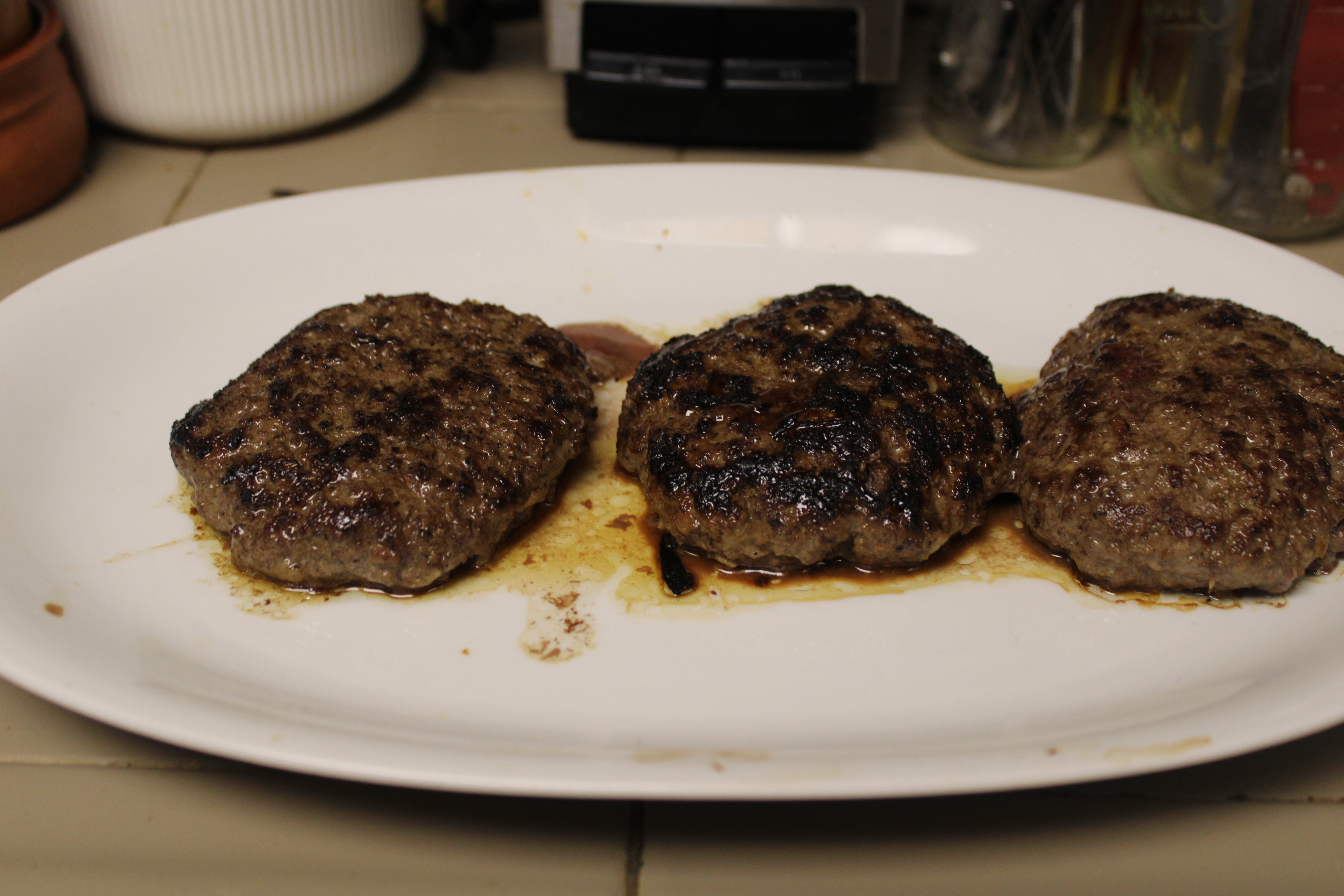 Place beef patties into the now empty skillet. Sear for just a few minutes, then reduce heat and cook patties through, about 5 minutes per side depending upon thickness. Once cooked through, transfer patties to the platter and hold in the oven while the gravy is made.