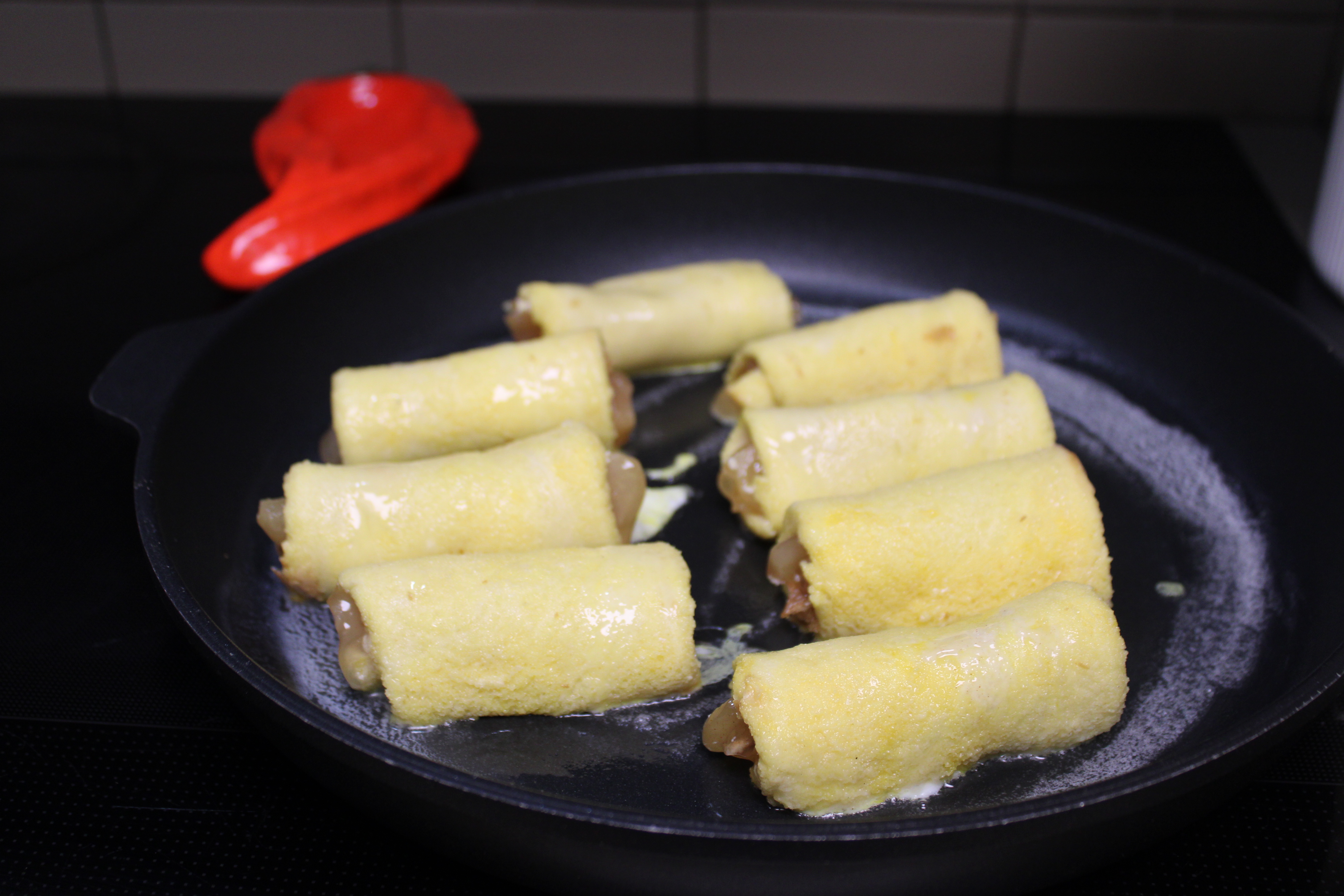 Lightly coat rolled bread in the egg mixture, then place seam-side down in the skillet. Cook in batches, turning a quarter turn every few minutes until nicely browned on all sides. Remove from the skillet, roll in the cinnamon-sugar mixture and place in the oven. Repeat until all the French Toast Rolls have been cooked.