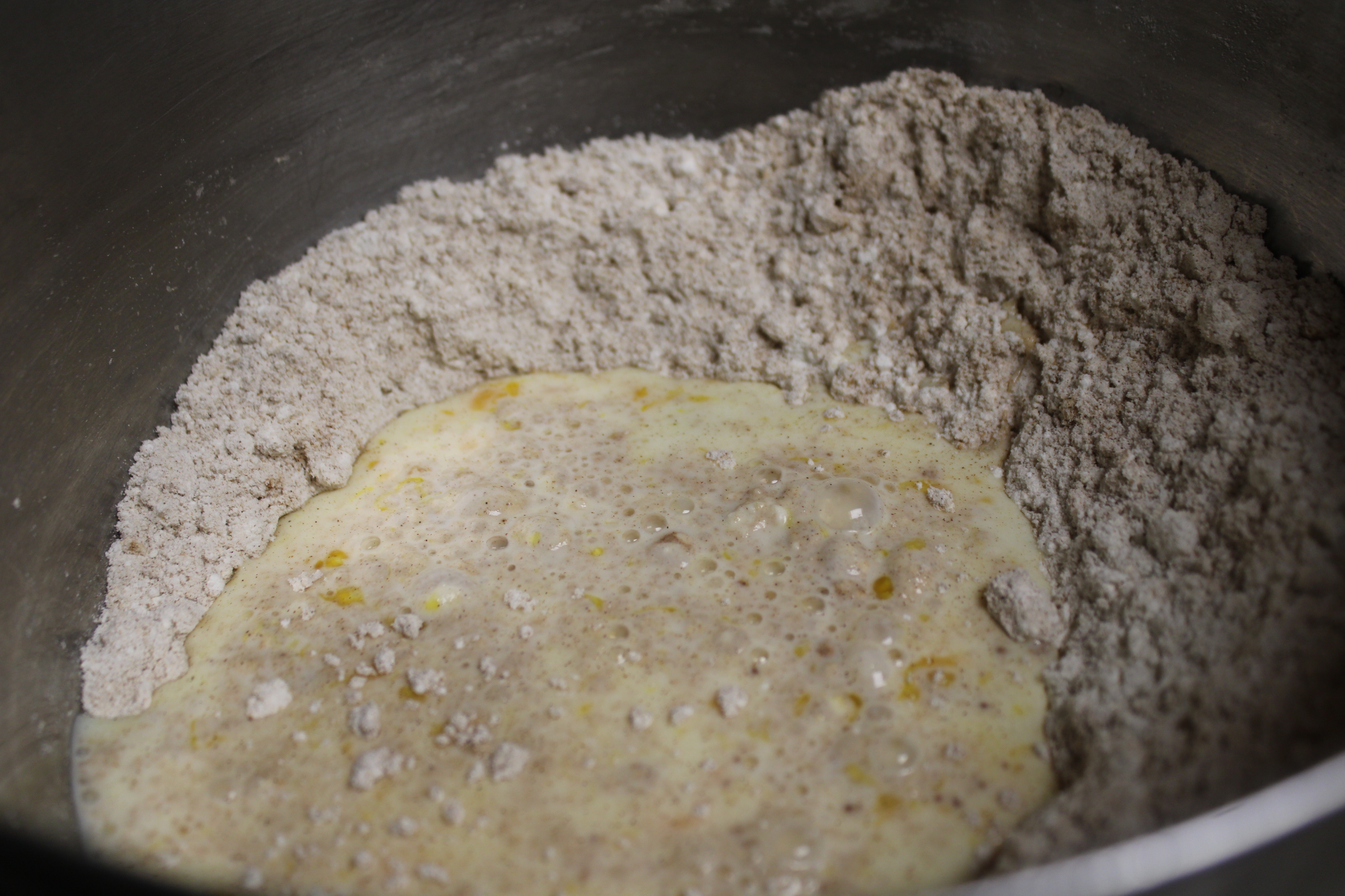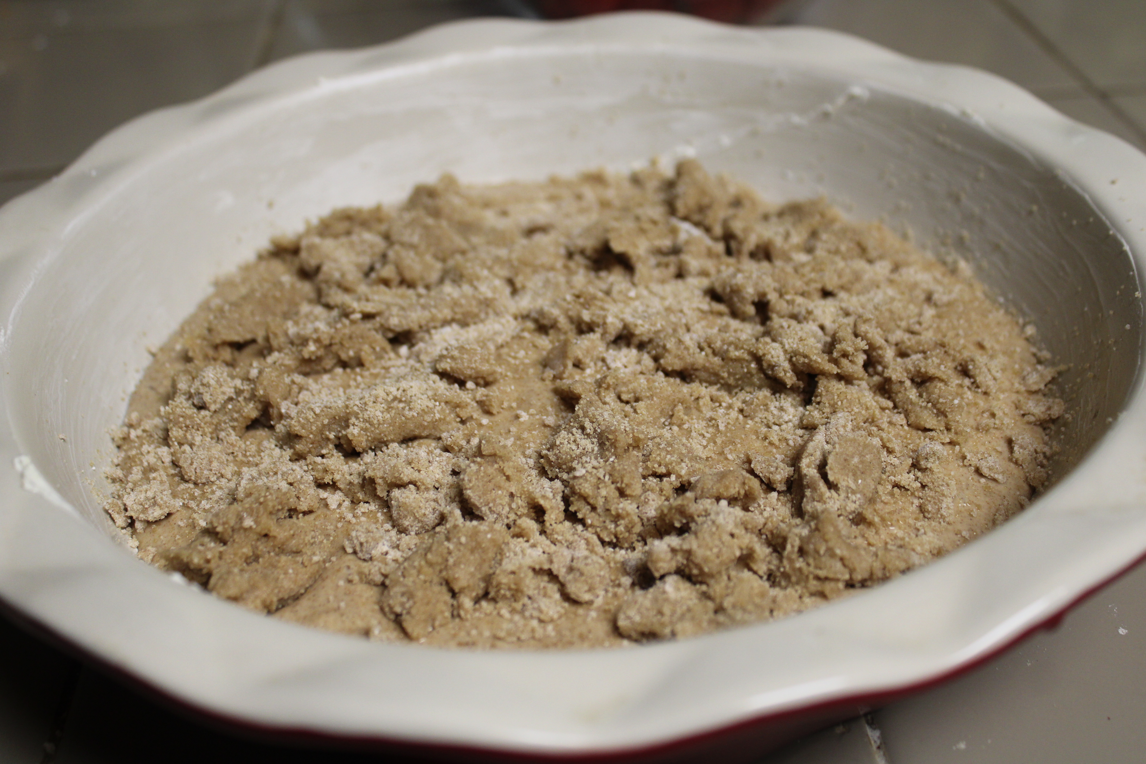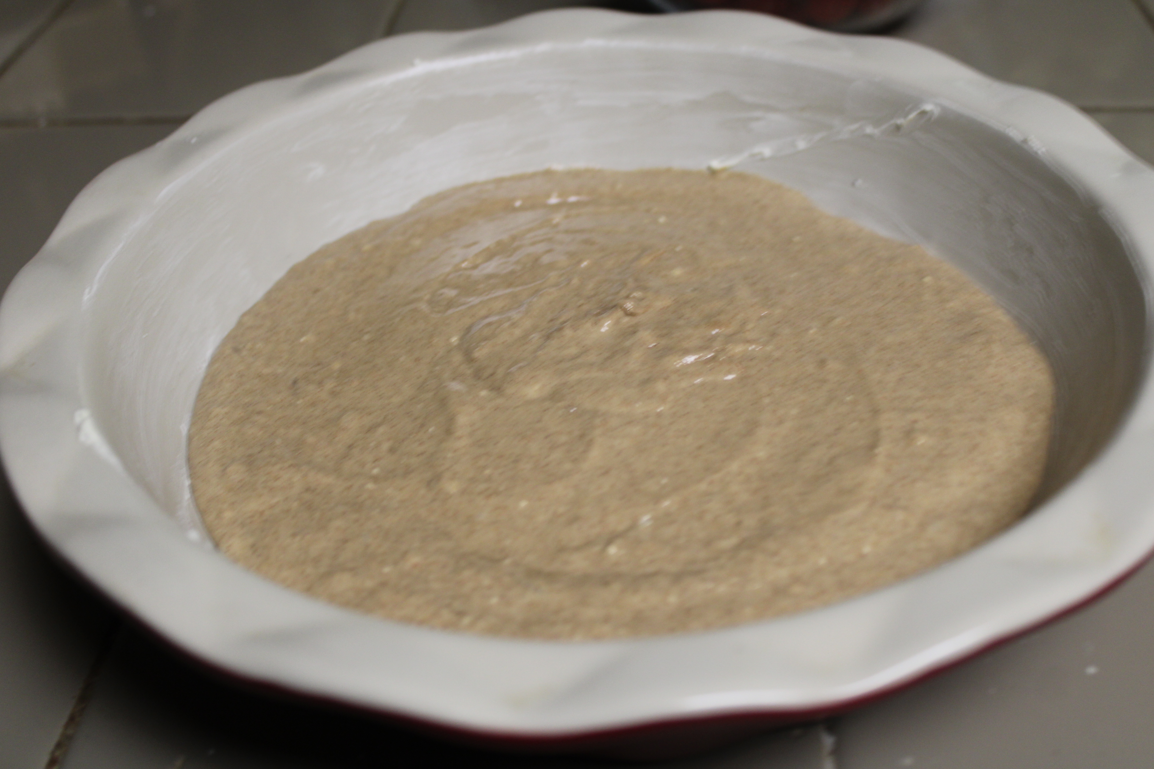 Pour the batter into the prepared pie plate. Set aside to make the topping.