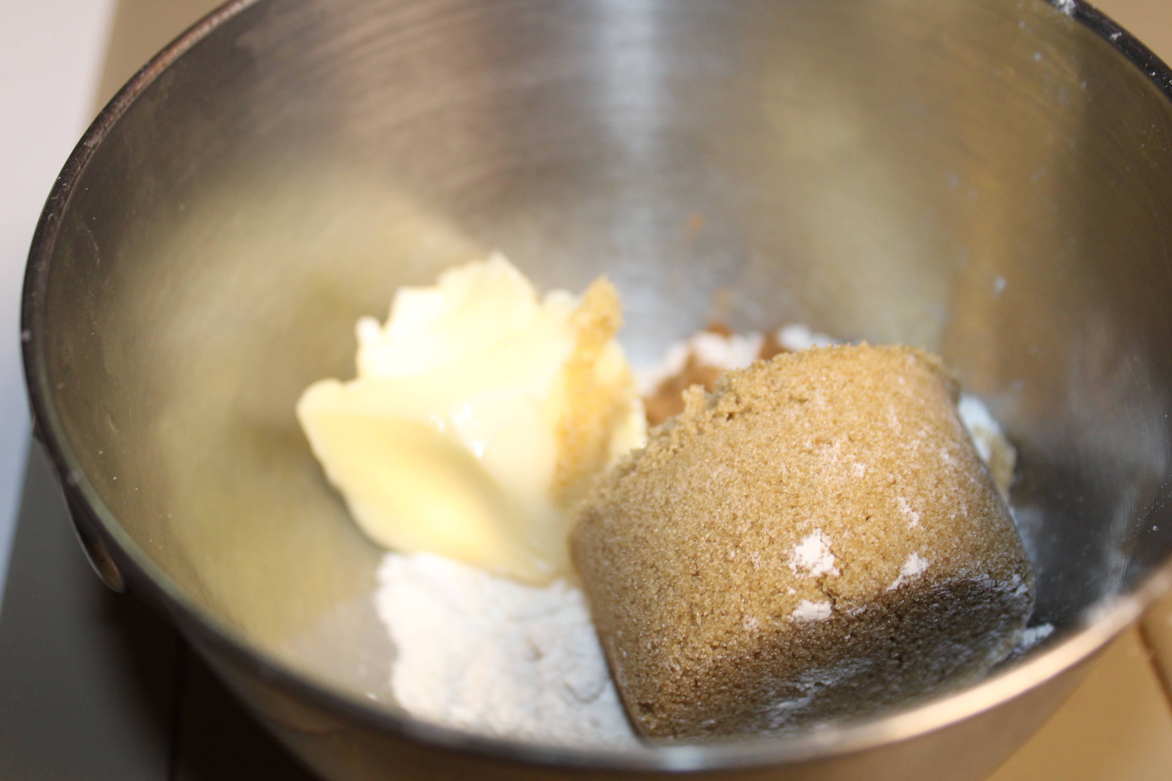 In a bowl mix together the Bisquick, brown sugar, cinnamon and butter with a fork to create a crumble mixture.