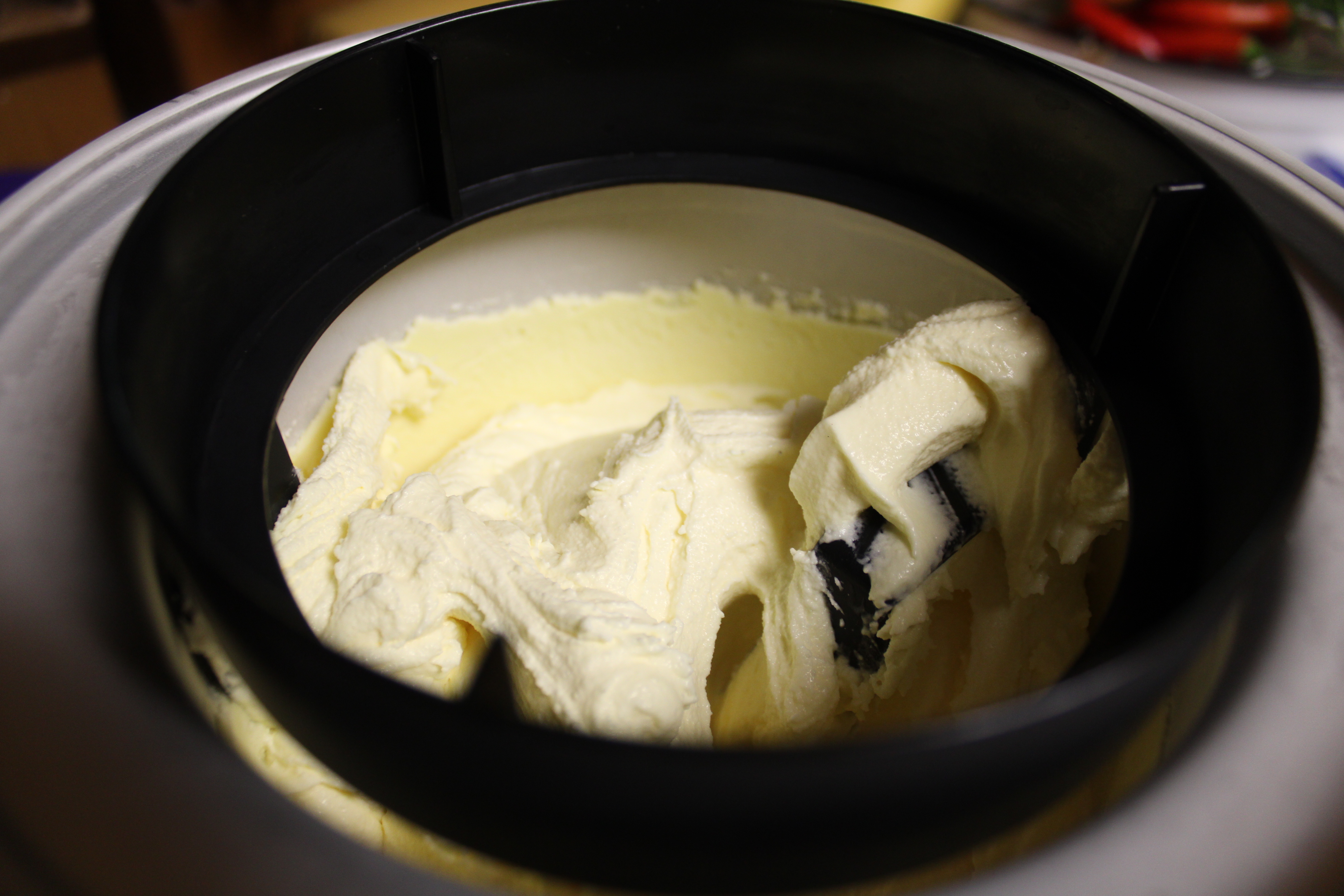 Chill the ice cream cylinder and paddle according to the manufacture’s instructions.
