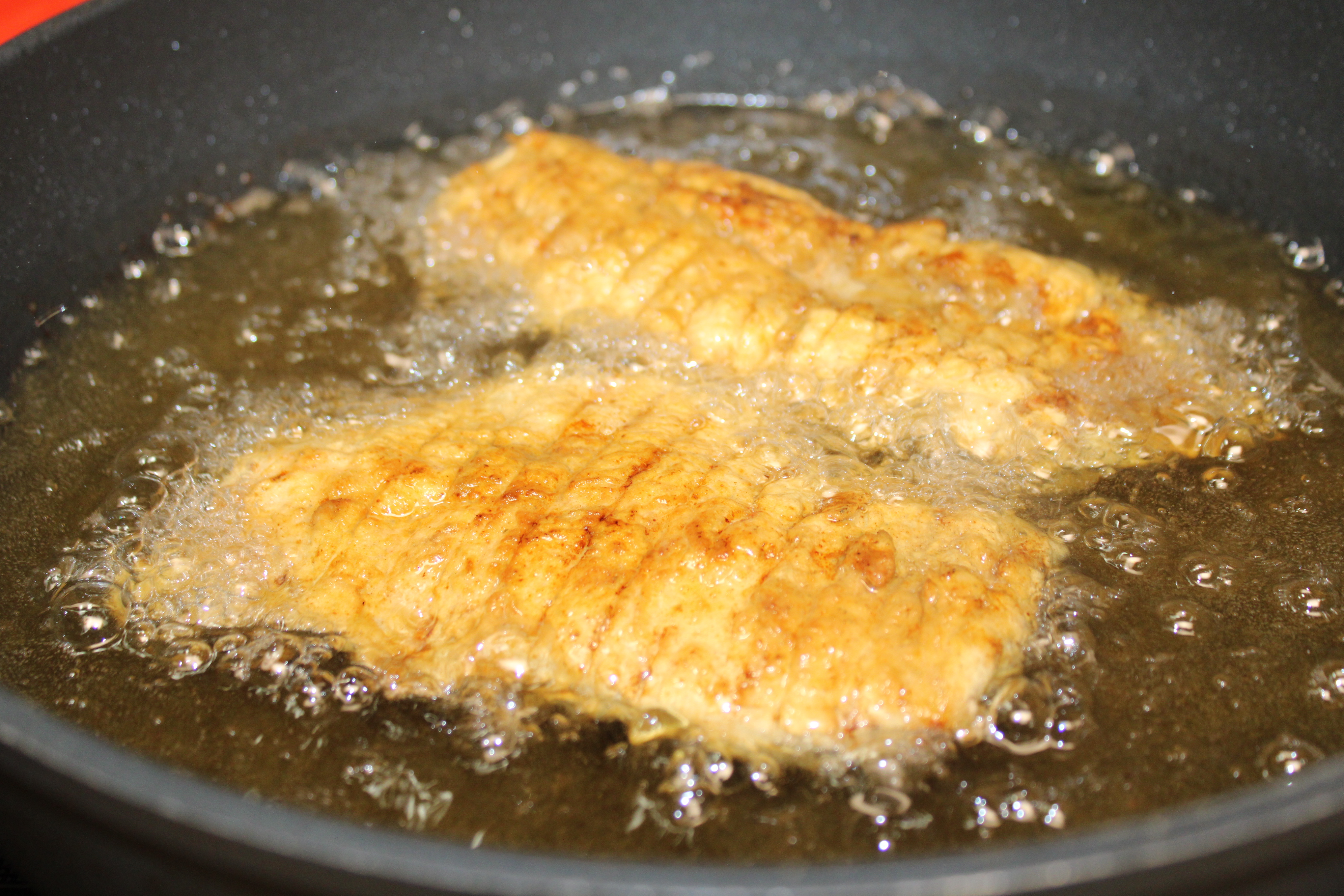 Heat oil or shortening to 325-degrees in deep skillet over medium-high heat for about 6 or 7 minutes. Adjust the heat as necessary to maintain temperature as the chicken fries.