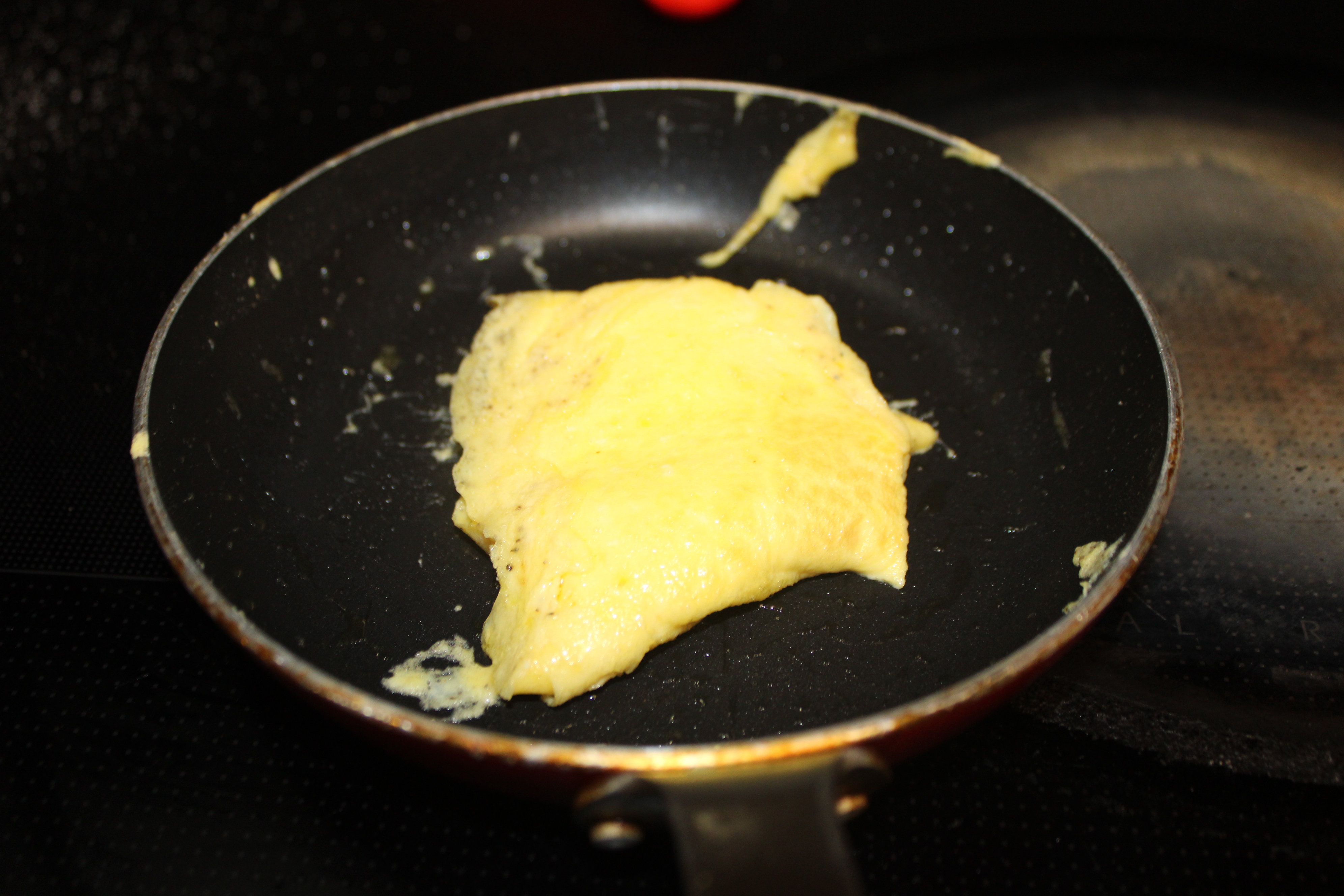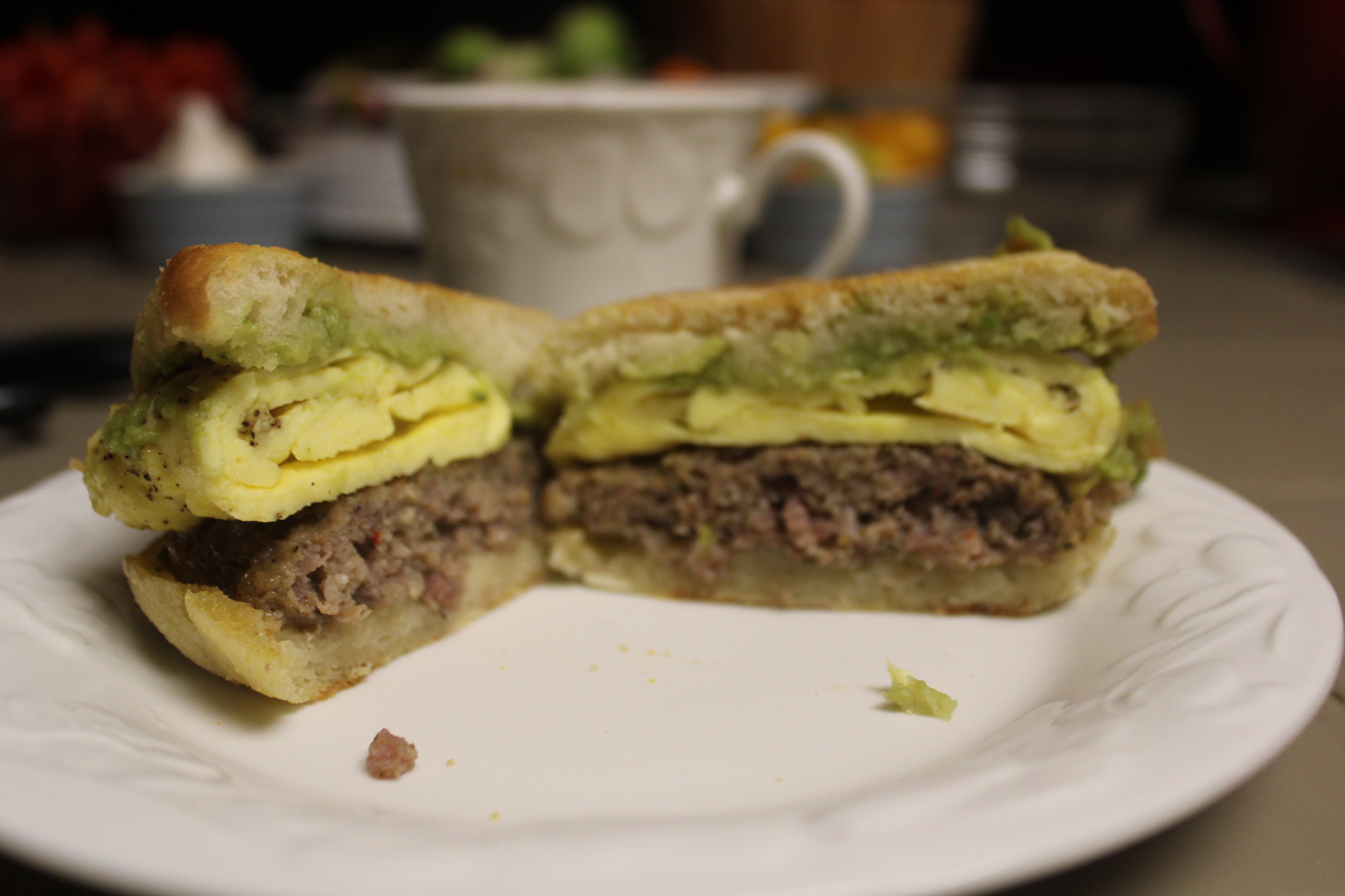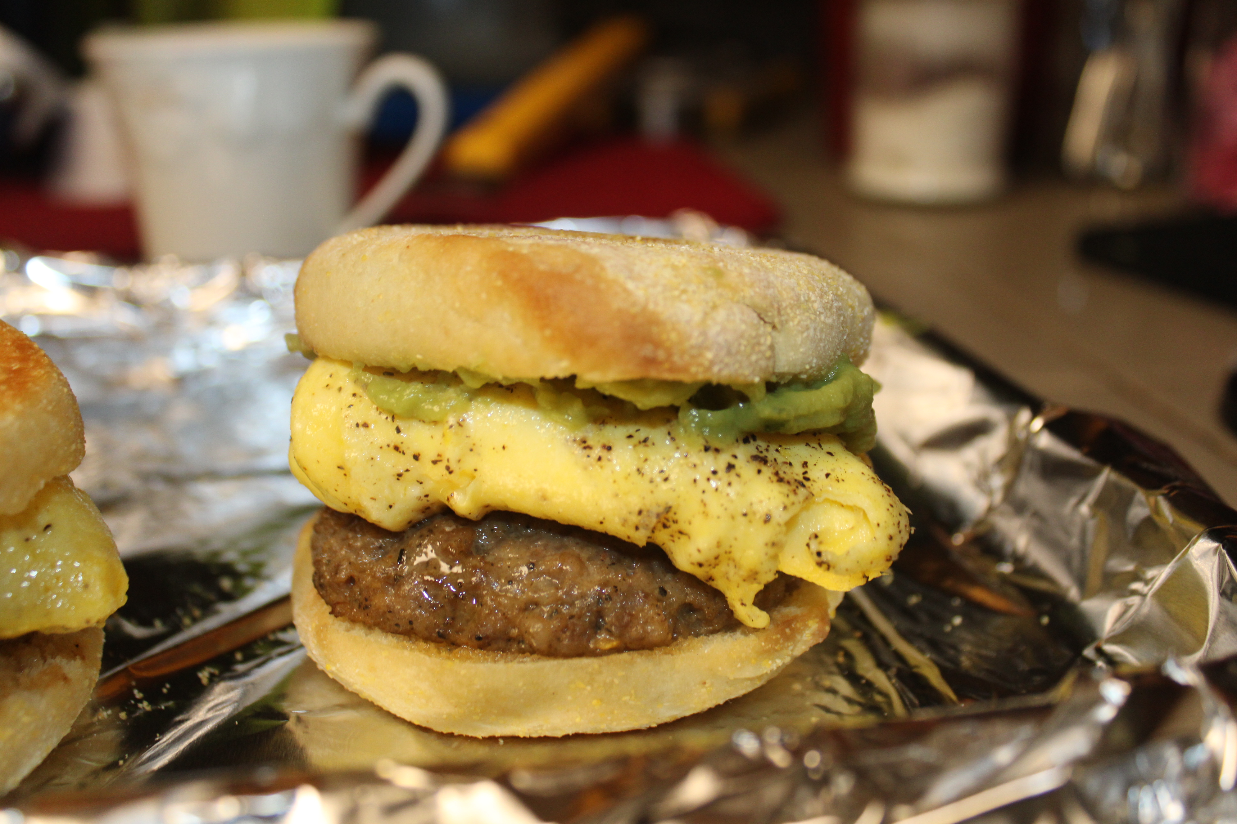 That’s when the lights came on. Instead of a thin ordinary sausage patty, why not use one with some heat? And instead of the typical round over-baked egg, why not try something a little different? Yeah, now we’re cooking with gas!