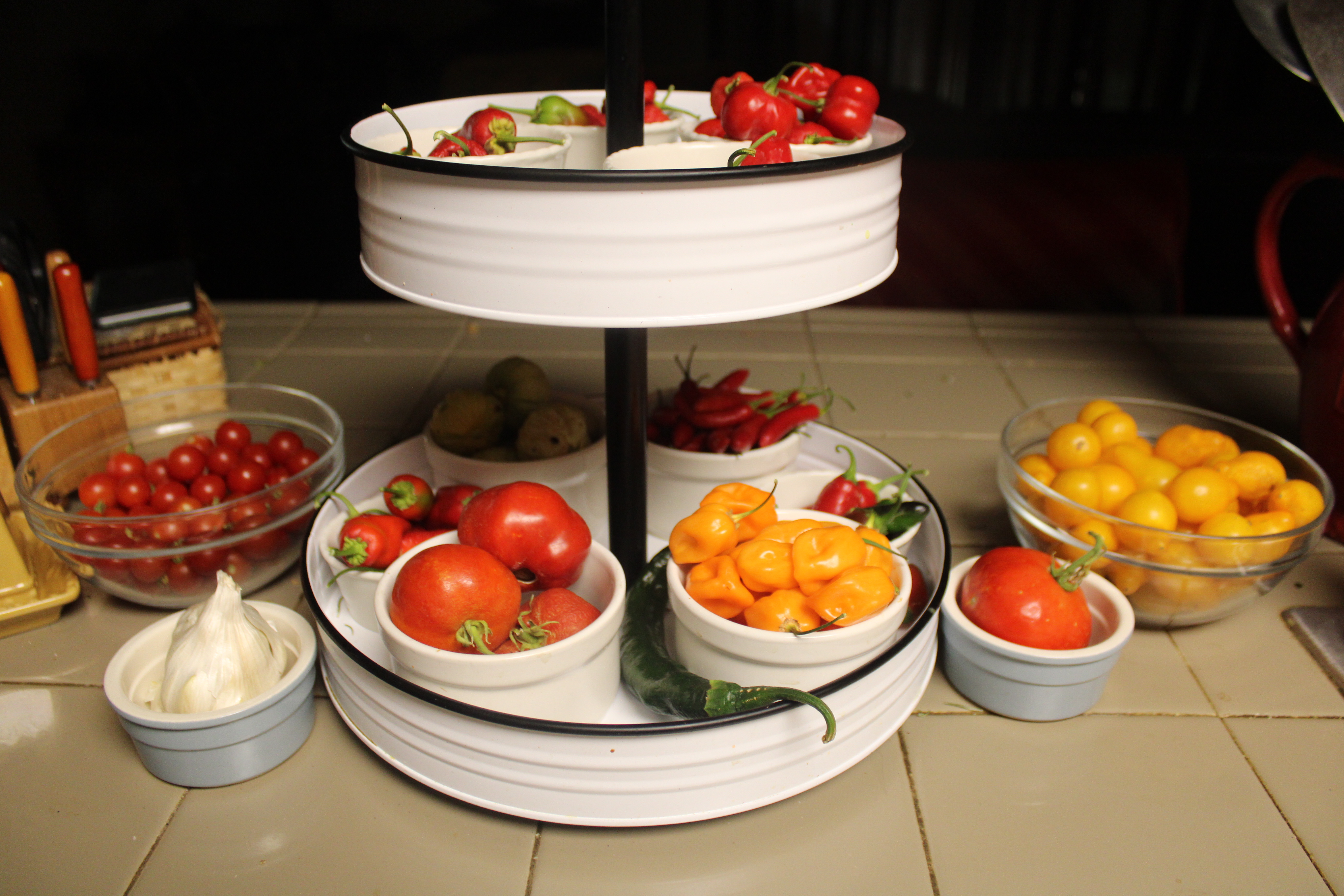 Now on to the kitchen! When we got back from our week along the Oregon Coast the first thing we did was to check on the garden. Our Salsa Garden has a soaker hose set to a timer, so we knew as far as the watering was concerned, it would be fine. There were a ton of tomatoes and peppers to harvest.