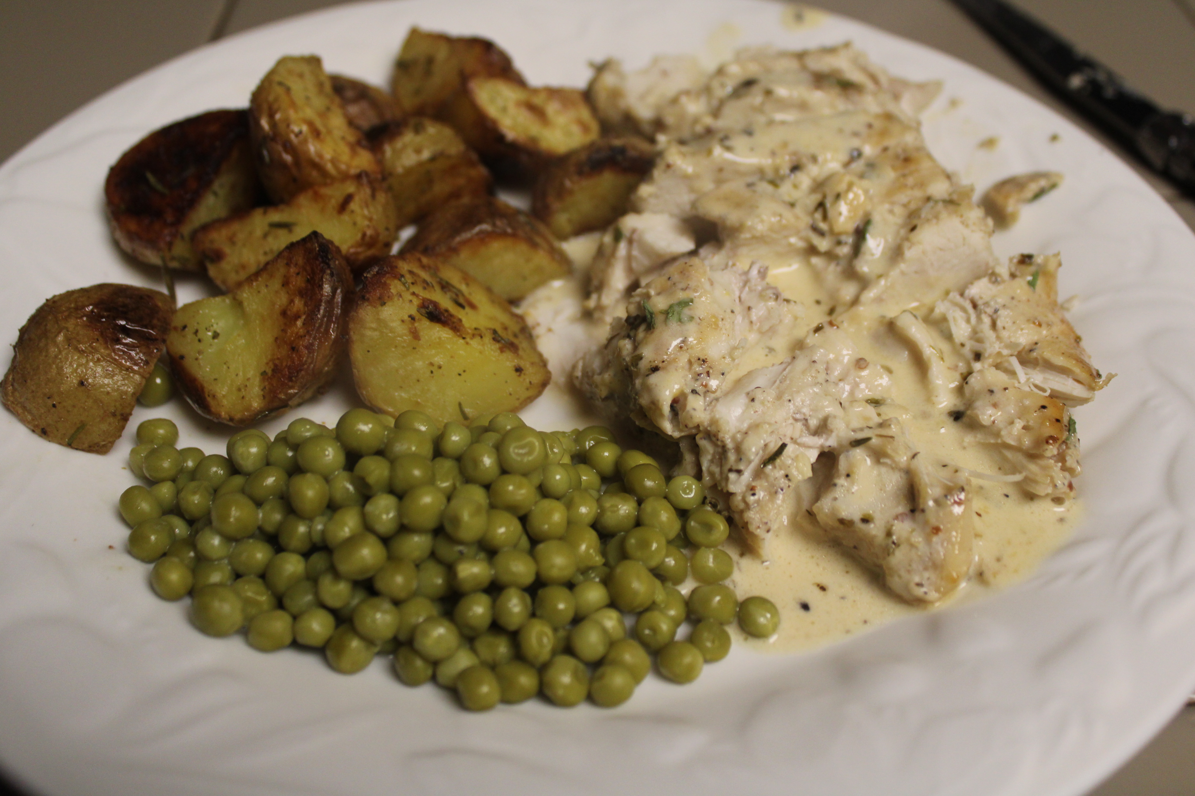 Creamy Garlic Chicken with Roasted Baby Potatoes