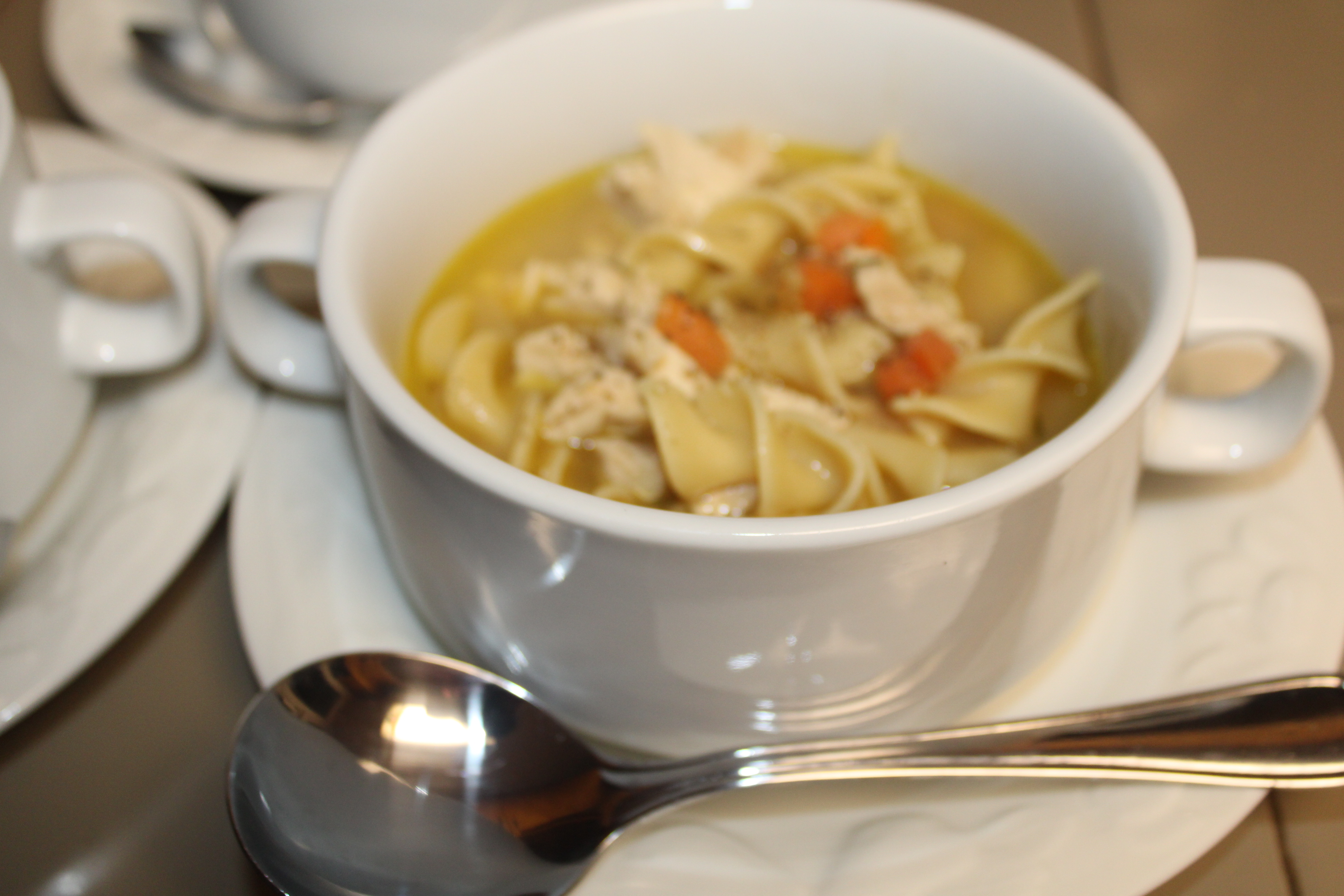 Now where were we again? Oh yeah, National Noodle Day! Before we get to making this delicious soup, I want to apologize for the photos. Or rather the lack thereof. In the midst of preparing dinner, the phone rang. It was my doctor’s office with the results of my recent tests and changes we need to make to my routine. Nothing life-threatening, but I couldn’t very well ask that they call back. So I continued to make dinner, just with the phone in hand rather than my camera. Sorry about that.