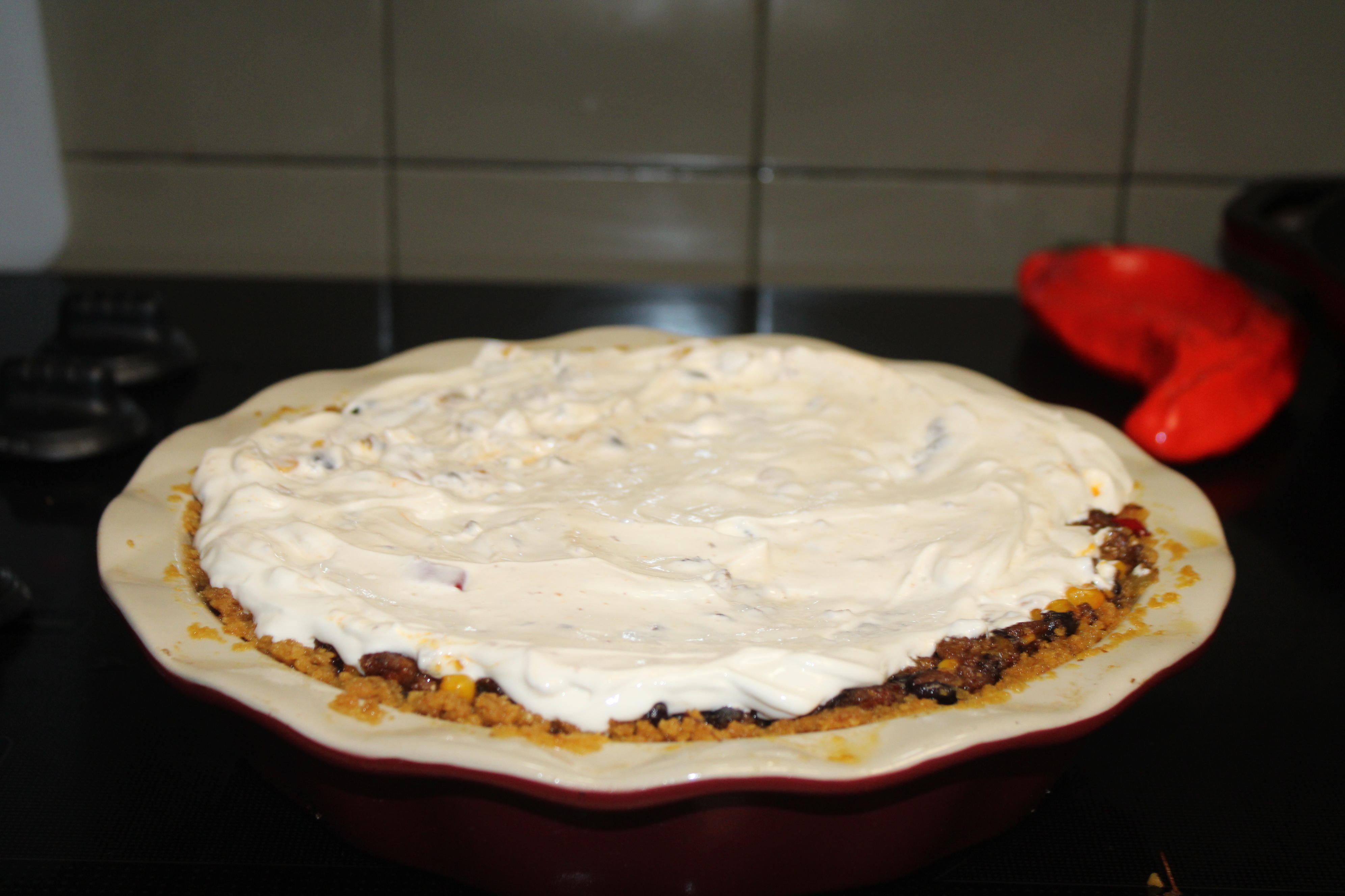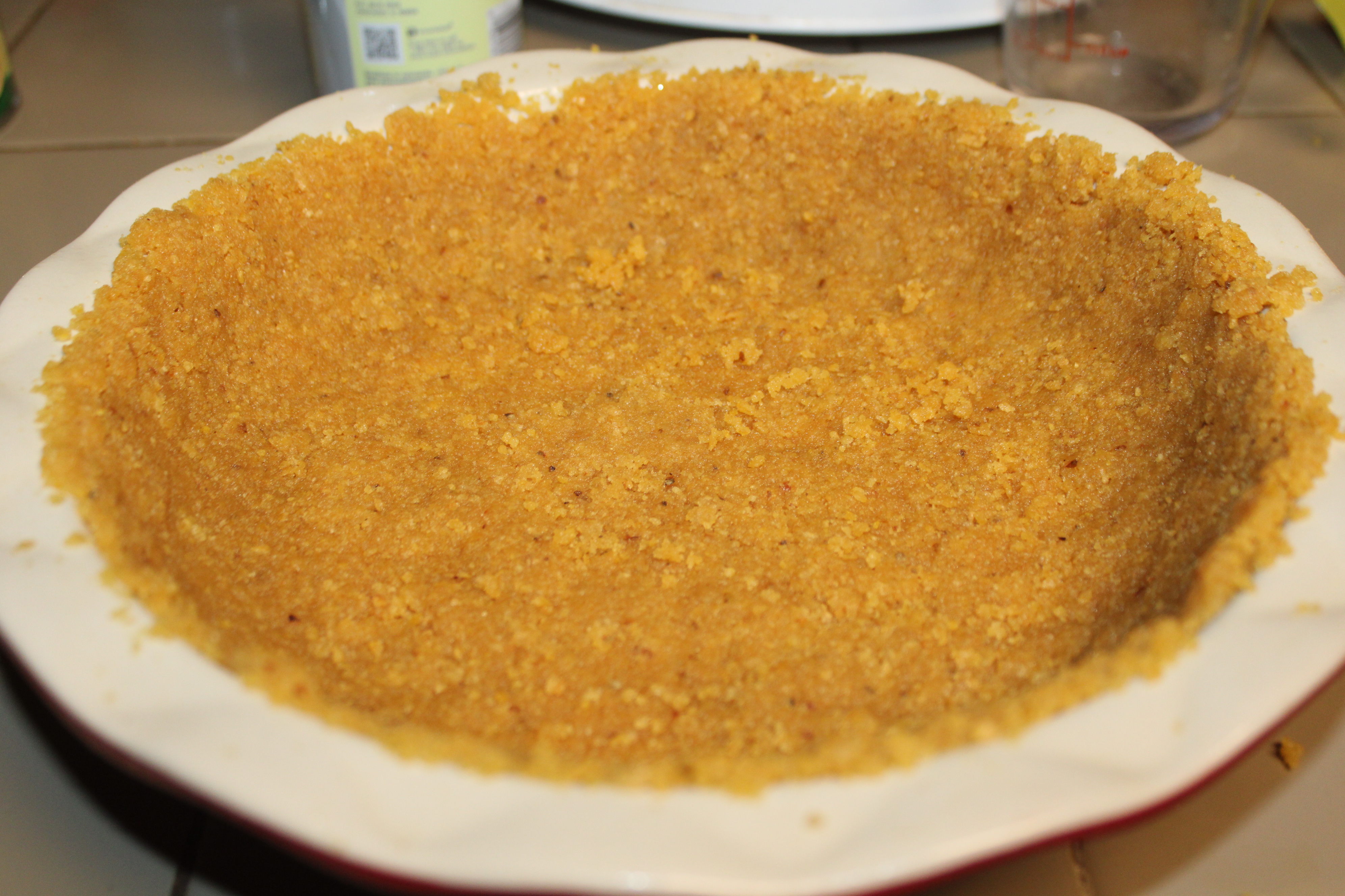 What if instead of a pie dough crust, you made it with pulverized taco shells? That got me to thinking – what about Frito Chips? So I did a little research. I knew we couldn’t just grind up some corn chips – they needed to come together with some sort of a binding ingredient. I also knew simply adding melted butter the way we often do a Graham Cracker crust wouldn’t quite work. That’s when I came across a similar recipe that used egg whites. Hum, let’s go with that.