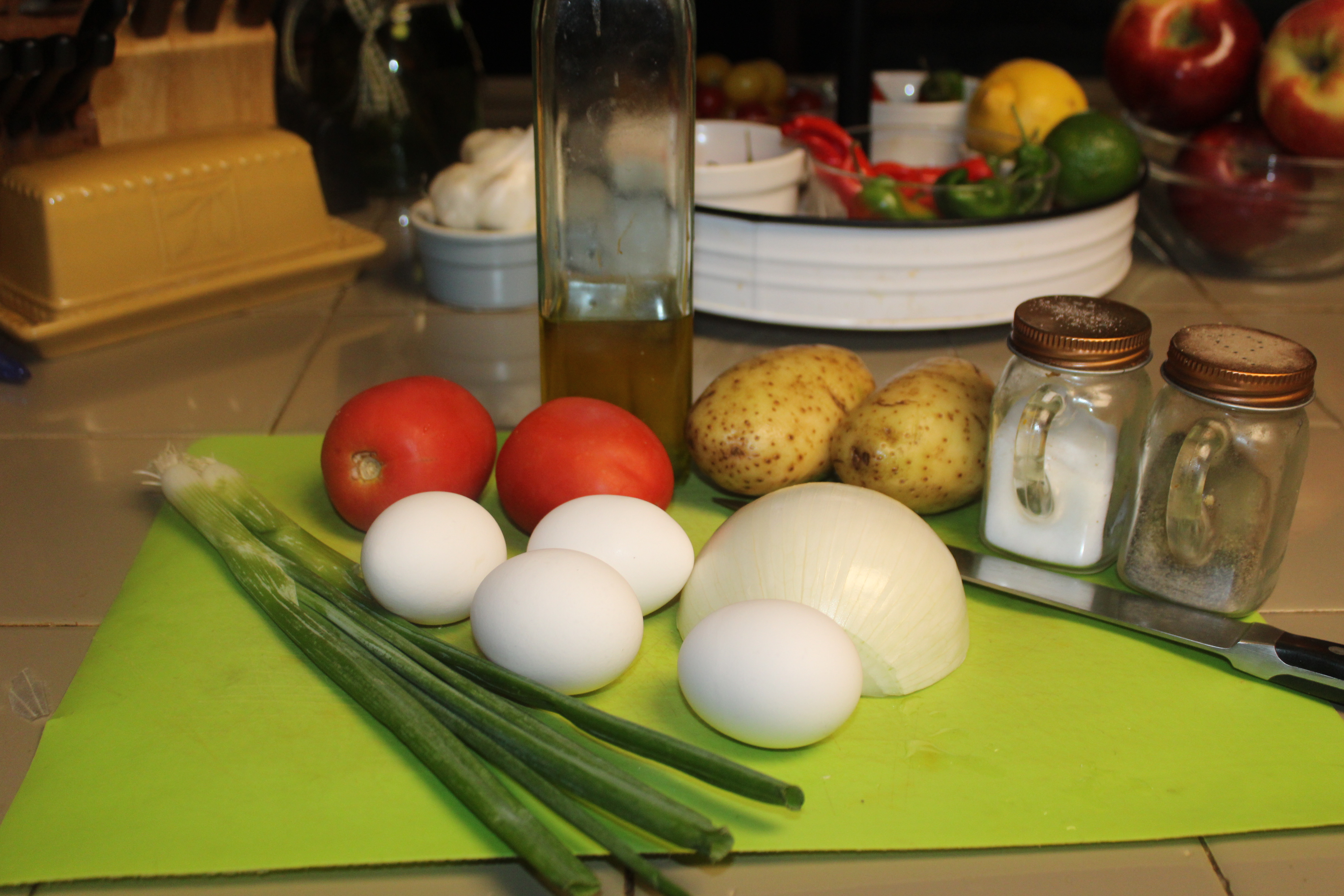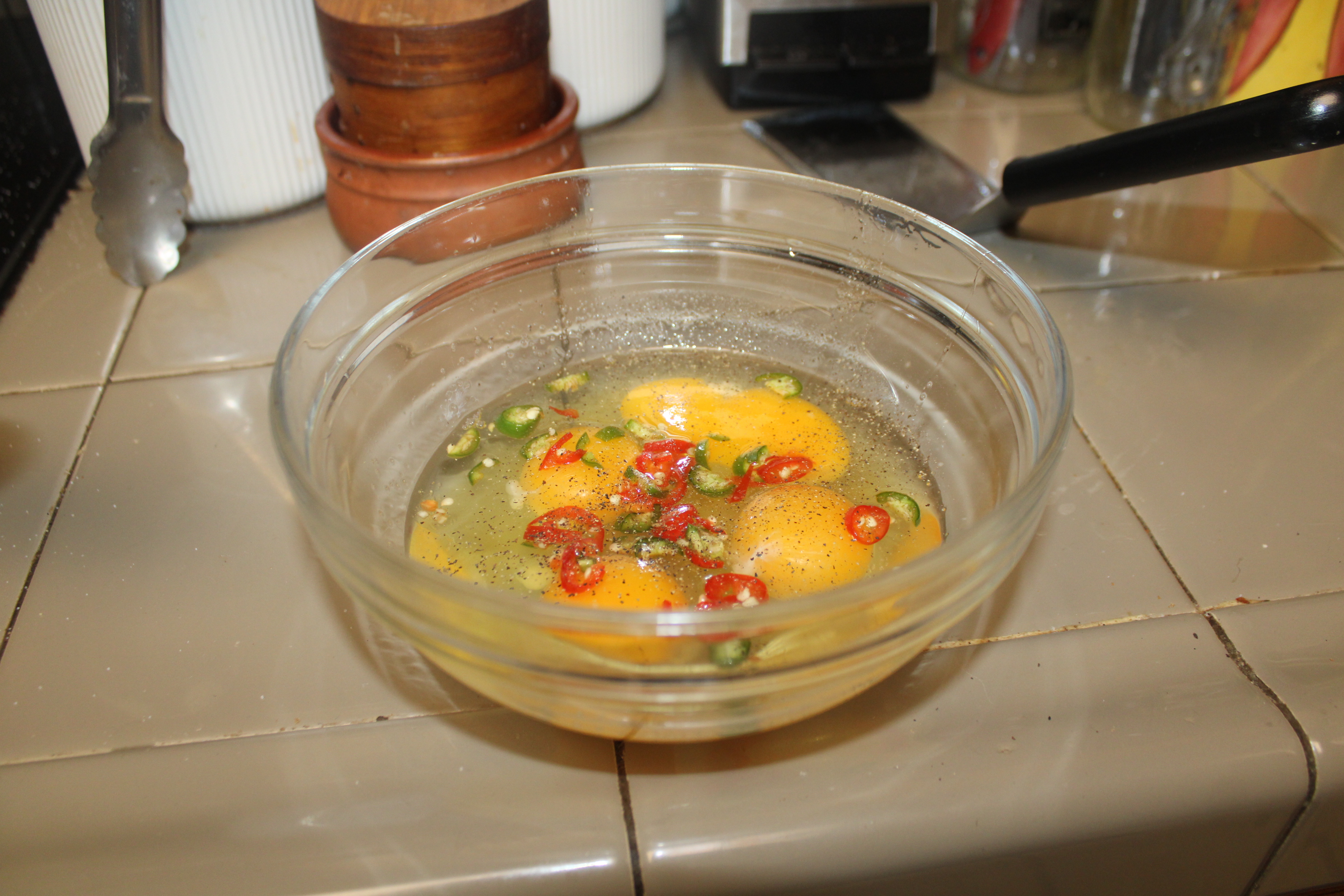 Kiddo was lucky – he grew up with Omelettes as a Sunday Morning staple after Mass. He loves Omelettes. The more complicated, the better. While this particular recipe claims to be an Omelette, it’s not the traditional fold-over kind. I’d call it the lazy man’s omelette, except it requires a great deal more prep work than say your traditional Ham and Mushroom variety of Omelettes. I do like the fact that one “Omelette” can feed four. Typically when I make Omelettes for my family, it’s one at a time, and we don’t eat together. As far as the name of today’s recipe is concerned I have no idea if it’s the way Omelettes are served in Spain. However; since Spain is predominately a Catholic Country, typically families are large so it would be a safe bet something family style after Mass might be in order. The original recipe did not call for peppers of any kind. Since my guys expect a little heat most mornings and the pepper plants in the garden are continuing to produce, what the heck. Serranos seemed in order.
