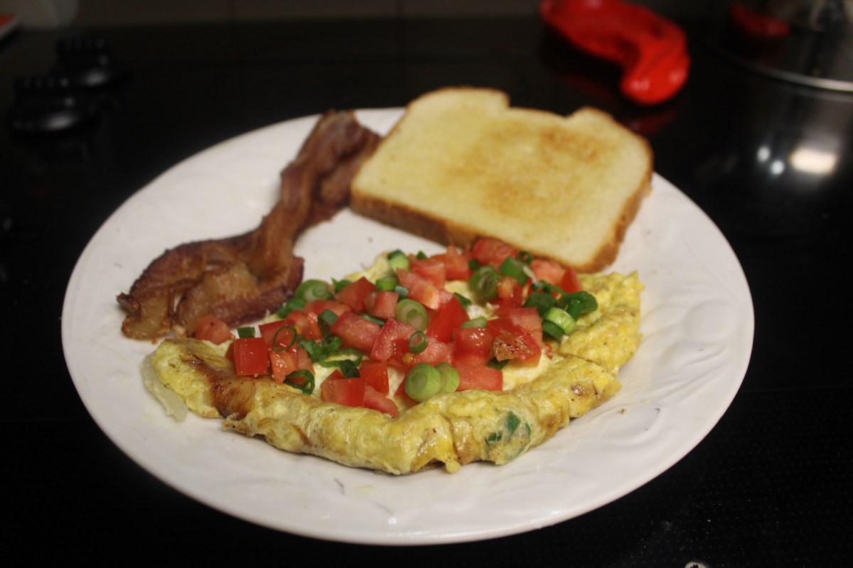 Eventually I bought an omelette skillet from the William Sonoma Store on the strip in Las Vegas and taught myself how to make Omelettes. They aren’t difficult, but you do need patients. The eggs cannot be runny or over-cooked.