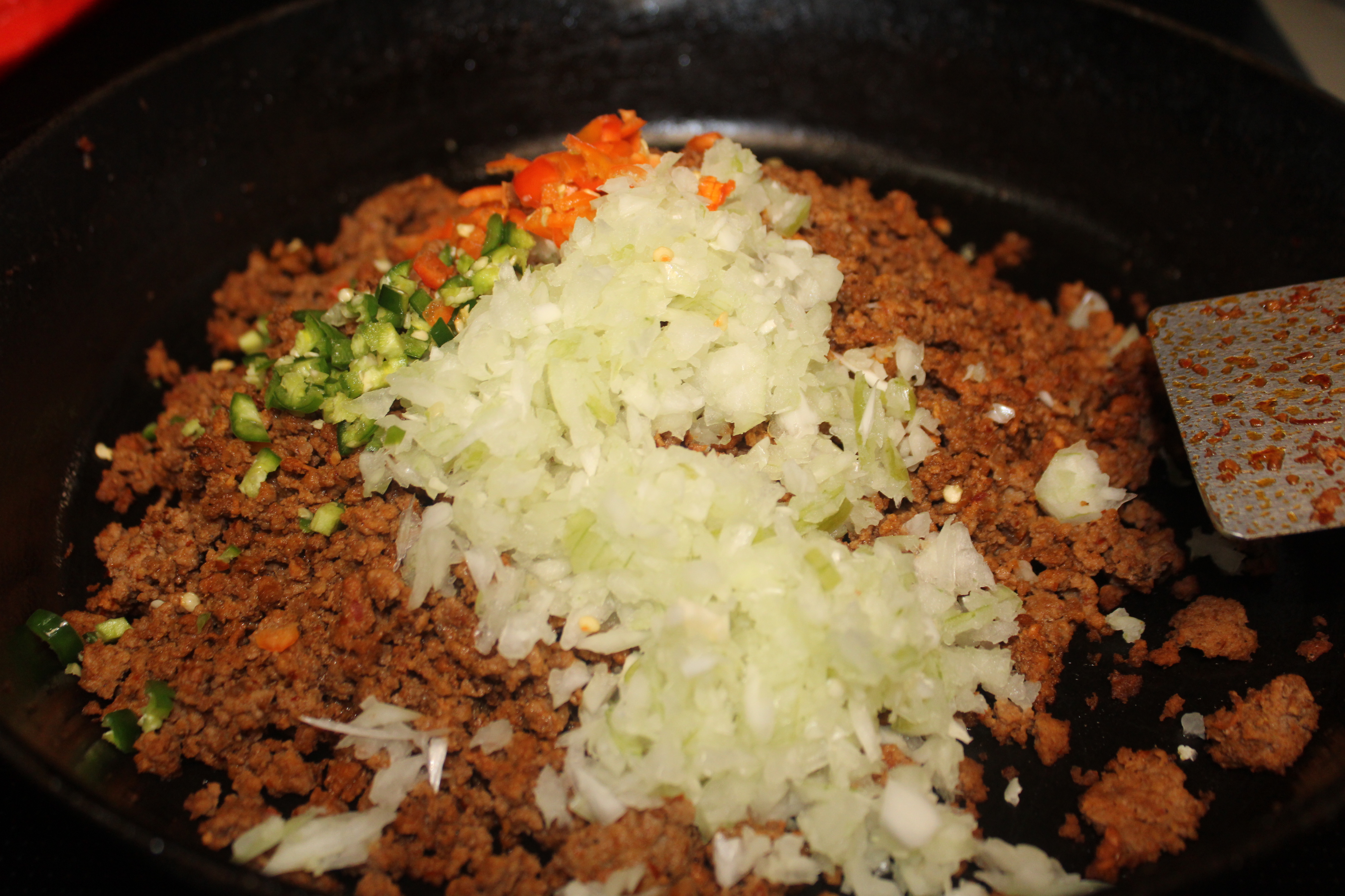 Remove skillet from heat. Stir in about half a cup of the cheese, allow to melt into the meat by the residual heat in the skillet. This will bind the filling together.