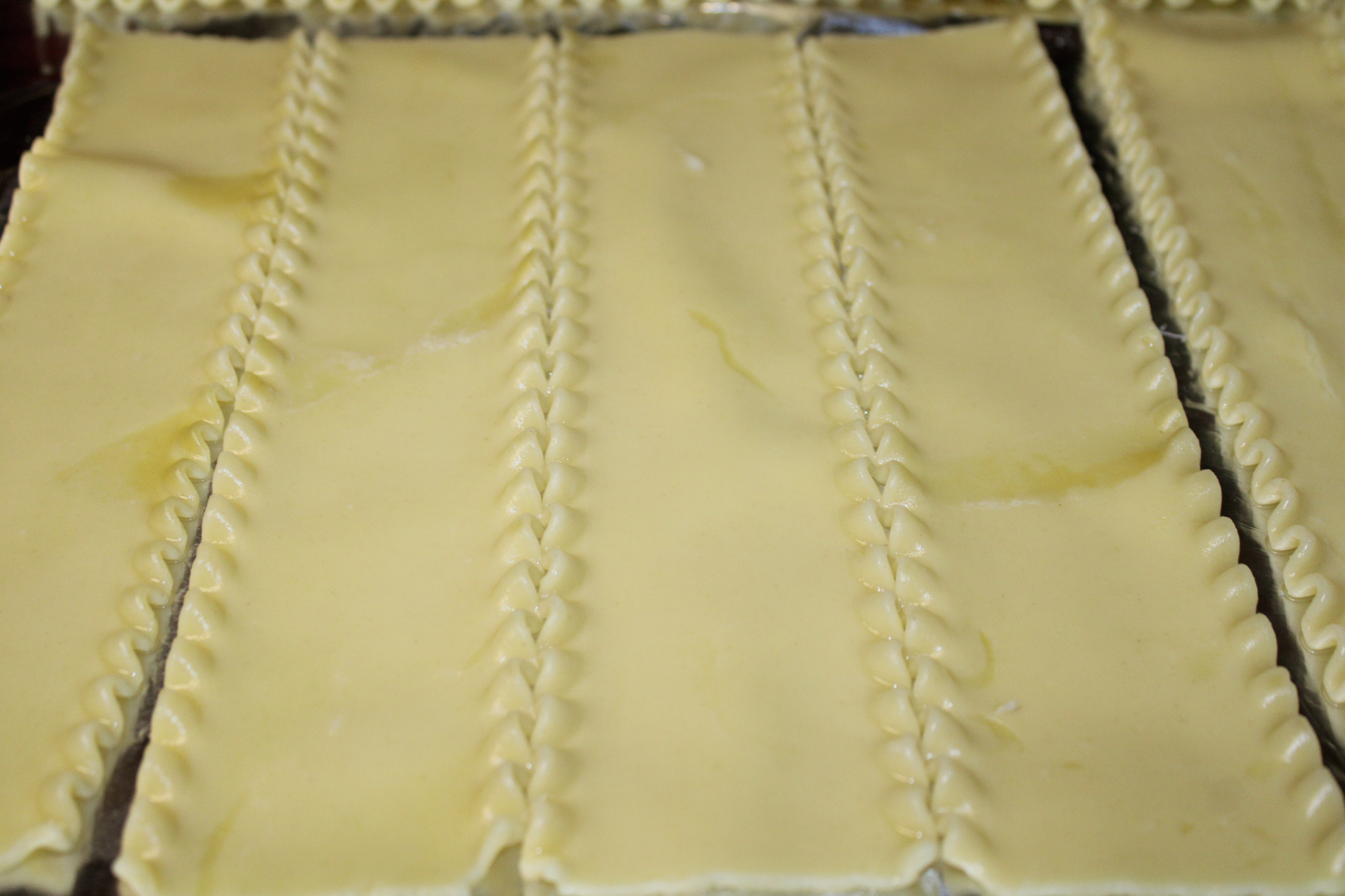 Bring a pot of salted water to a boil. Cook Lasagna Noodles al-dente according to package directions. Drain, lay out flat to cool. If necessary, trim noodles to fit snuggly in the loaf pan.