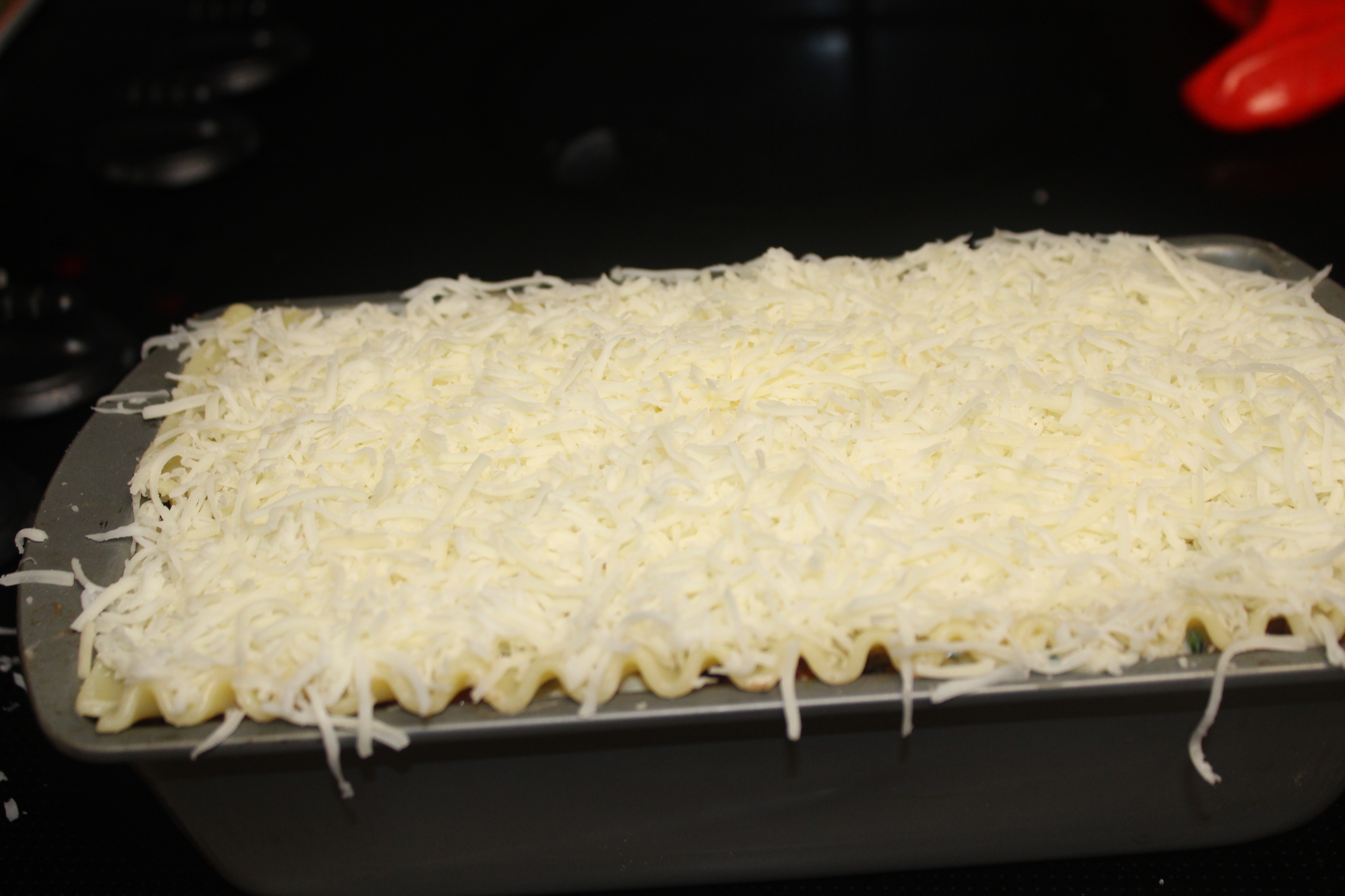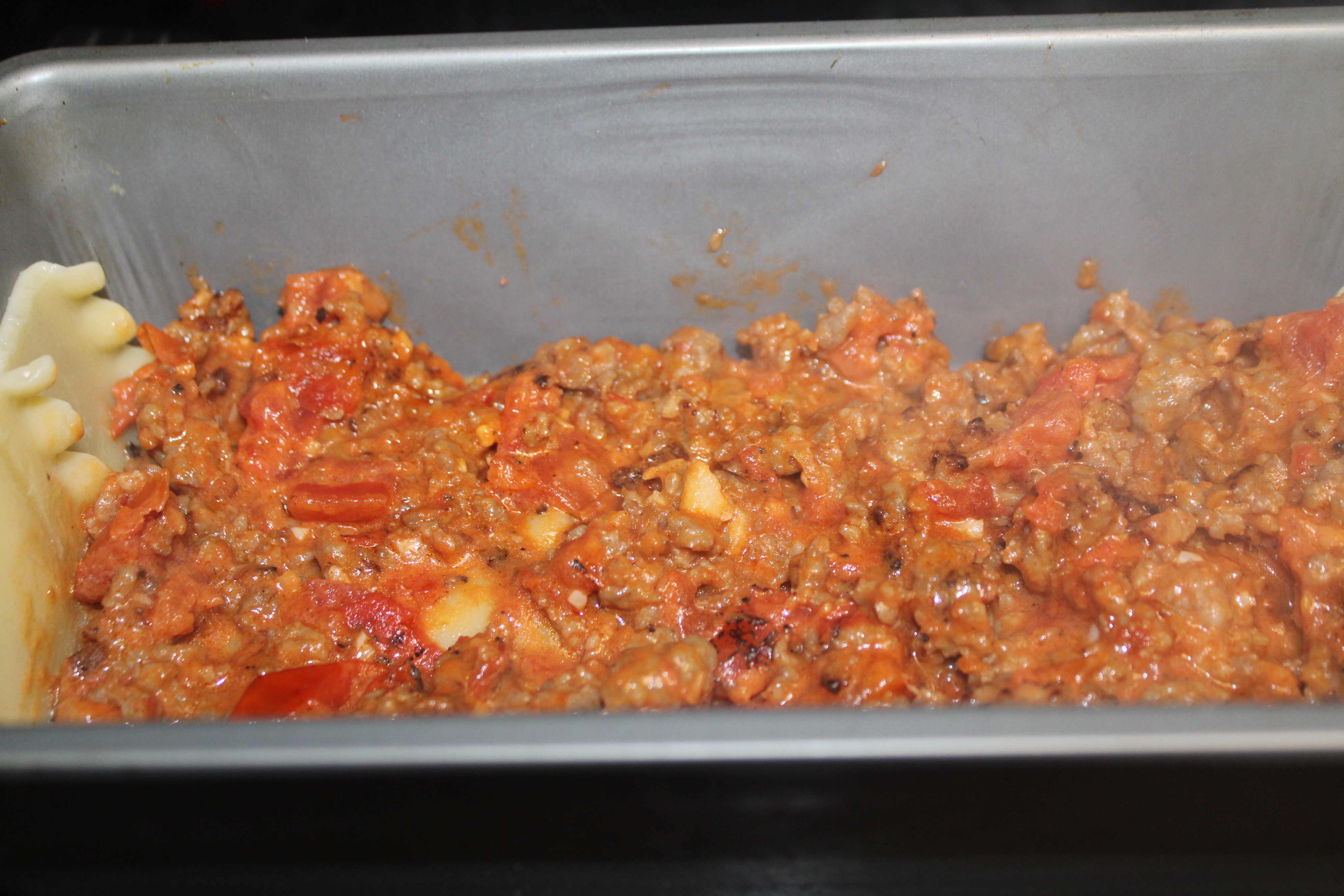 To assemble the lasagna, lay 2 Lasagnas noodle in the bottom of a loaf pan. Spread 1/3 of the meat sauce over noodle, followed by cheese mixture, then another noodle layer. Repeat this layering, ending with a final layer on noodle. Top final layer with Italian Cheese Blend.