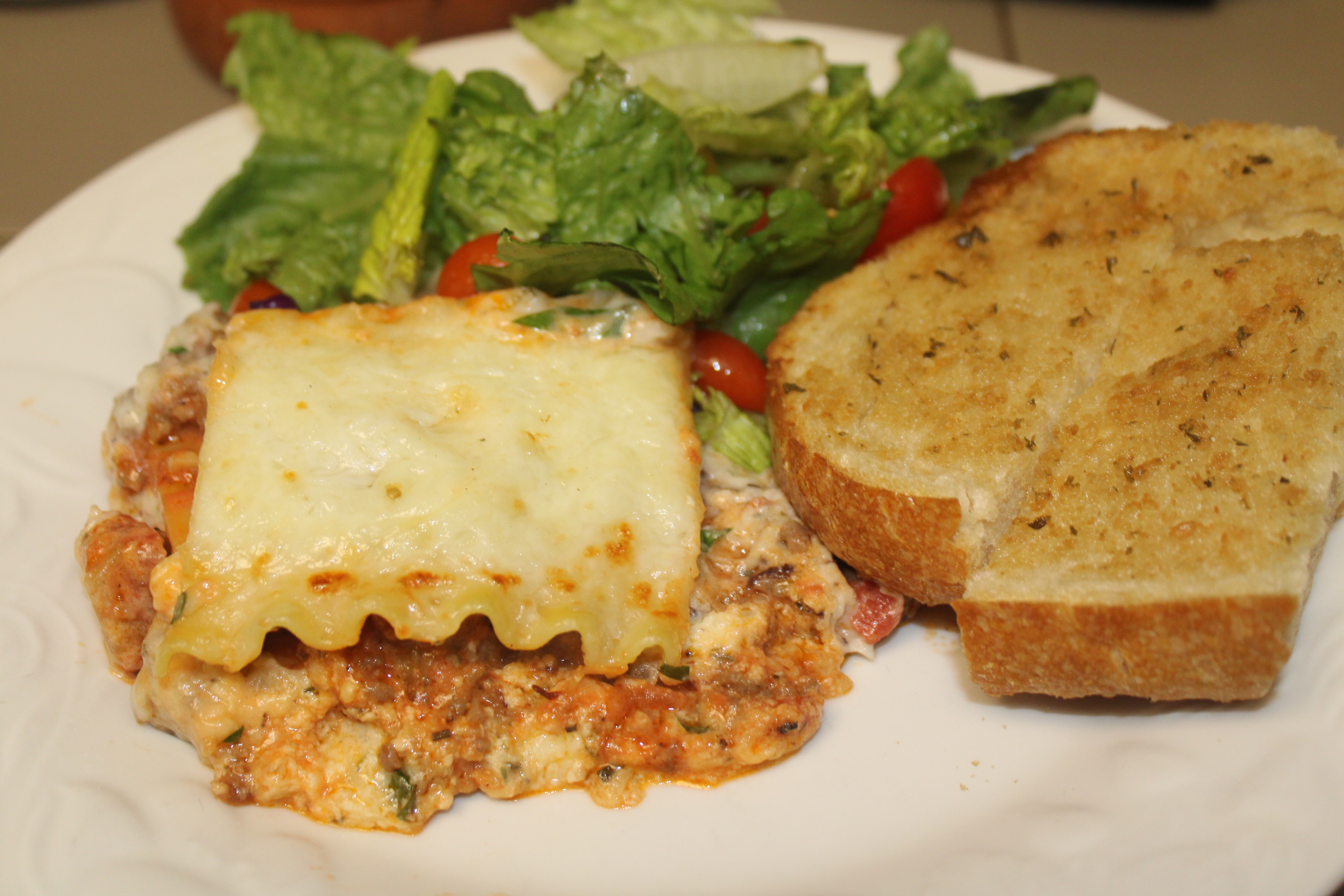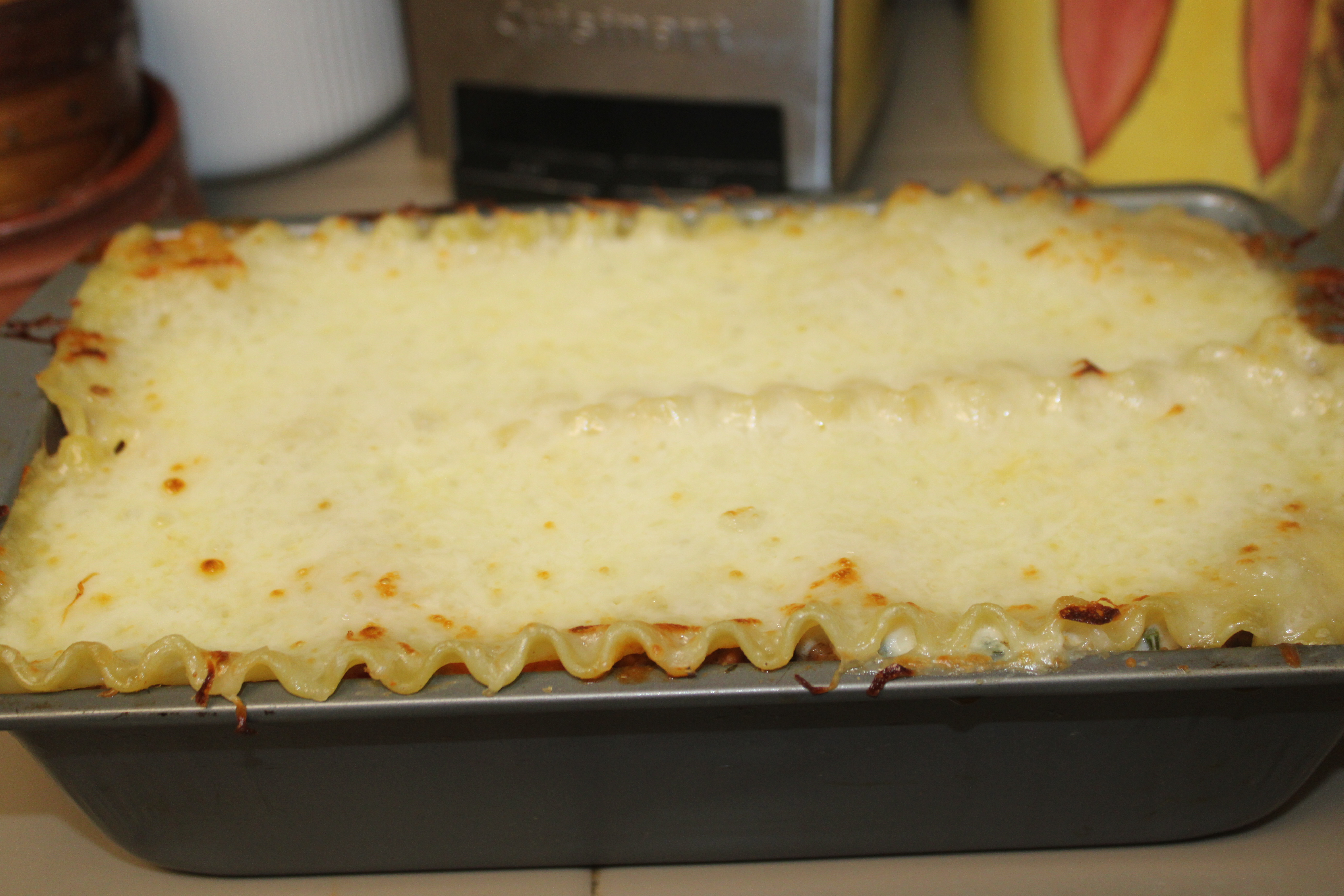 Perhaps it’s because Rome is also home to the Vatican that whenever I think of celebrating my Faith with food, I naturally gravitate to Italian Food. One of my favorite dishes is Lasagna. For the longest time when I made Lasagna, Hubby would stand at the front door and shout to the entire neighborhood that it was time to eat. My Lasagna weighed several pounds. We could eat it for days, freeze what was left, and then eat some more later. It took a while to come up with a recipe that was baked in a loaf pan with just six servings. This is delicious, and we are no longer feeding a small country.