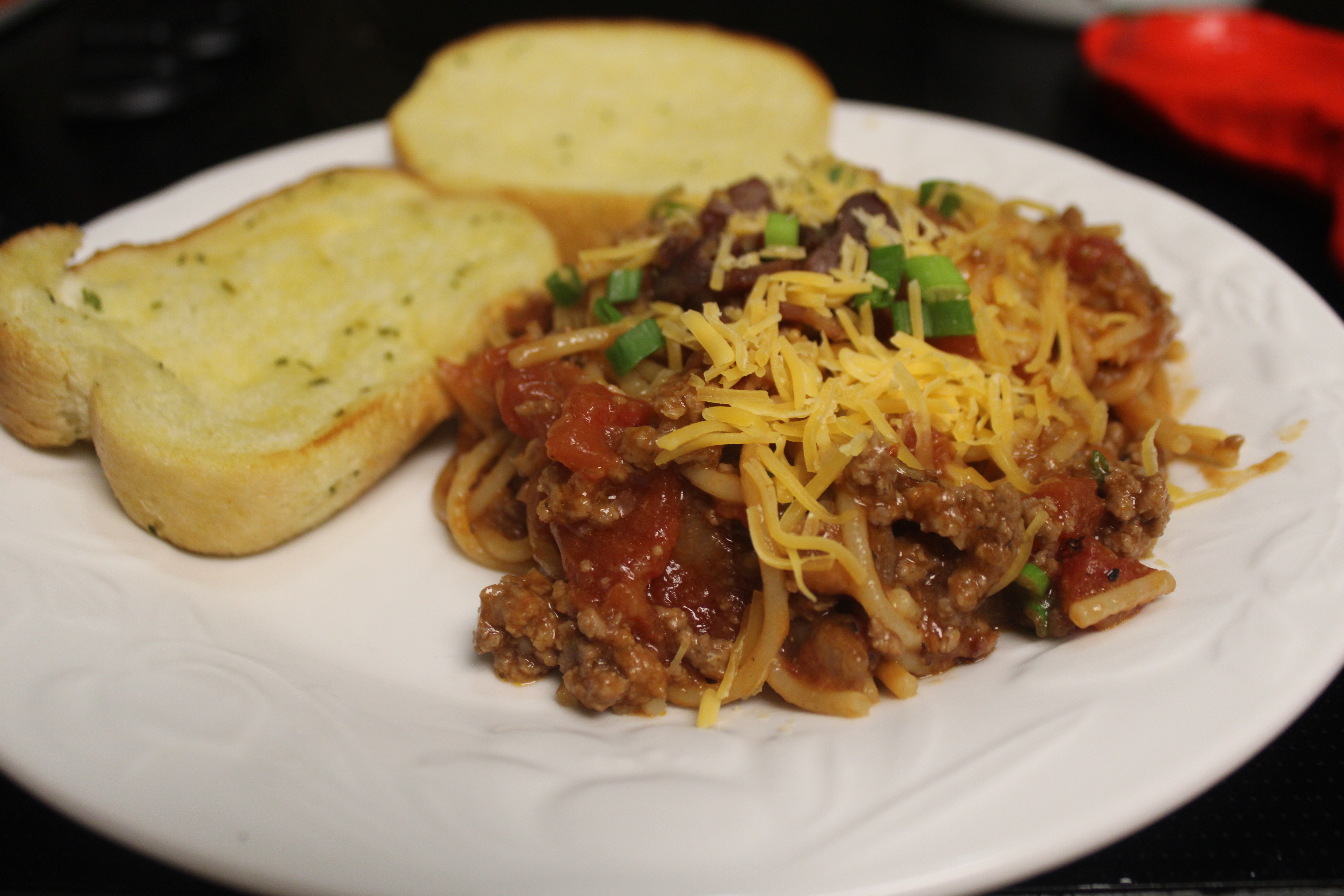 When Kiddo and Hubby came home after a long and chilly day of work, they both asked what was for dinner. I just smiled and said “A different take on spaghetti.” They both knew that was code-speak for “I’m trying a new Spaghetti recipe that isn’t Italian, so buckle up.”