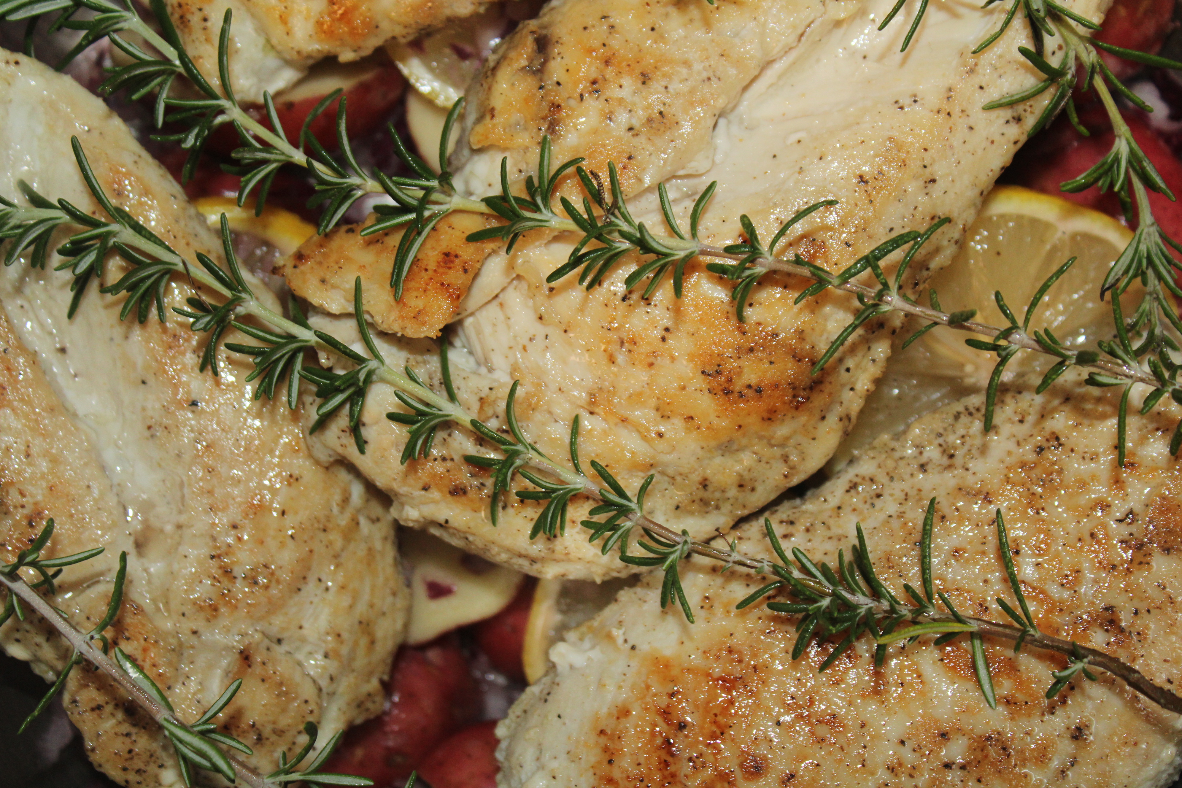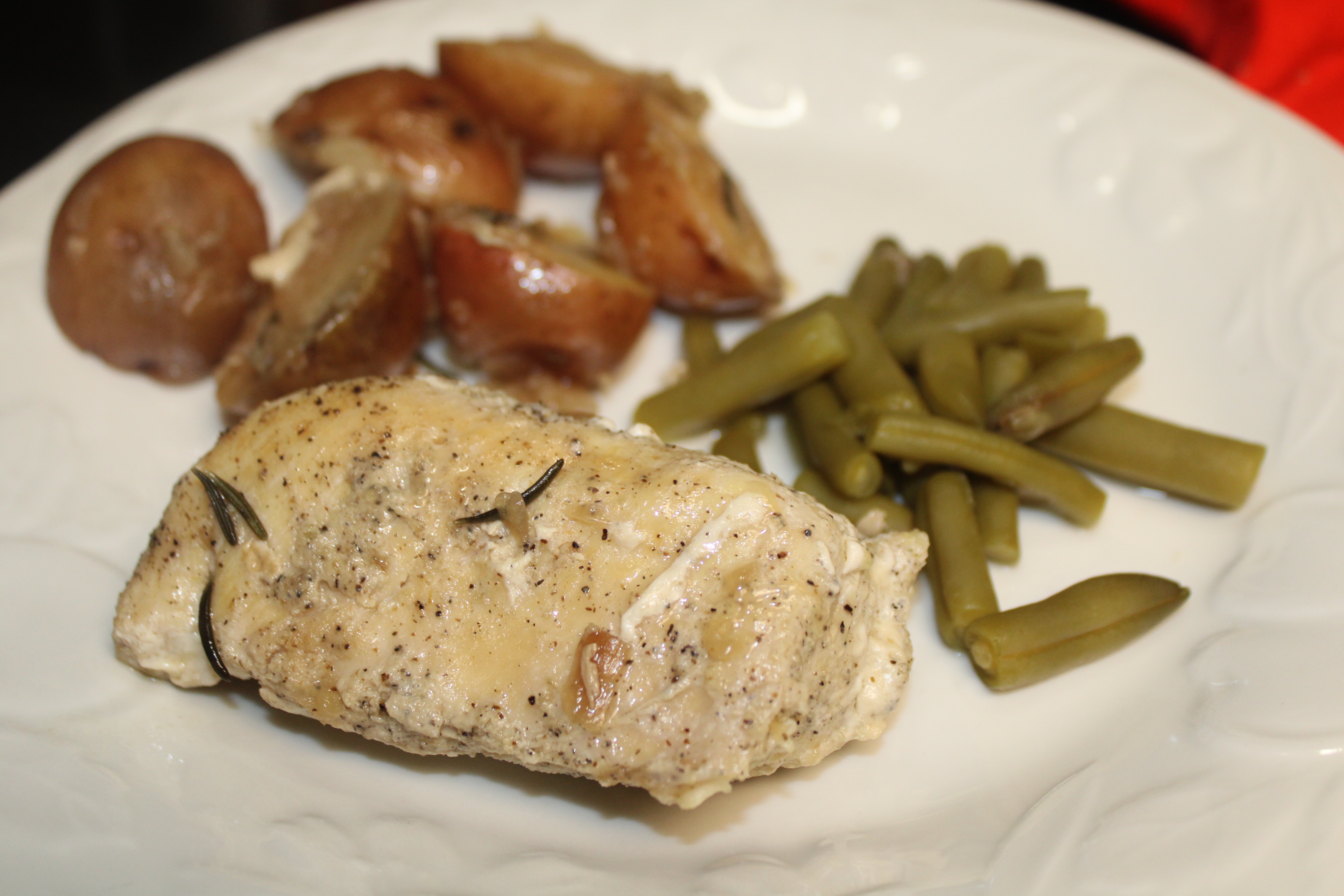 Arrange chicken in a single layer over the oniony mixture; then top with rosemary sprigs. Cover and cook on LOW for about 4 hours, until chicken is cooked through and potatoes are fork tender.