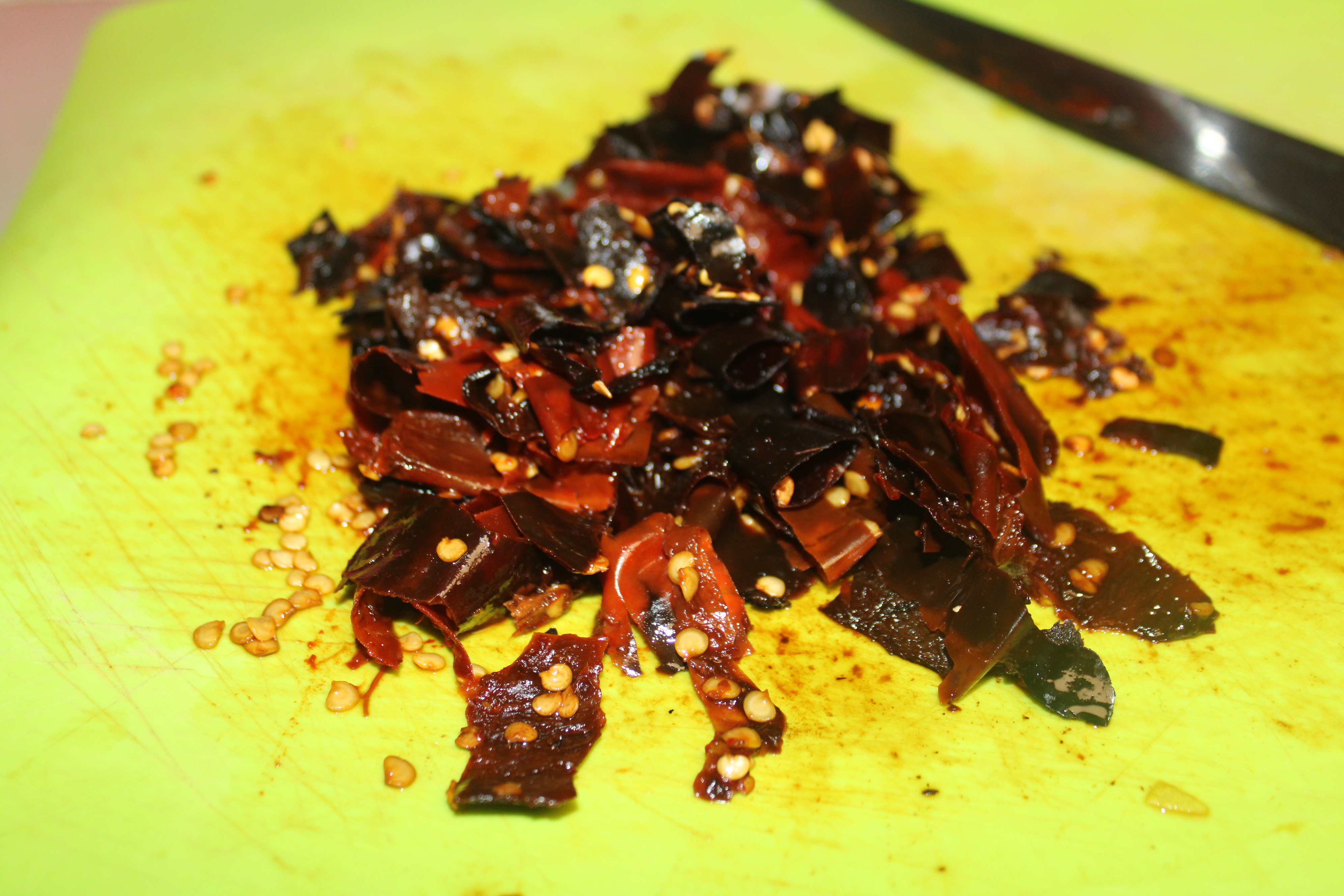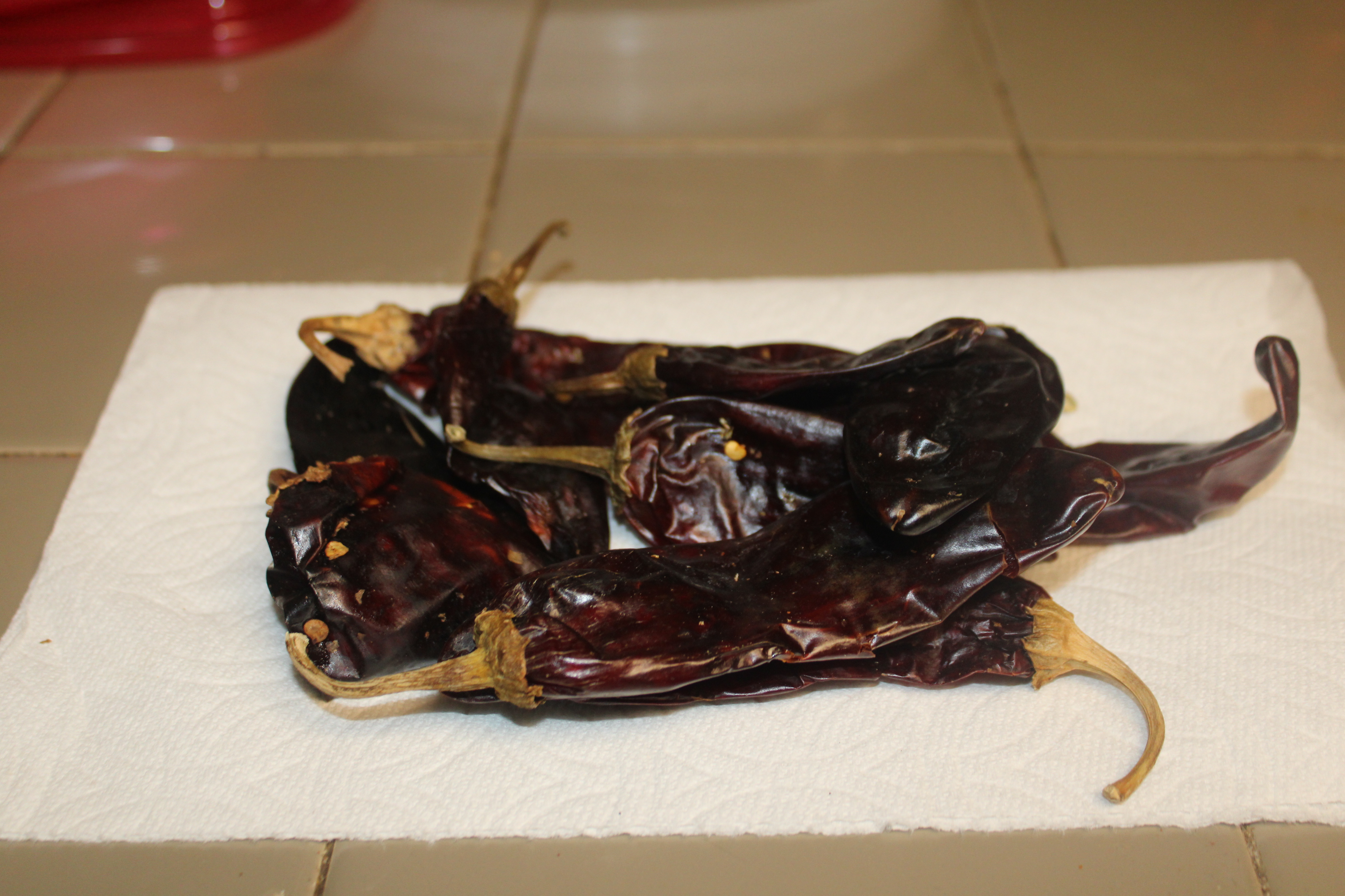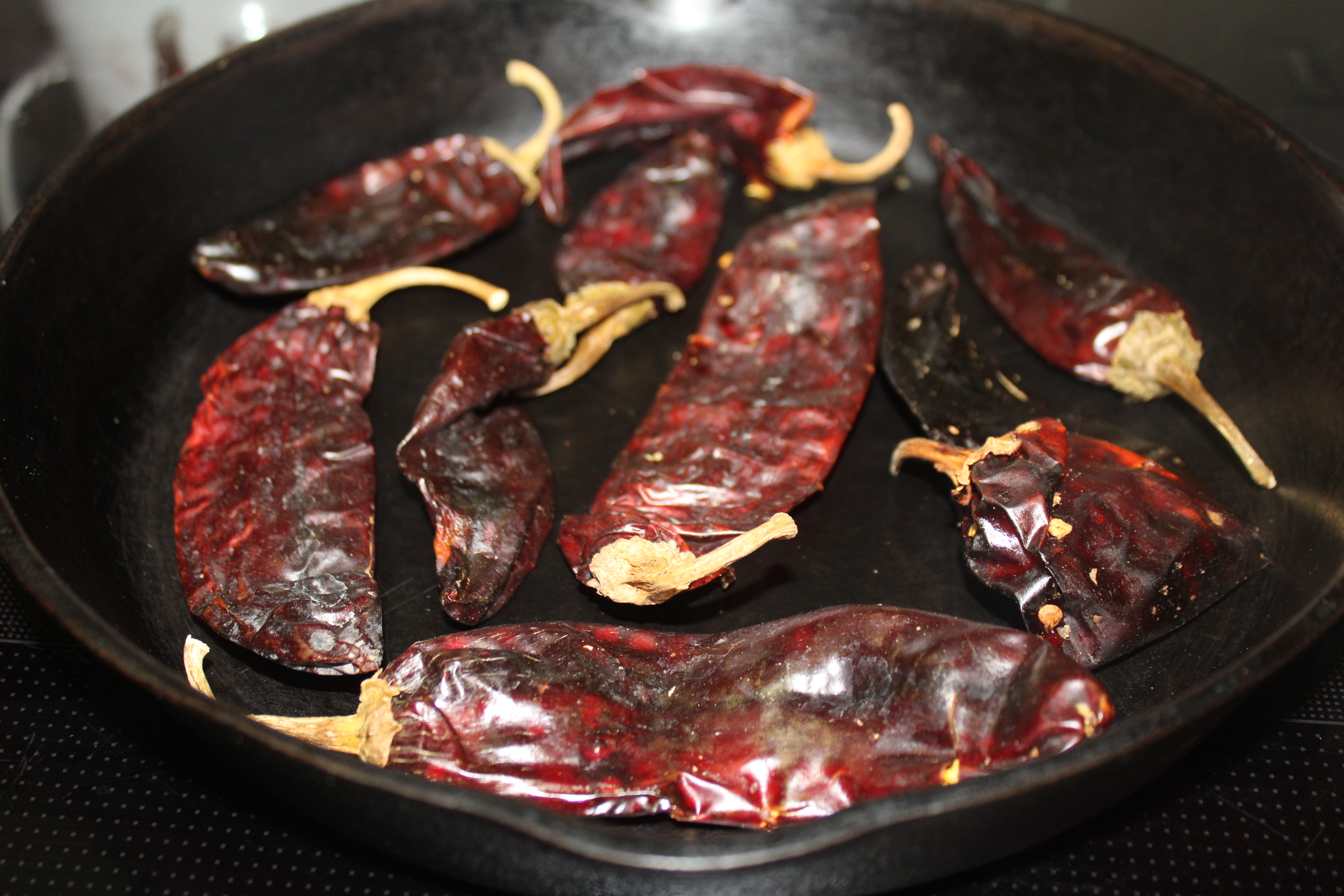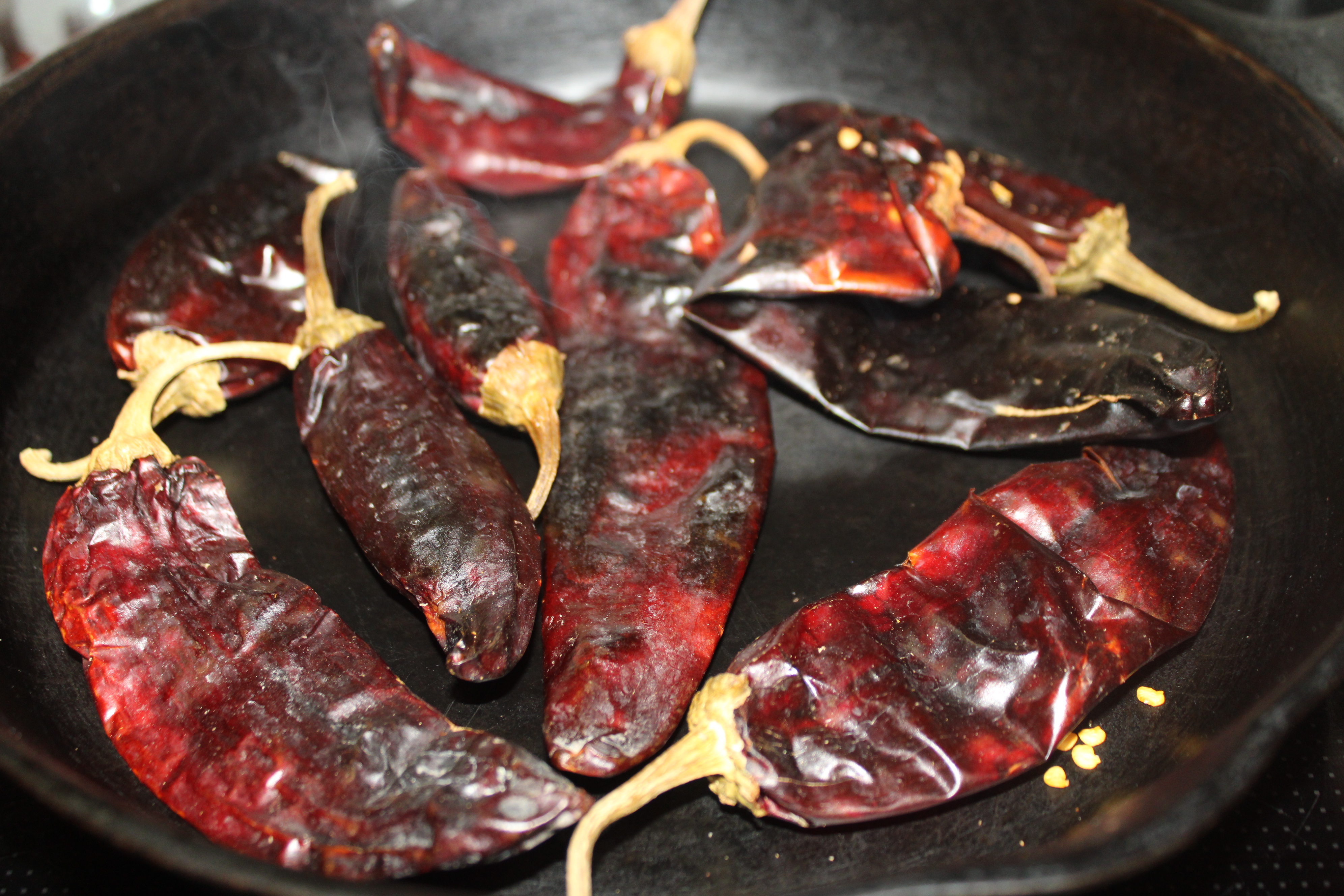 *Chiles de Arbol or Arbol Chile (ARE-bowl) are narrow, curved Chiles that start out green and mature to a 3-inch to 5-inch bright red pod. The Arbol Chile is very hot, and related to cayenne pepper. These Chiles register around 50,000-65,000 on the Scoville heat unit scale (or about 7-8 on a 1-10 scale). These Chile peppers are found Mexican Food Stores and in most Hispanic food sections of grocery stores. If you can’t find Arbol or Guajillo Chile peppers, substitute dried cayenne Chile peppers.
